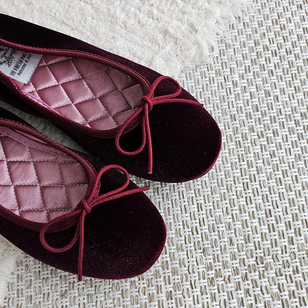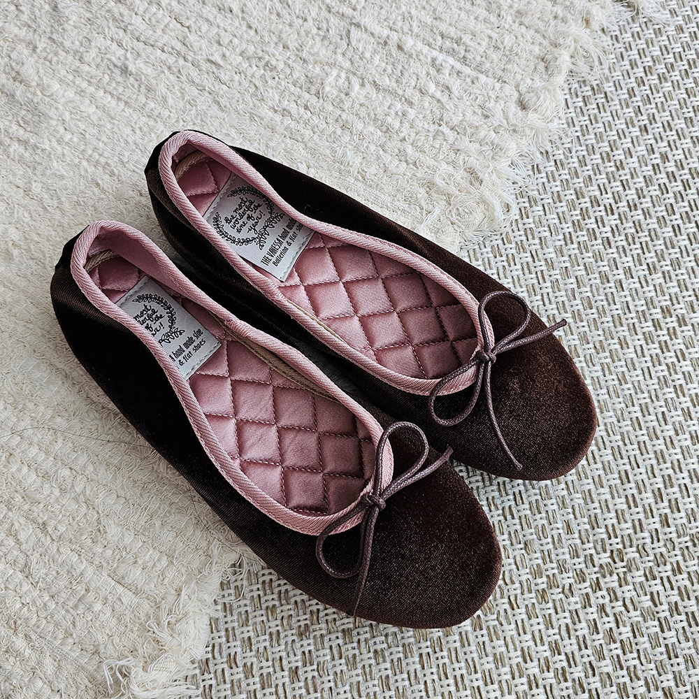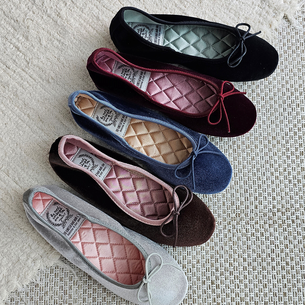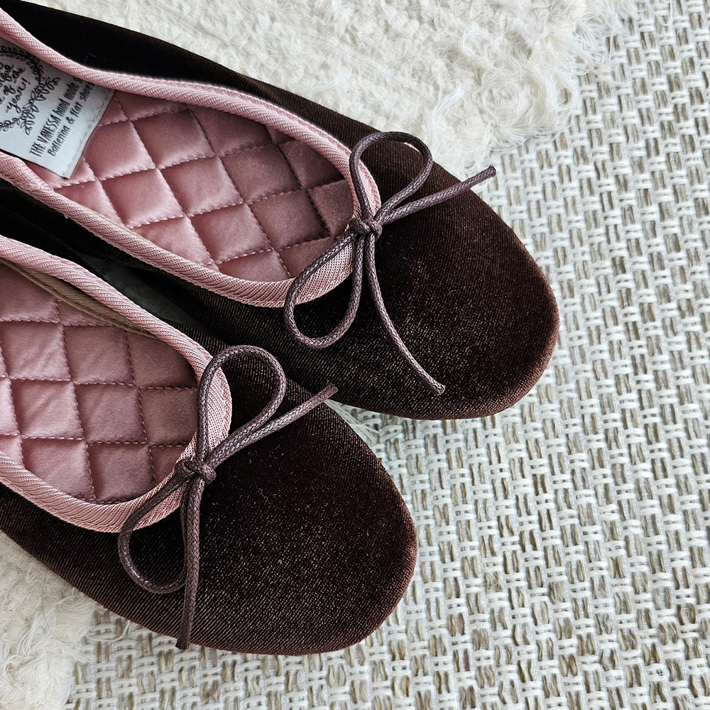 발편한 벨벳 퀼팅 인솔 쿠션 여자 단화 리본 플랫슈즈