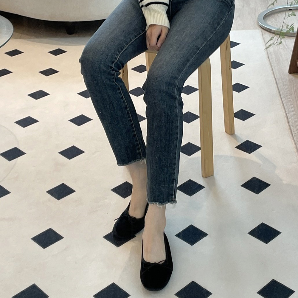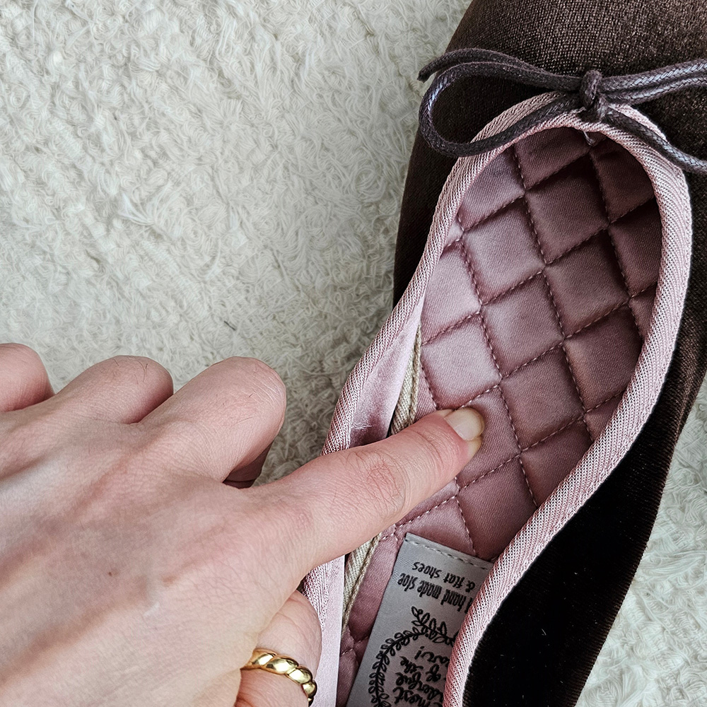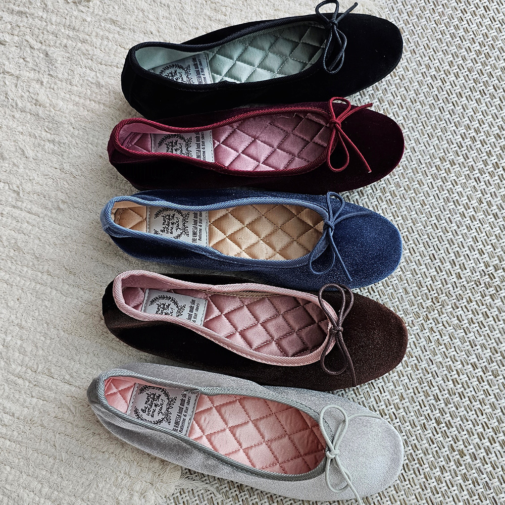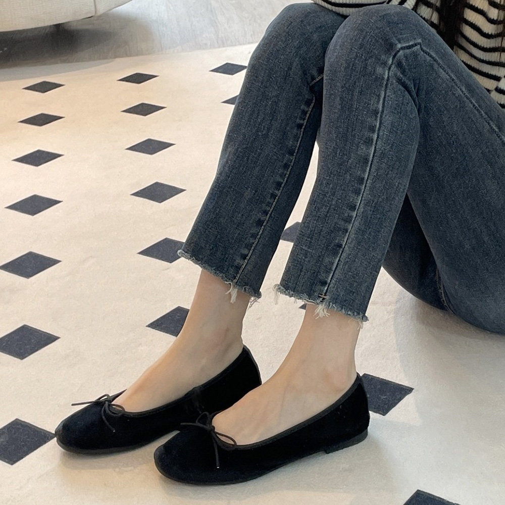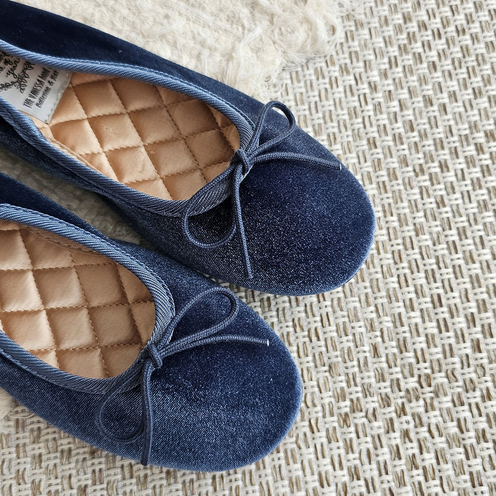 발편한 벨벳 퀼팅 인솔 쿠션 여자 단화 리본 플랫슈즈