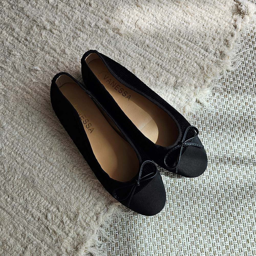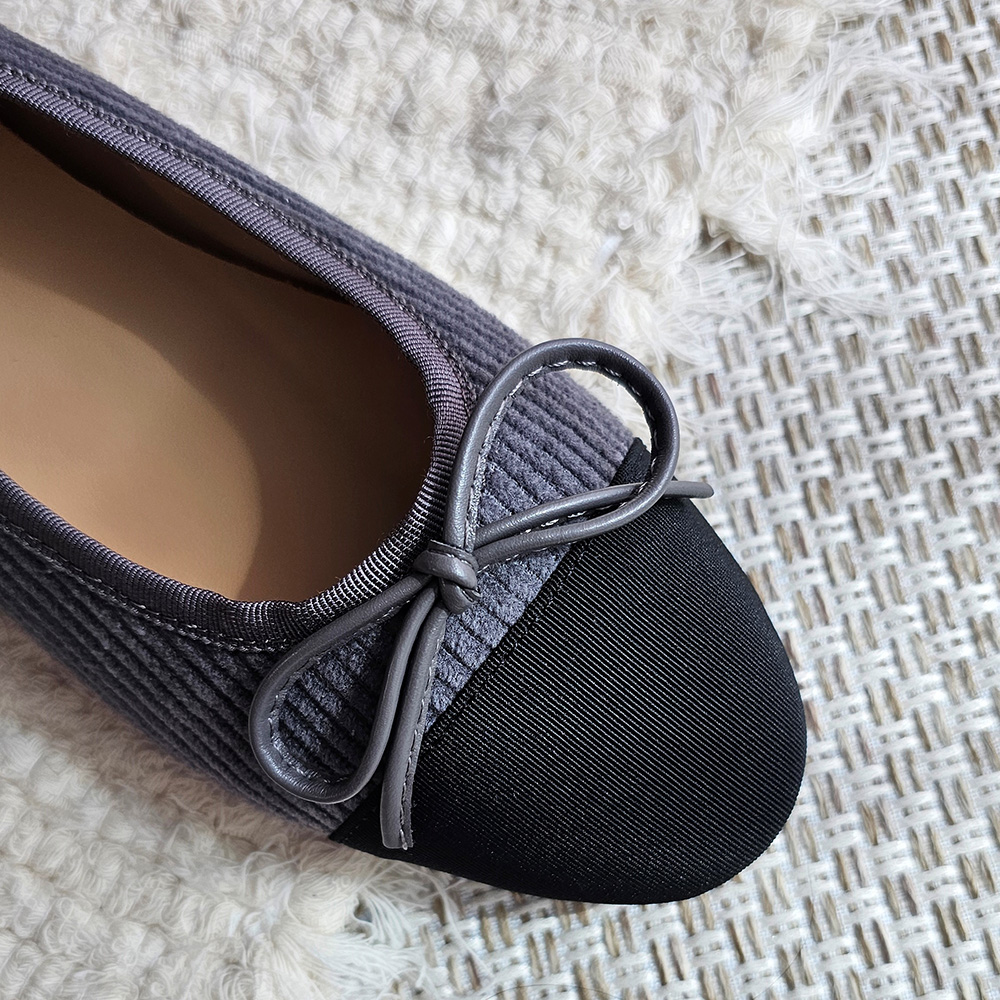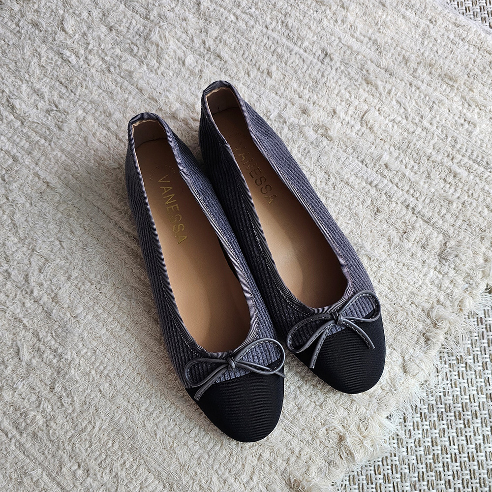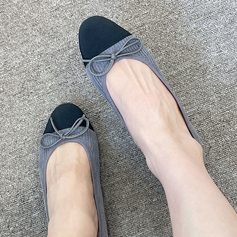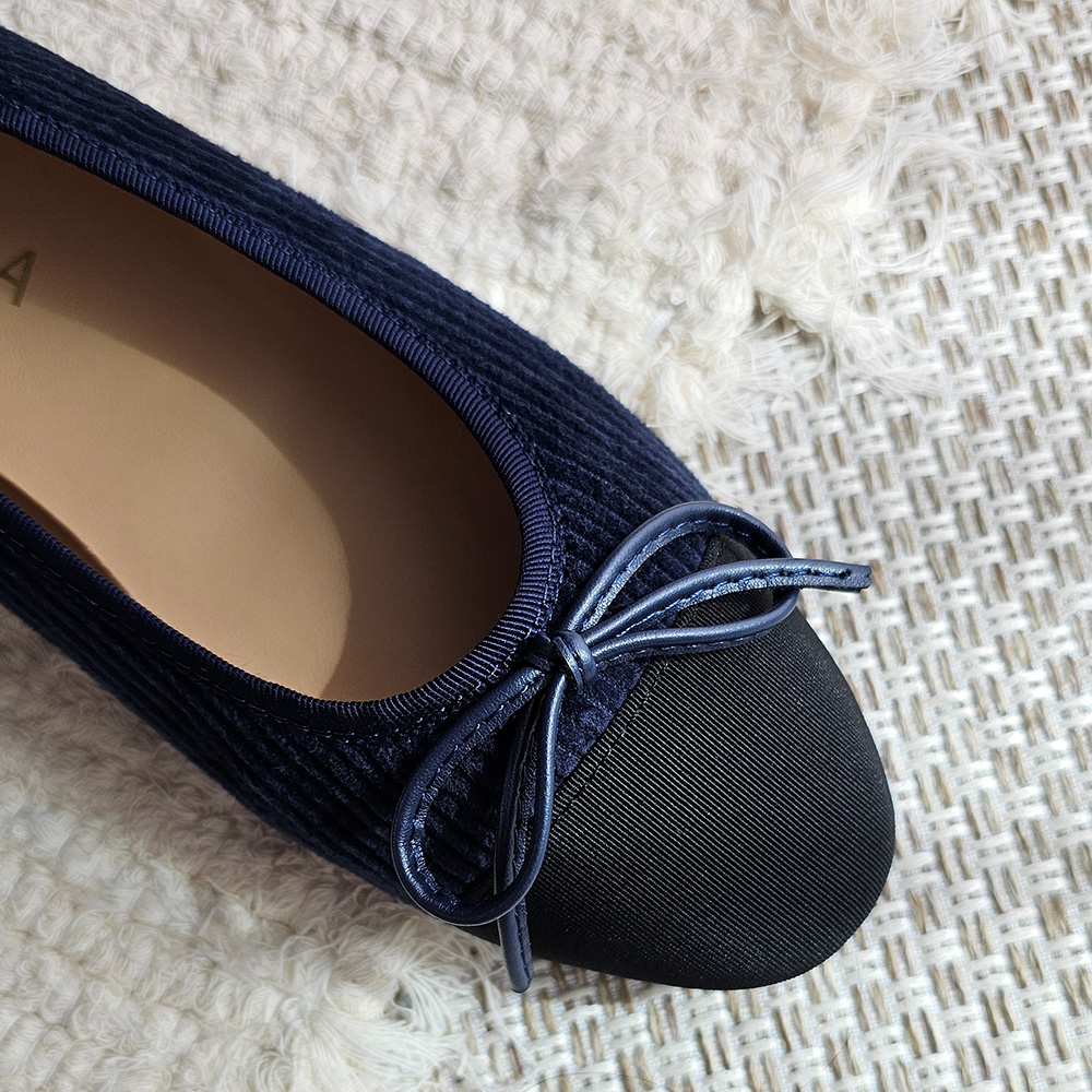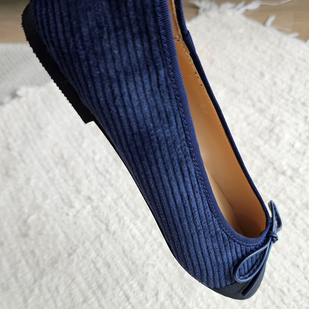 코듀로이 라운드토 투톤 리본 쿠션 발편한 여자 플랫슈즈