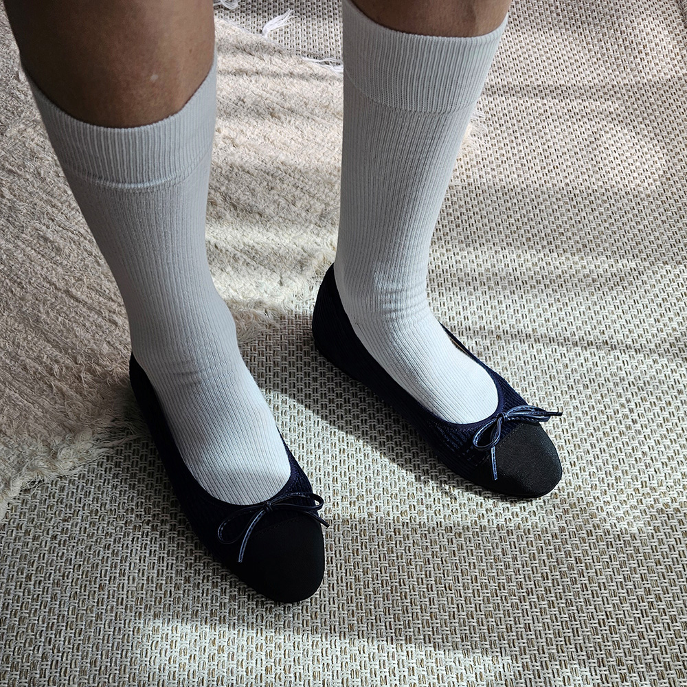 계절감 있는 코듀로이 투톤 플랫슈즈예요