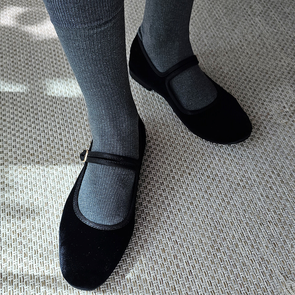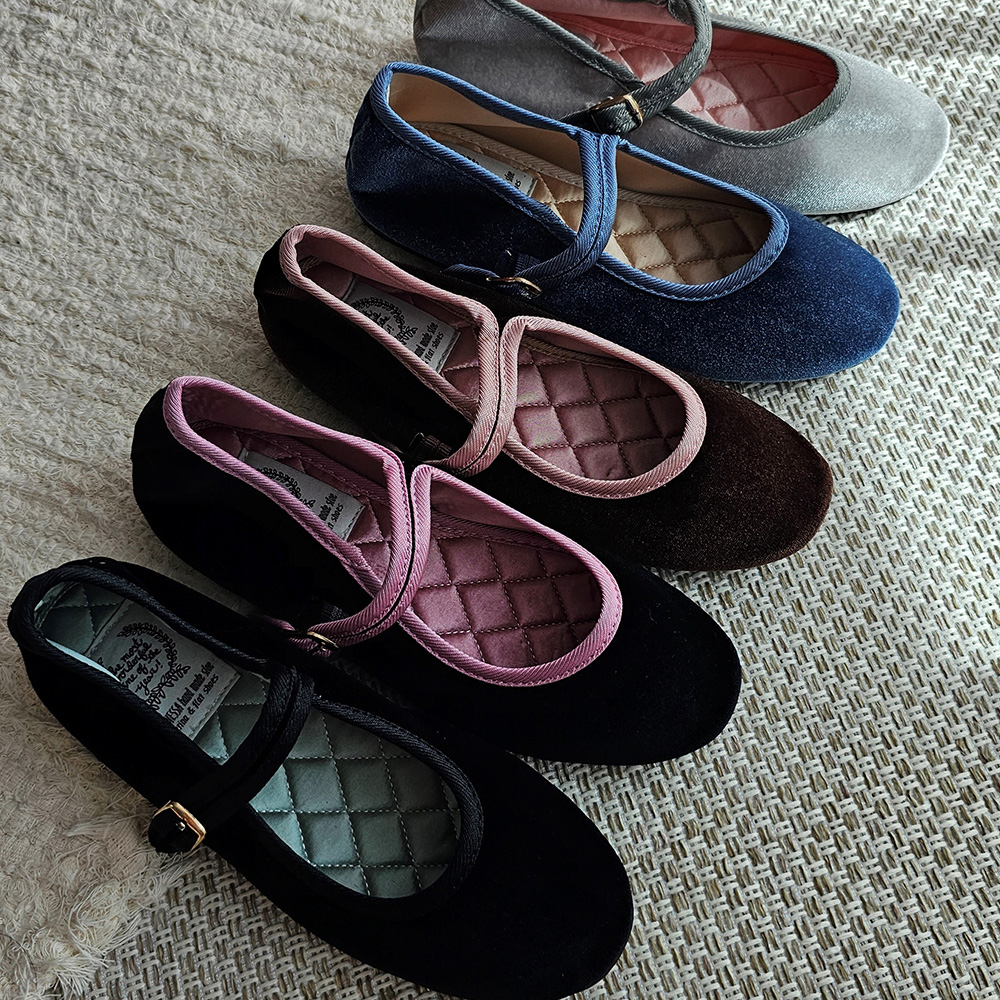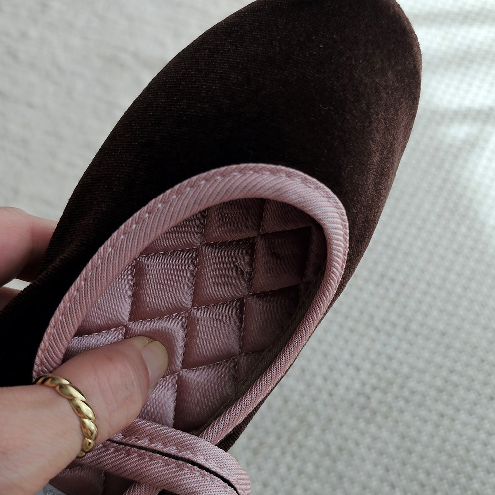 메리제인 벨벳 퀼팅 인솔 쿠션 여자 단화 플랫슈즈