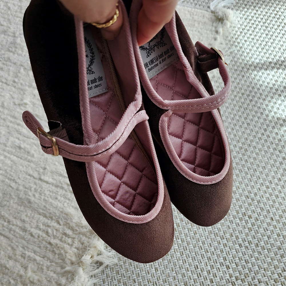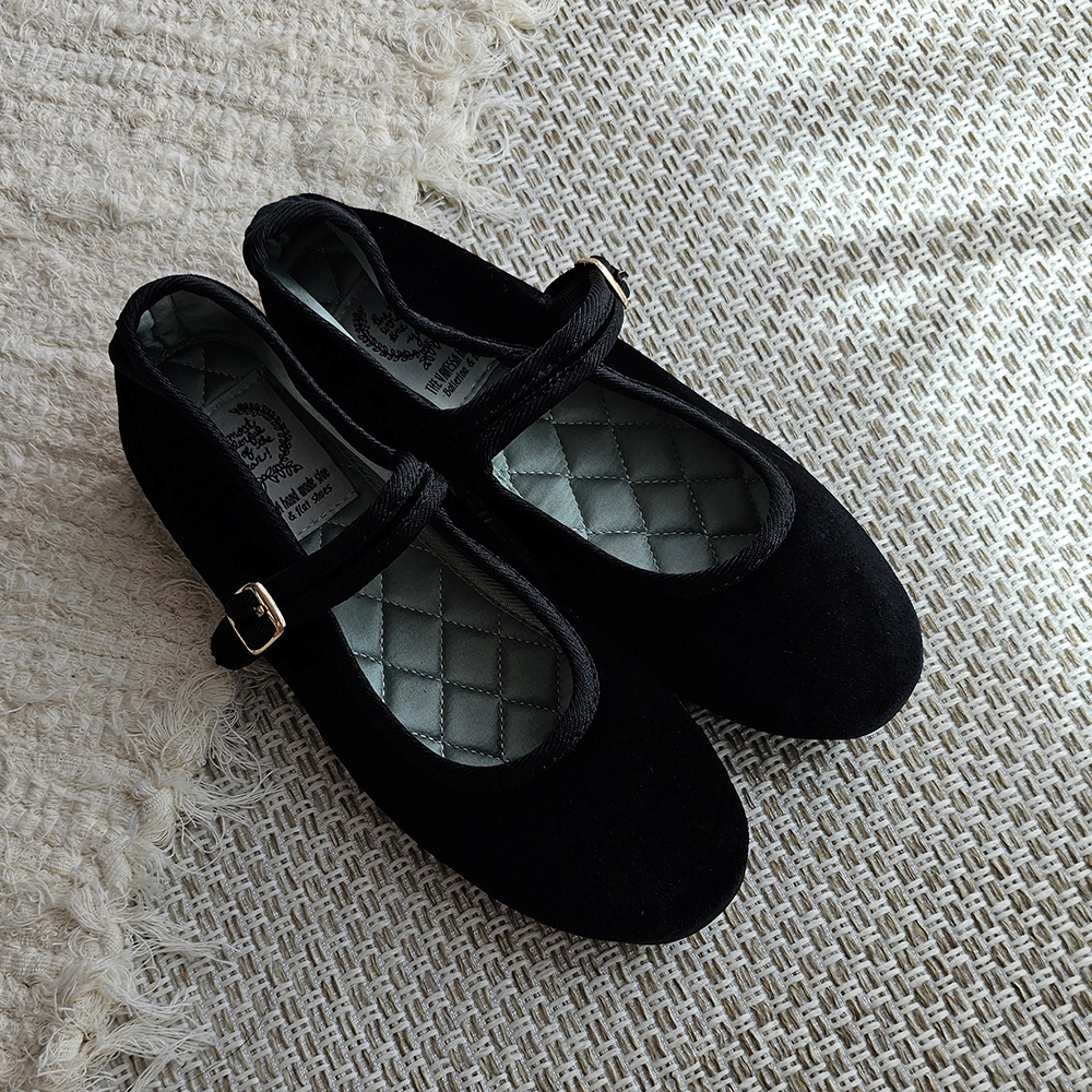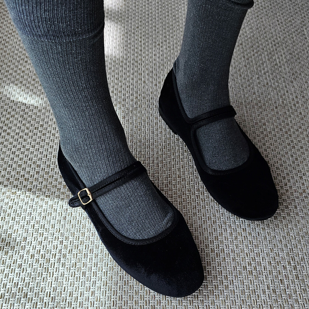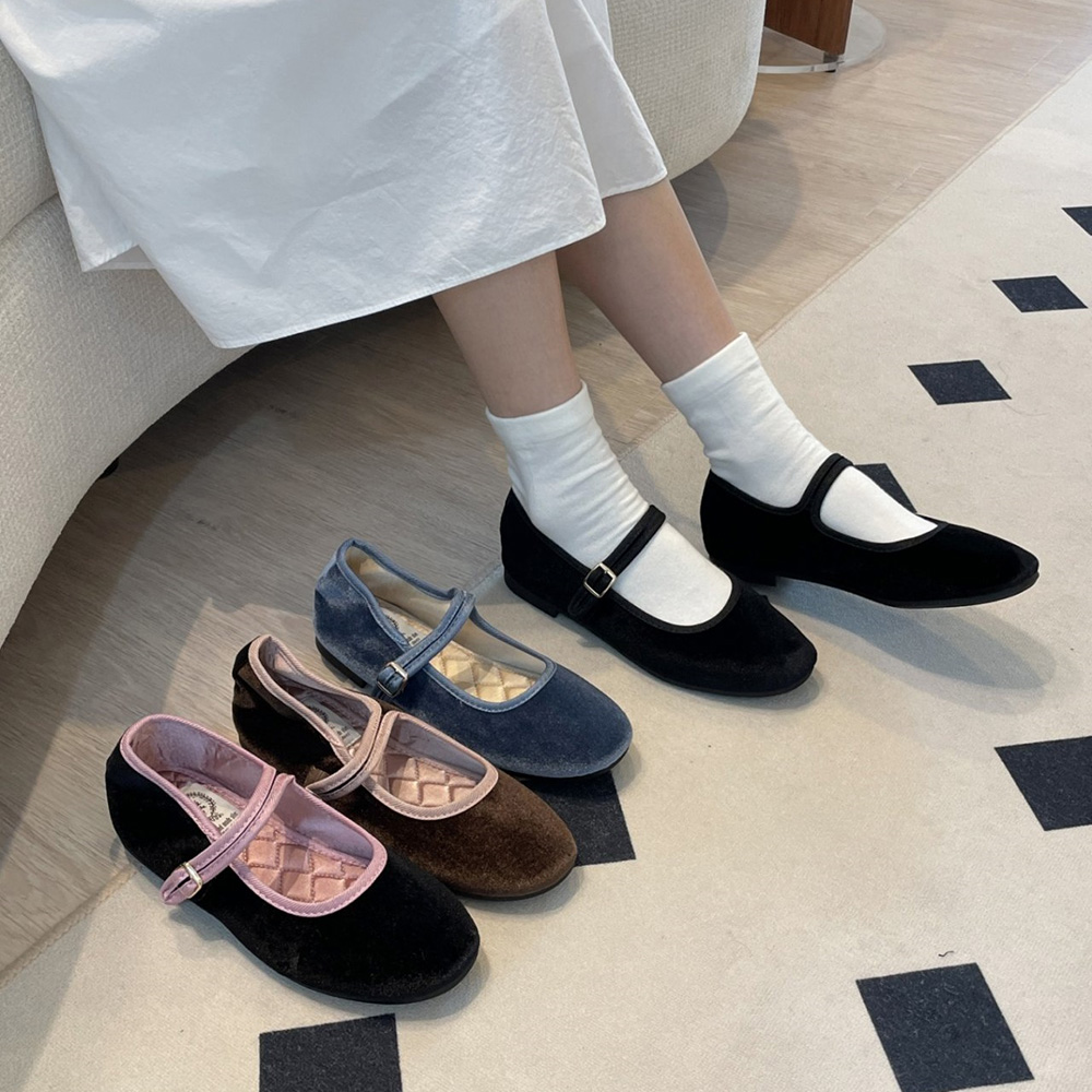 메리제인 벨벳 퀼팅 인솔 쿠션 여자 단화 플랫슈즈