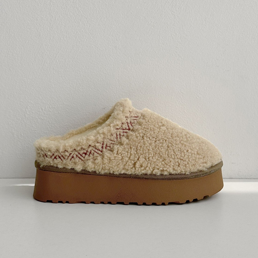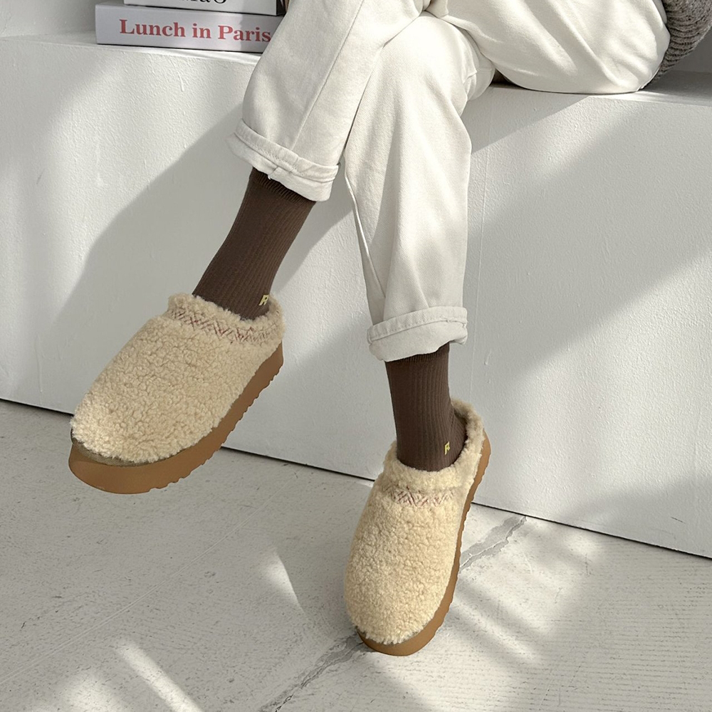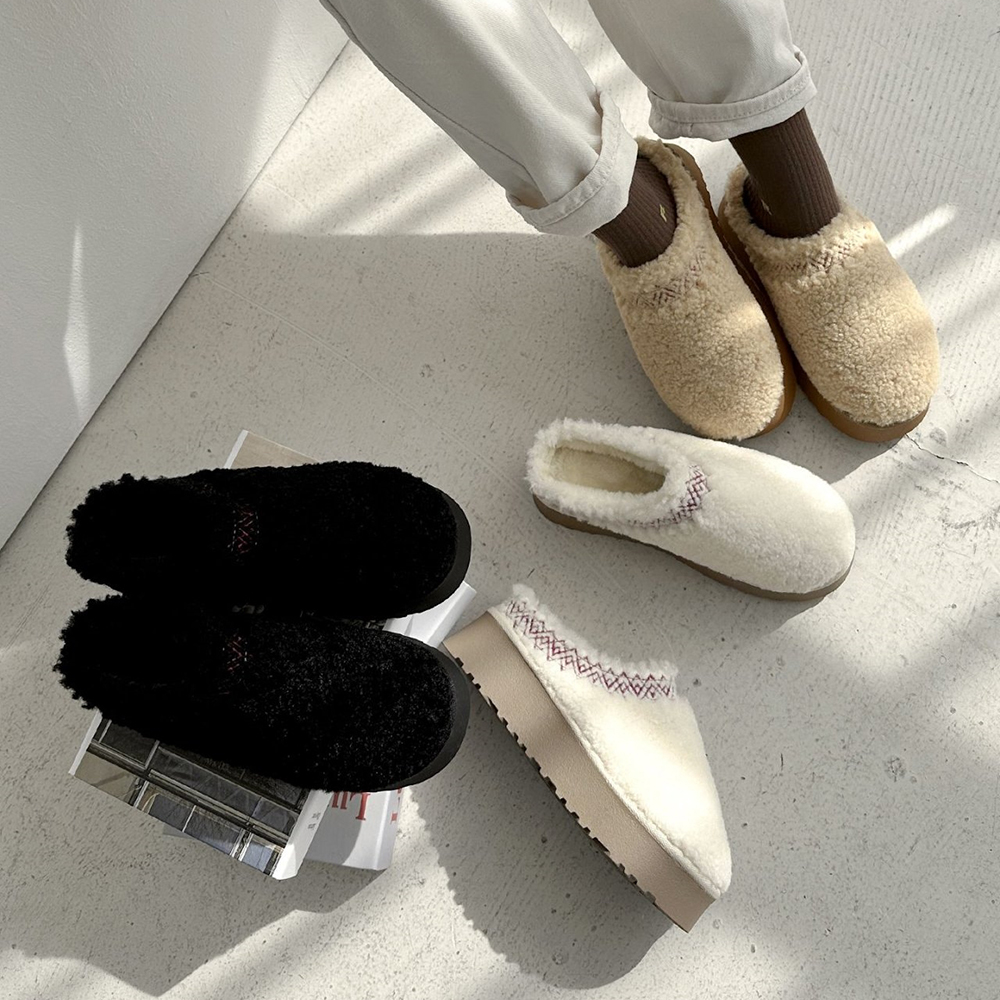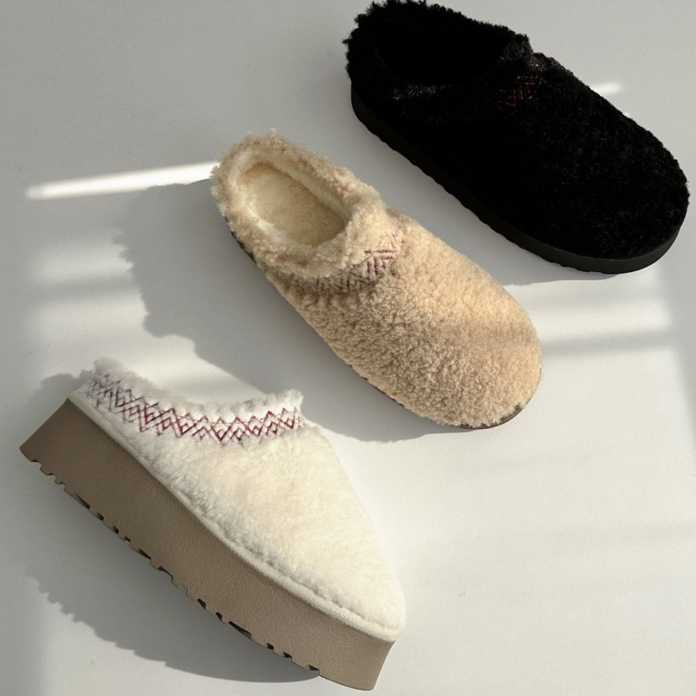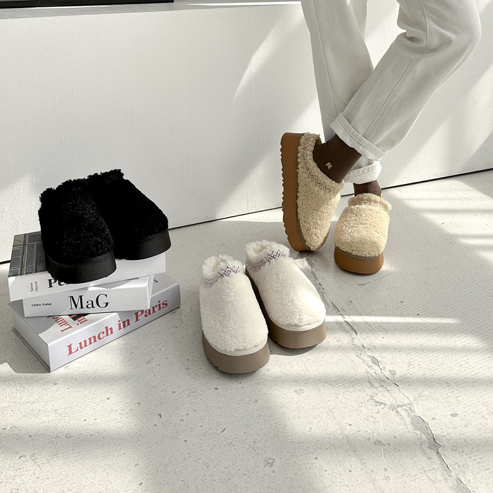(1+1) 뽀글이 털 기모 퍼 플랫폼 통굽 겨울 한파 방한 블로퍼 털슬리퍼 4cm