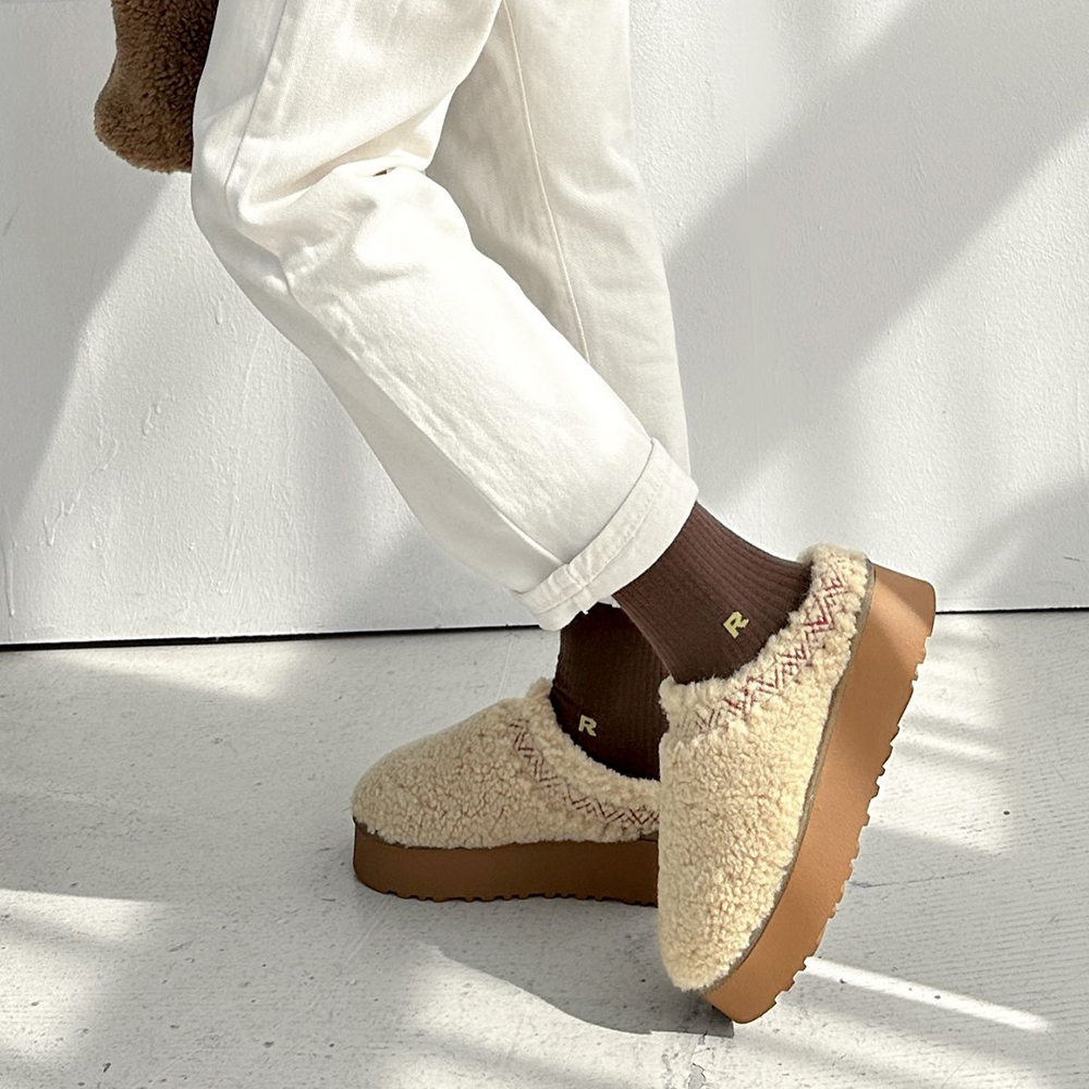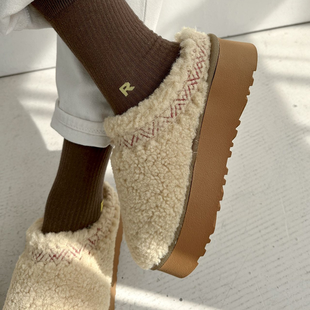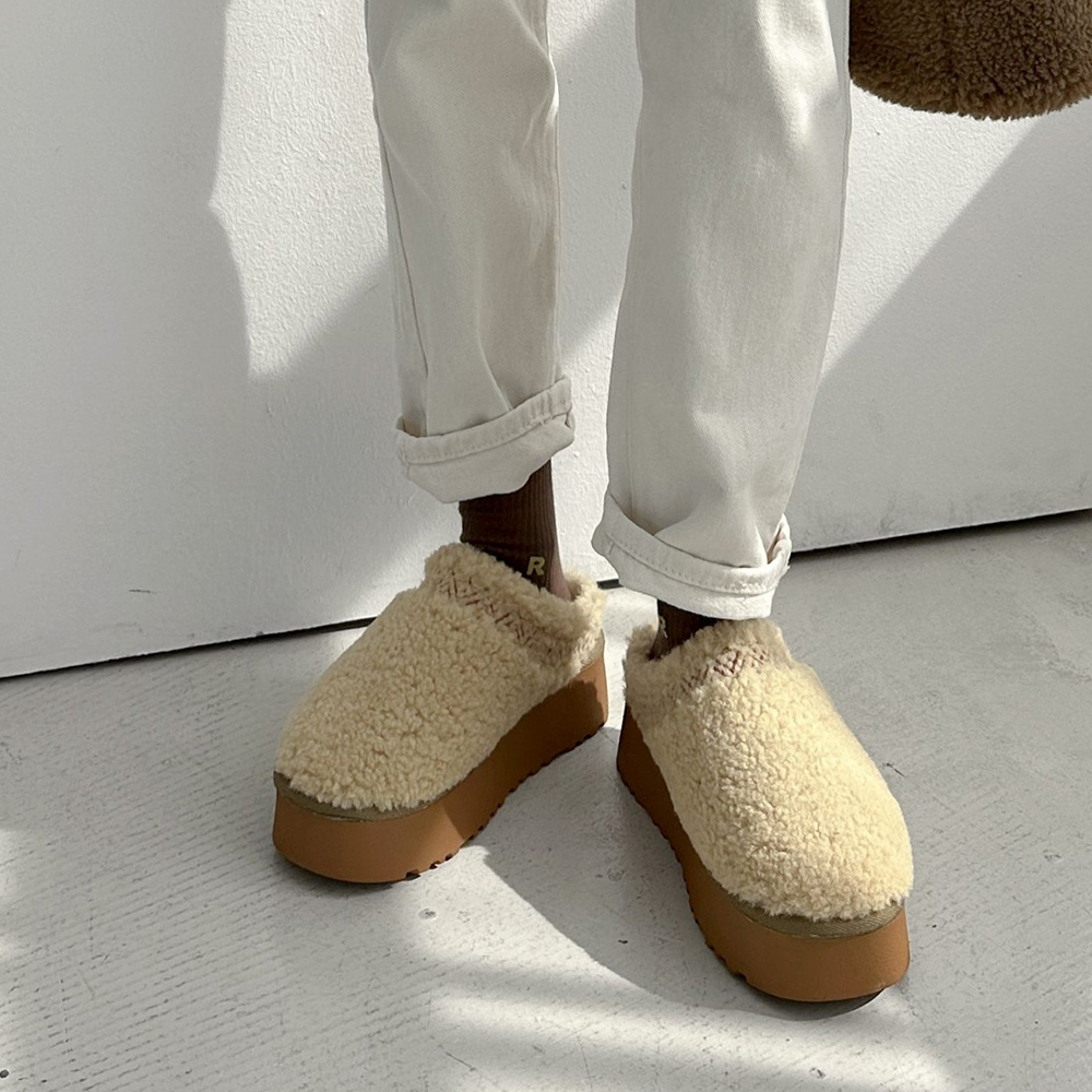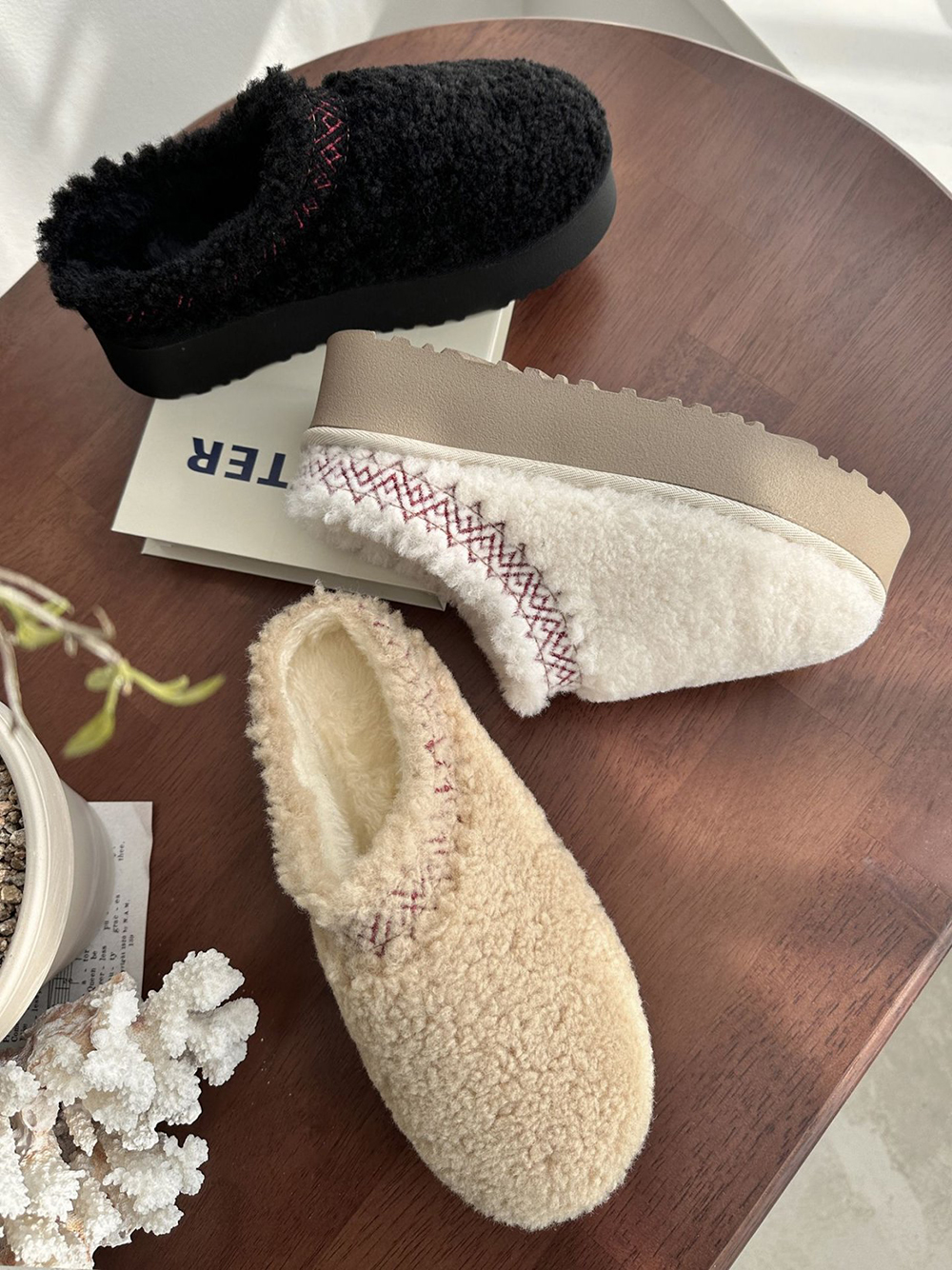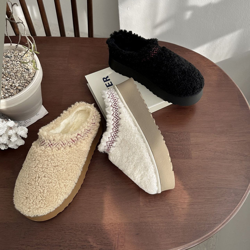 (1+1) 뽀글이 털 기모 퍼 플랫폼 통굽 겨울 한파 방한 블로퍼 털슬리퍼 4cm