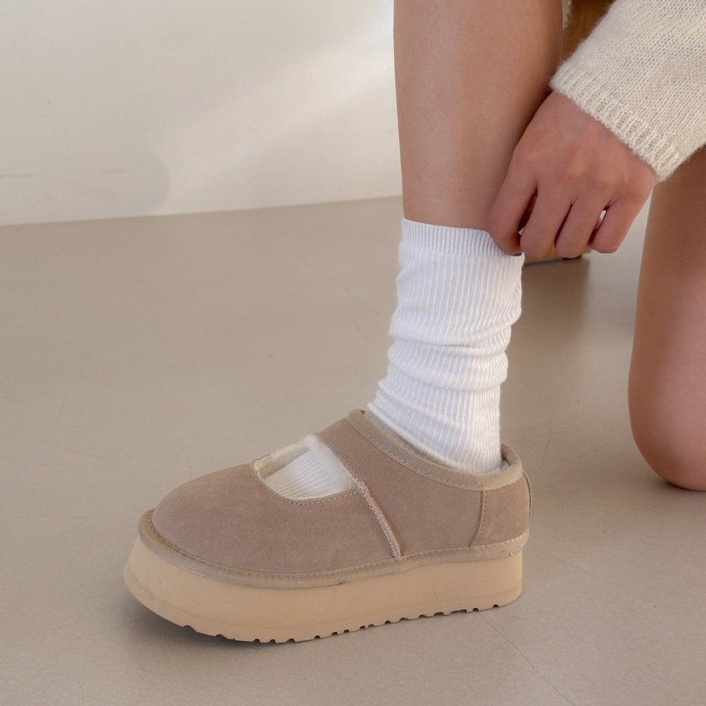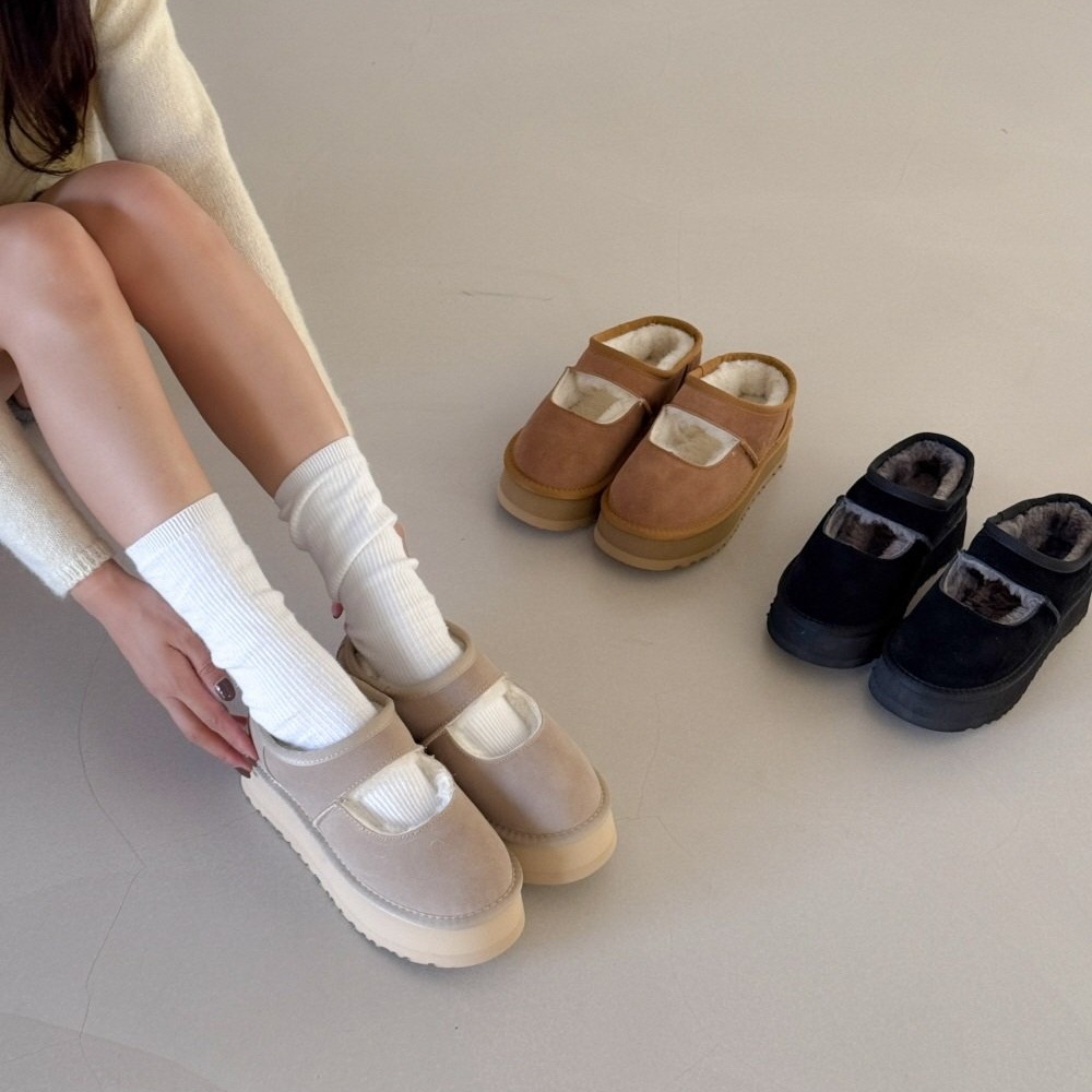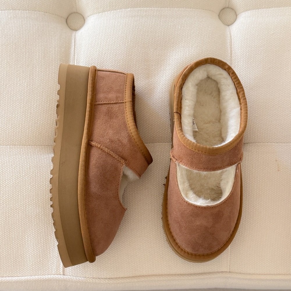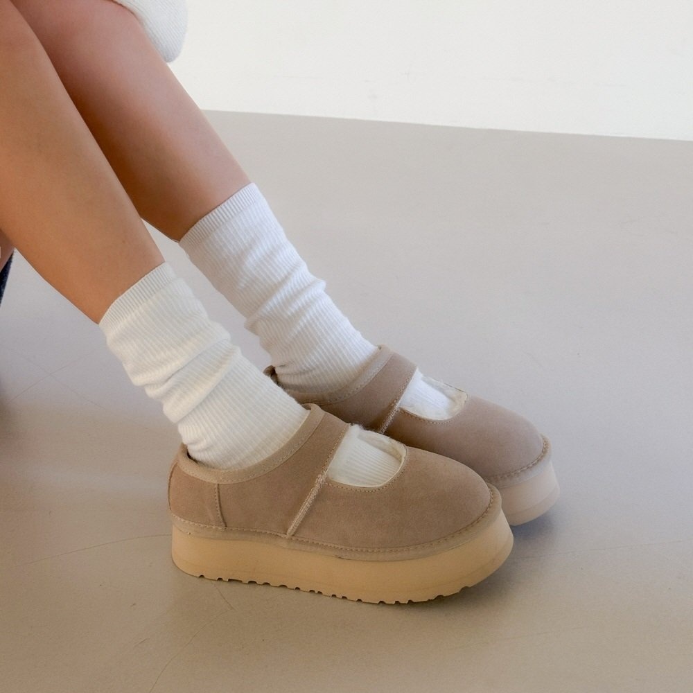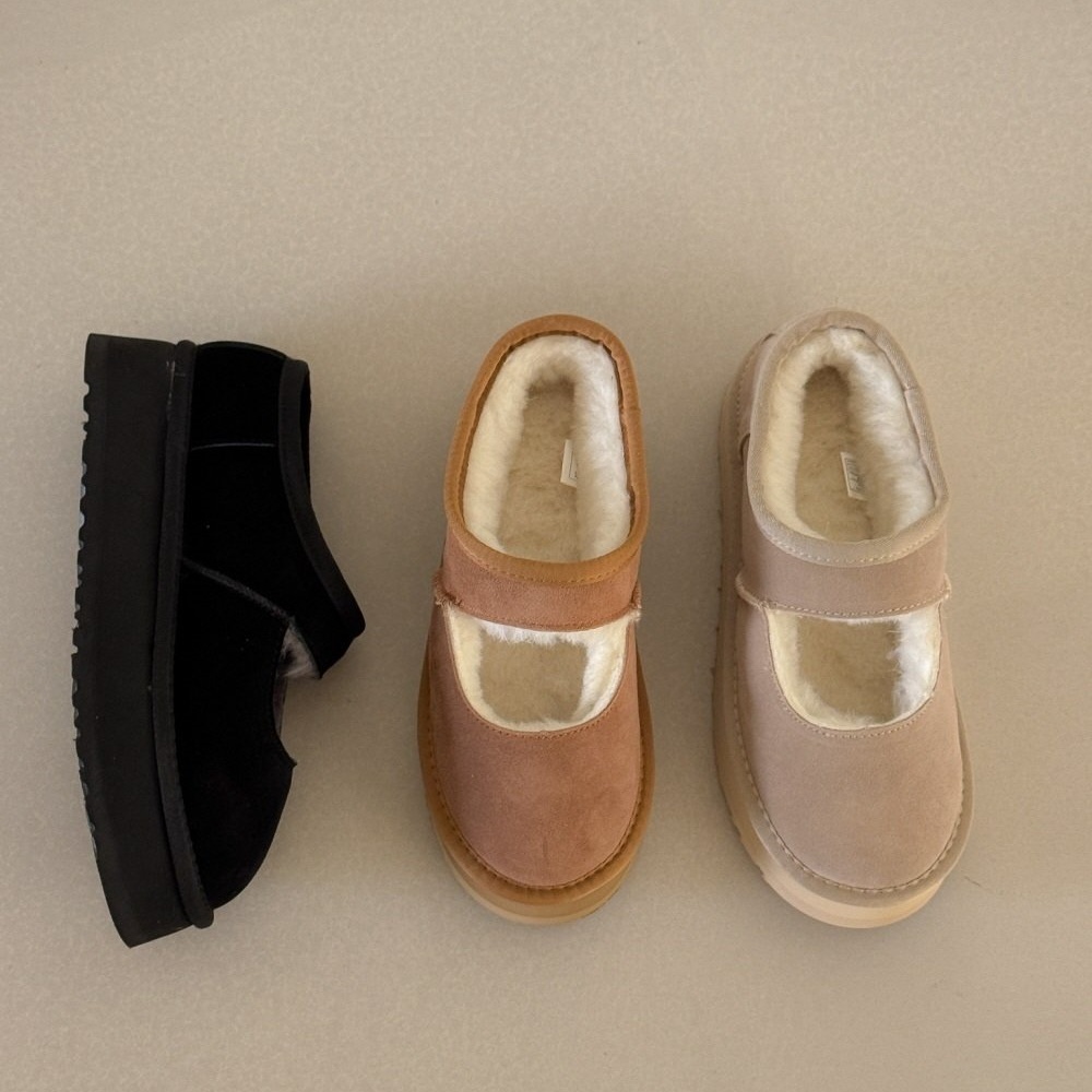 (1+1) 리얼양털 소가죽 메리제인 퍼 털 플랫폼 통굽 겨울 방한슈즈 4cm