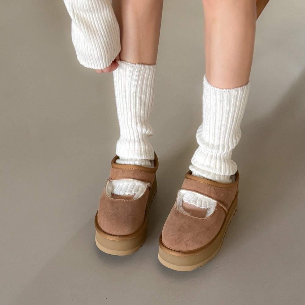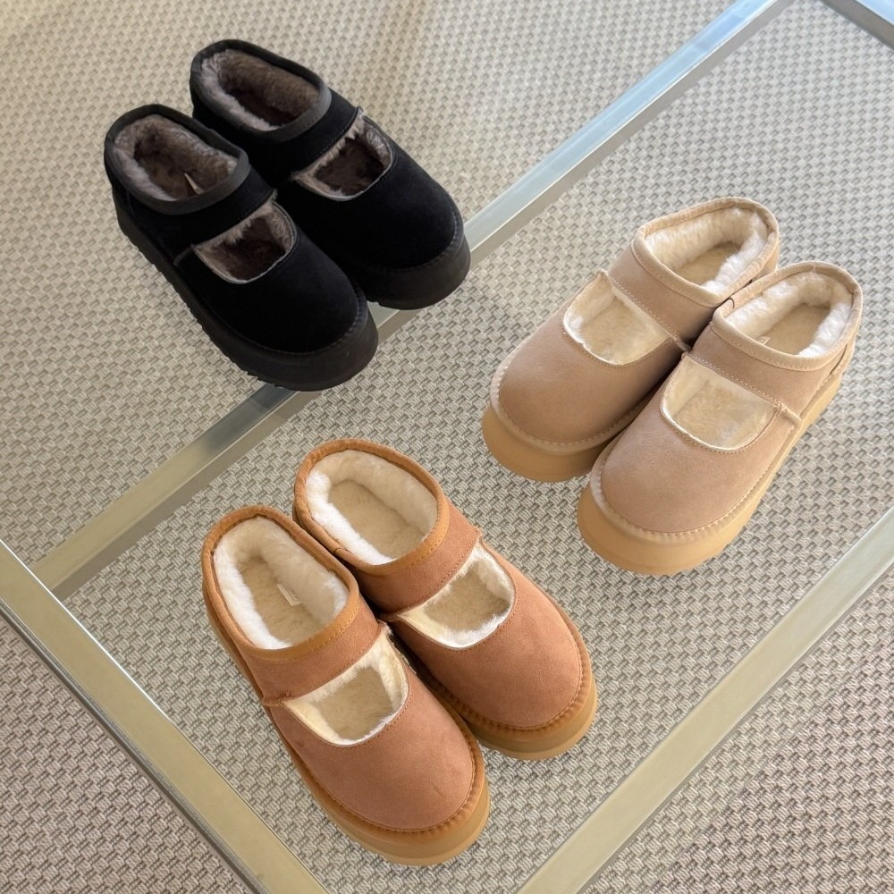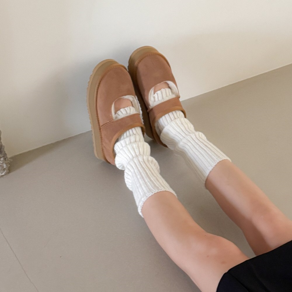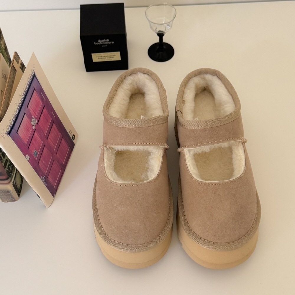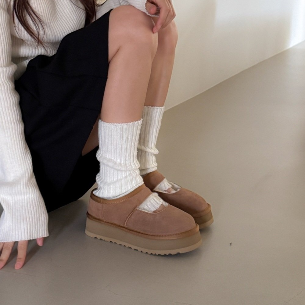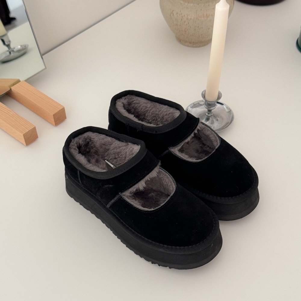 (1+1) 리얼양털 소가죽 메리제인 퍼 털 플랫폼 통굽 겨울 방한슈즈 4cm