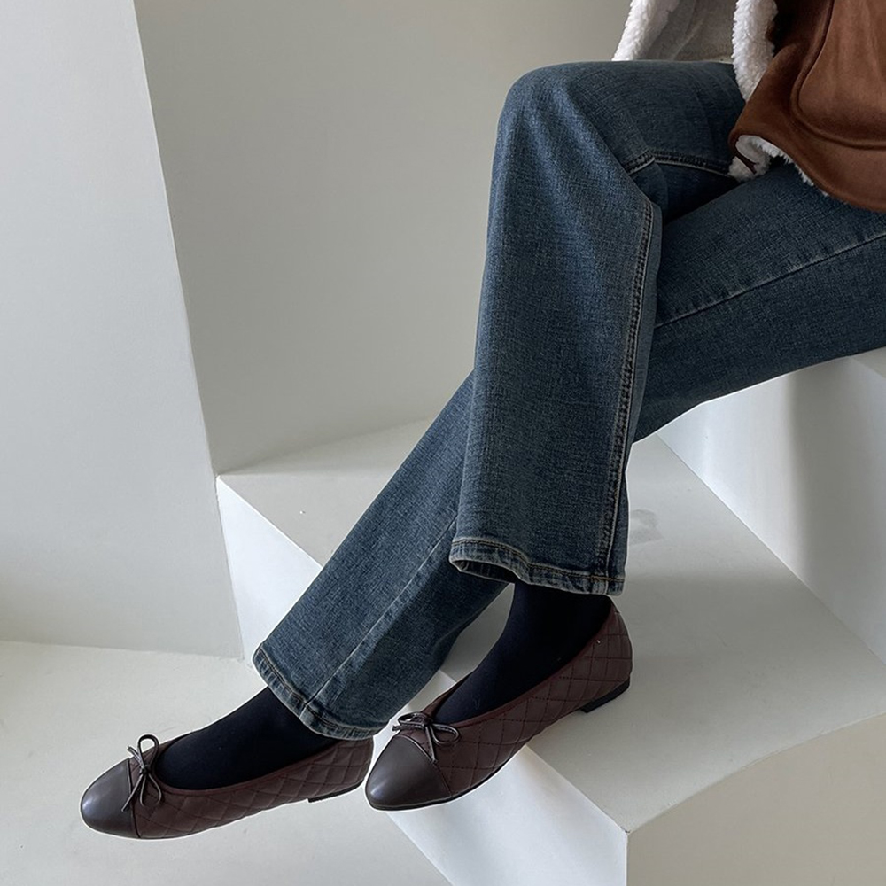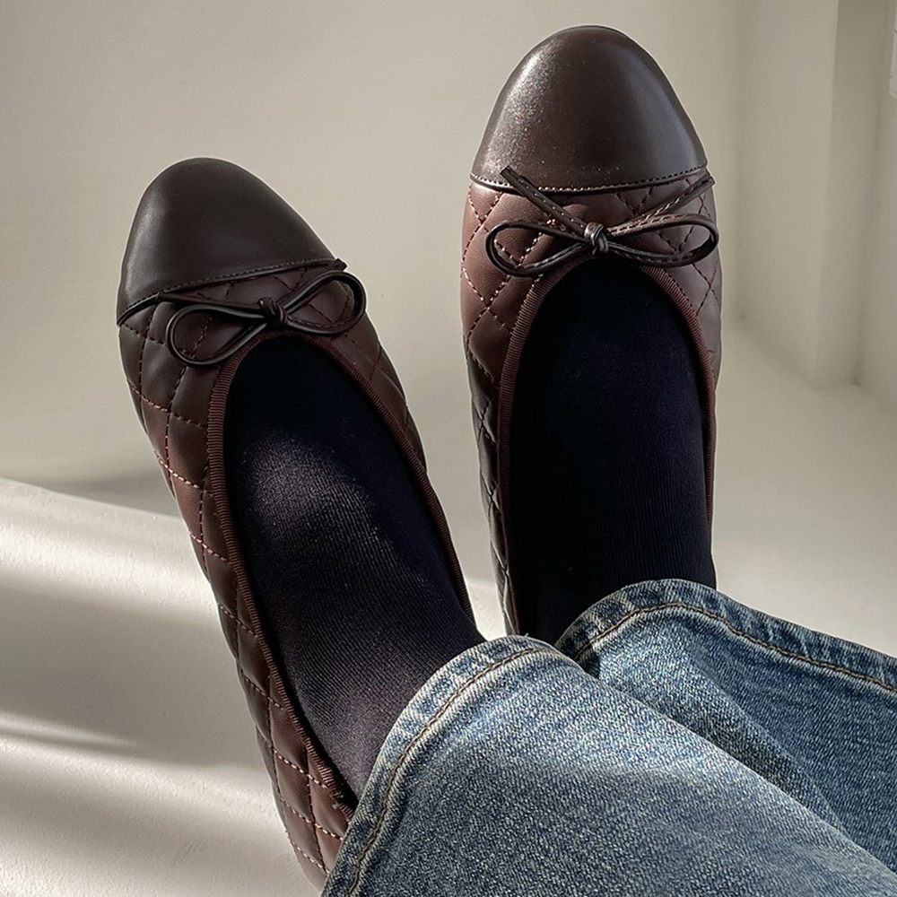 퀼팅 소재의 플랫슈즈입니다