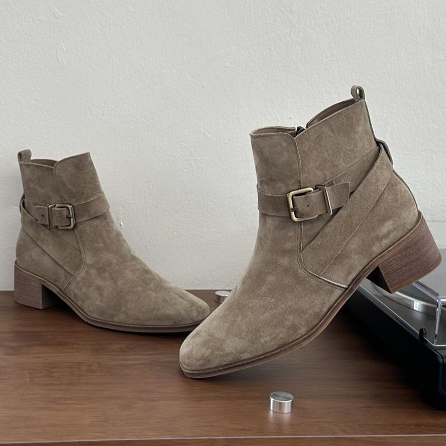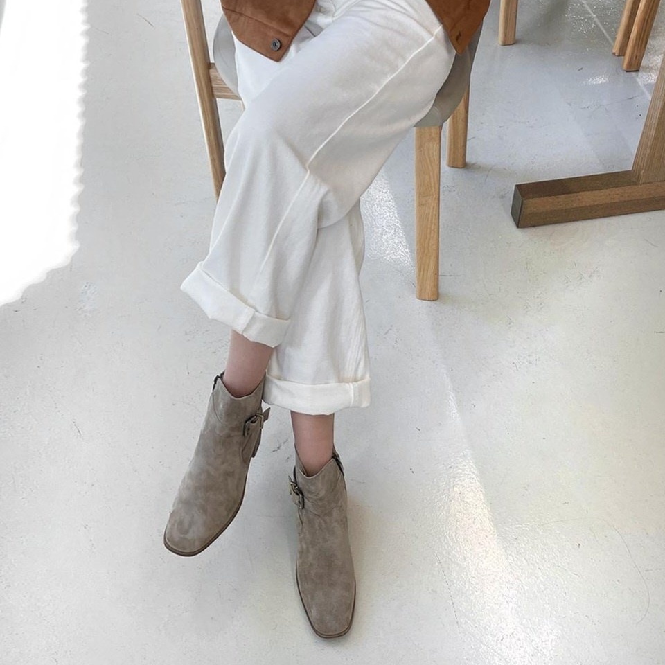 스웨이드 리얼가죽 벨트 웨스턴 쿠션 발편한 여자 앵클부츠