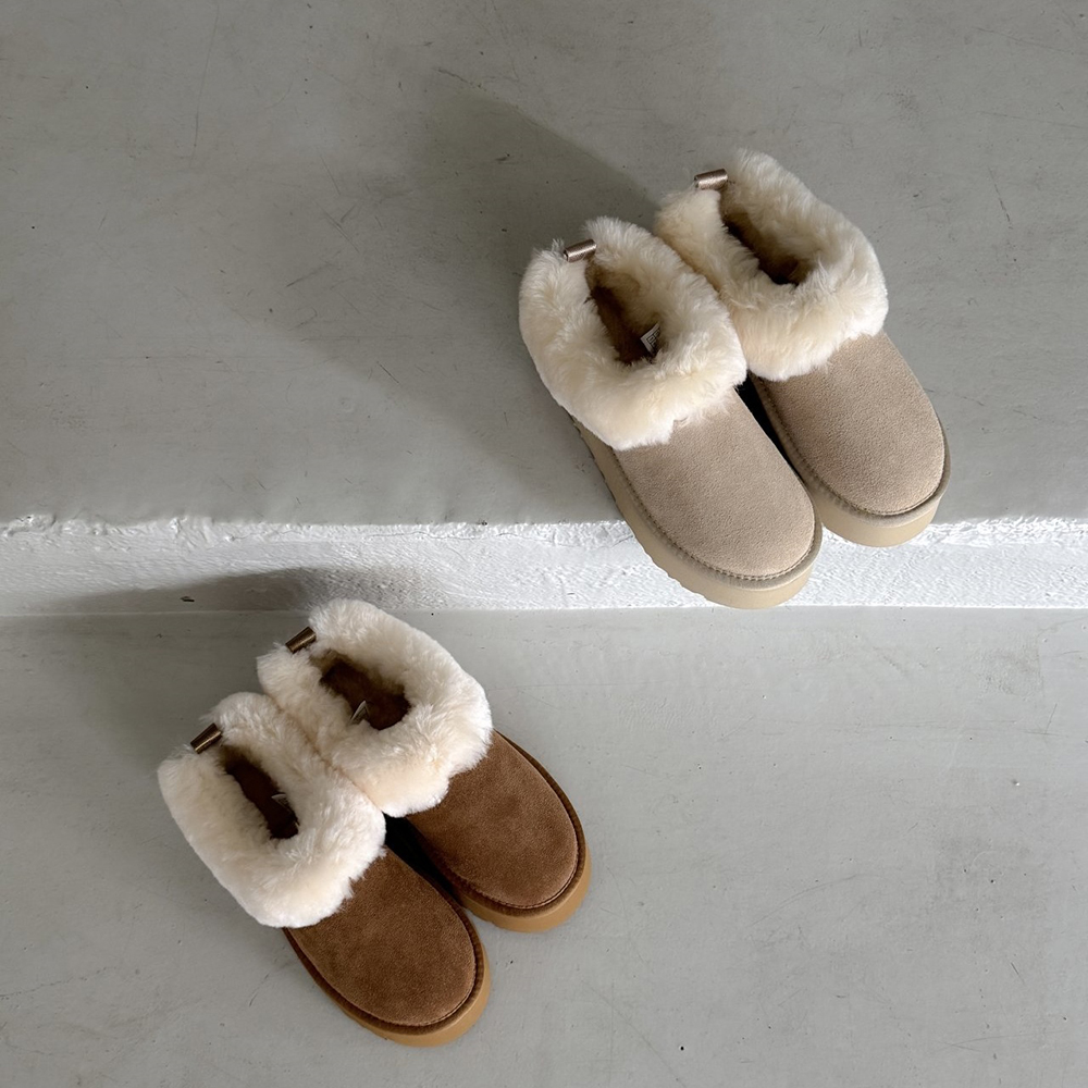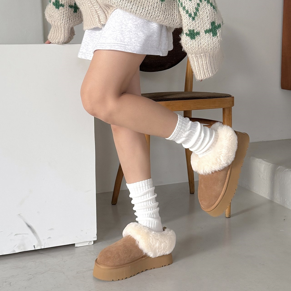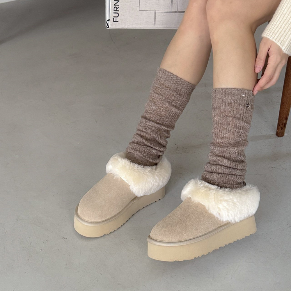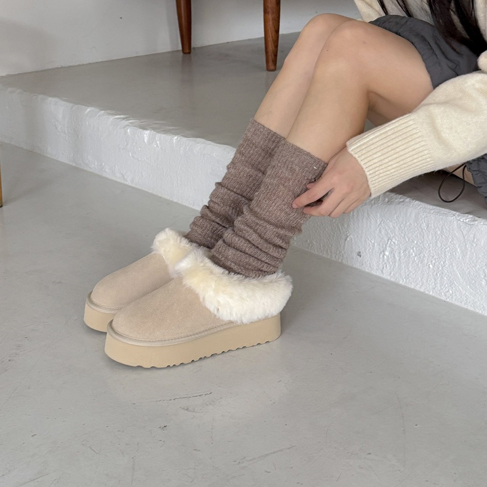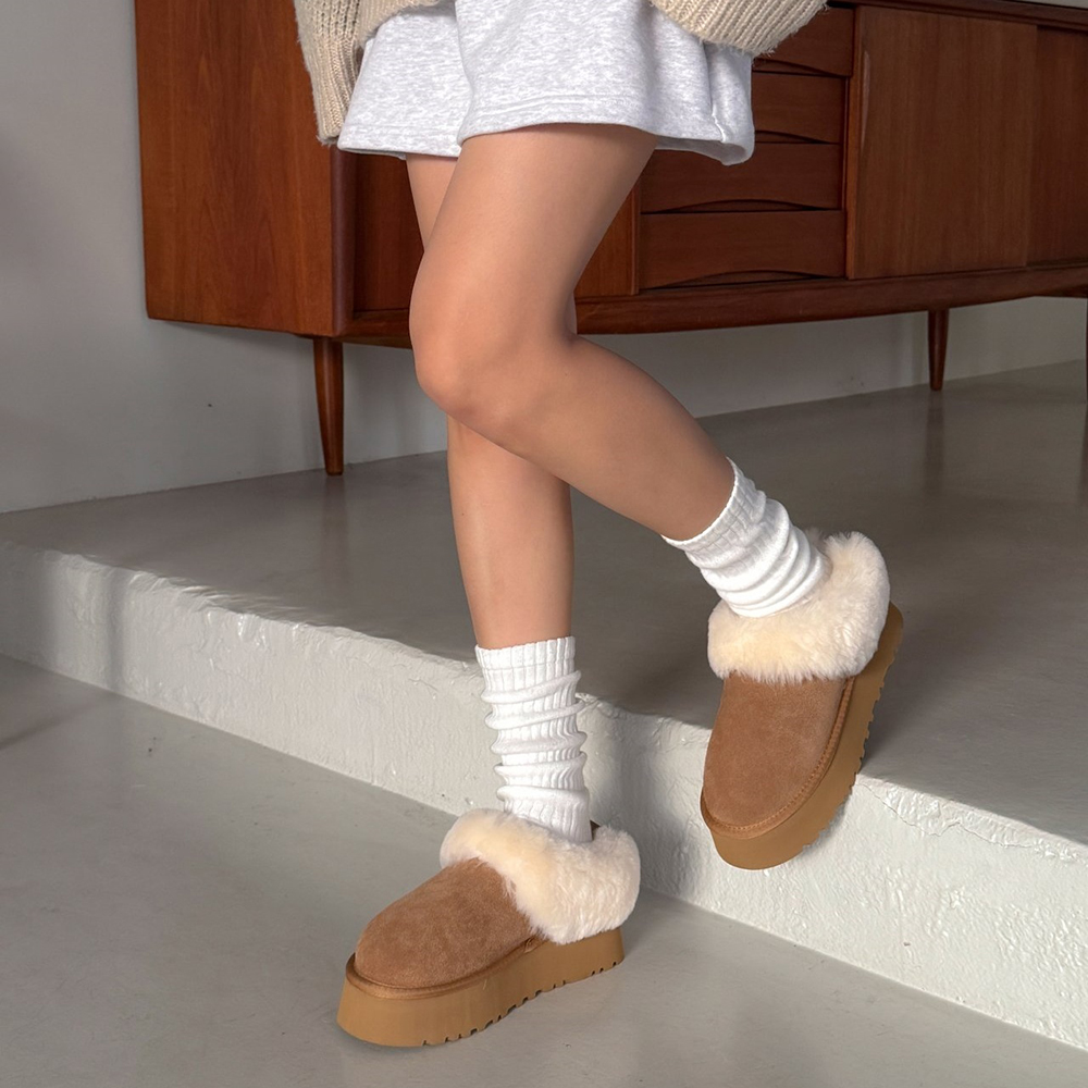 리얼가죽 리얼양털 겨울 방한 퍼 털 통굽 여자 로퍼 4cm
