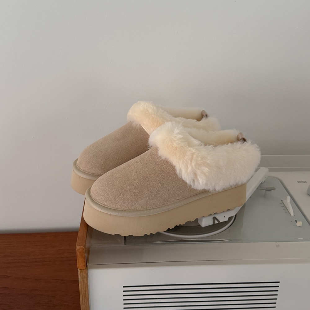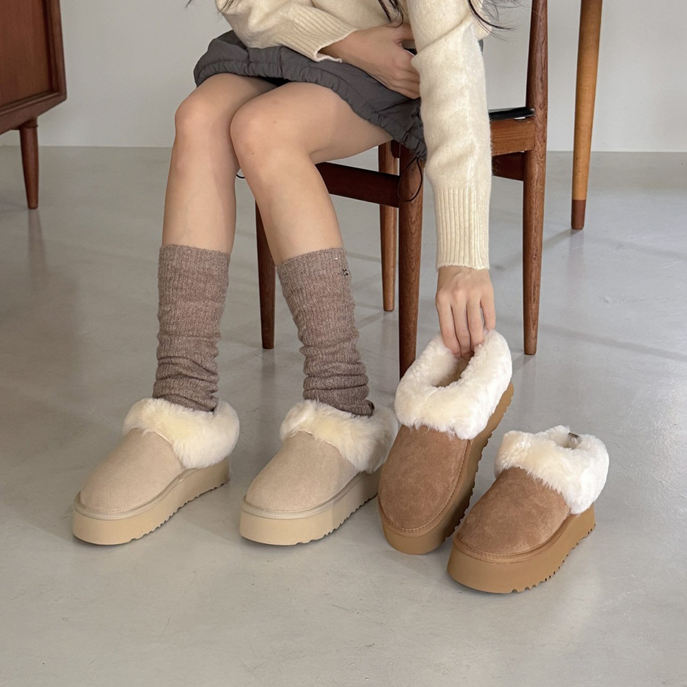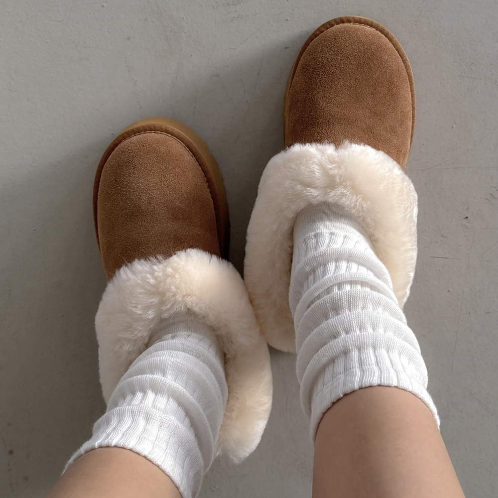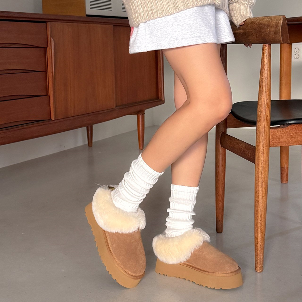 리얼가죽 리얼양털 겨울 방한 퍼 털 통굽 여자 로퍼 4cm