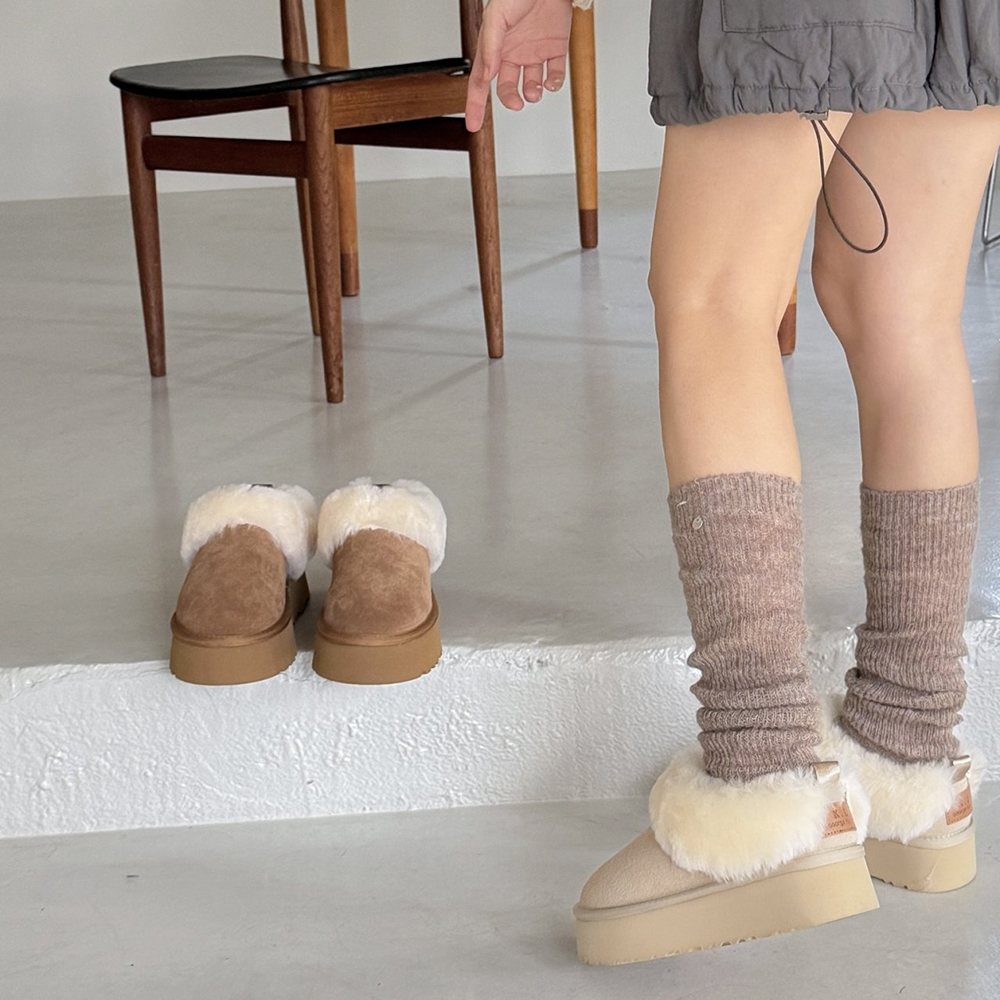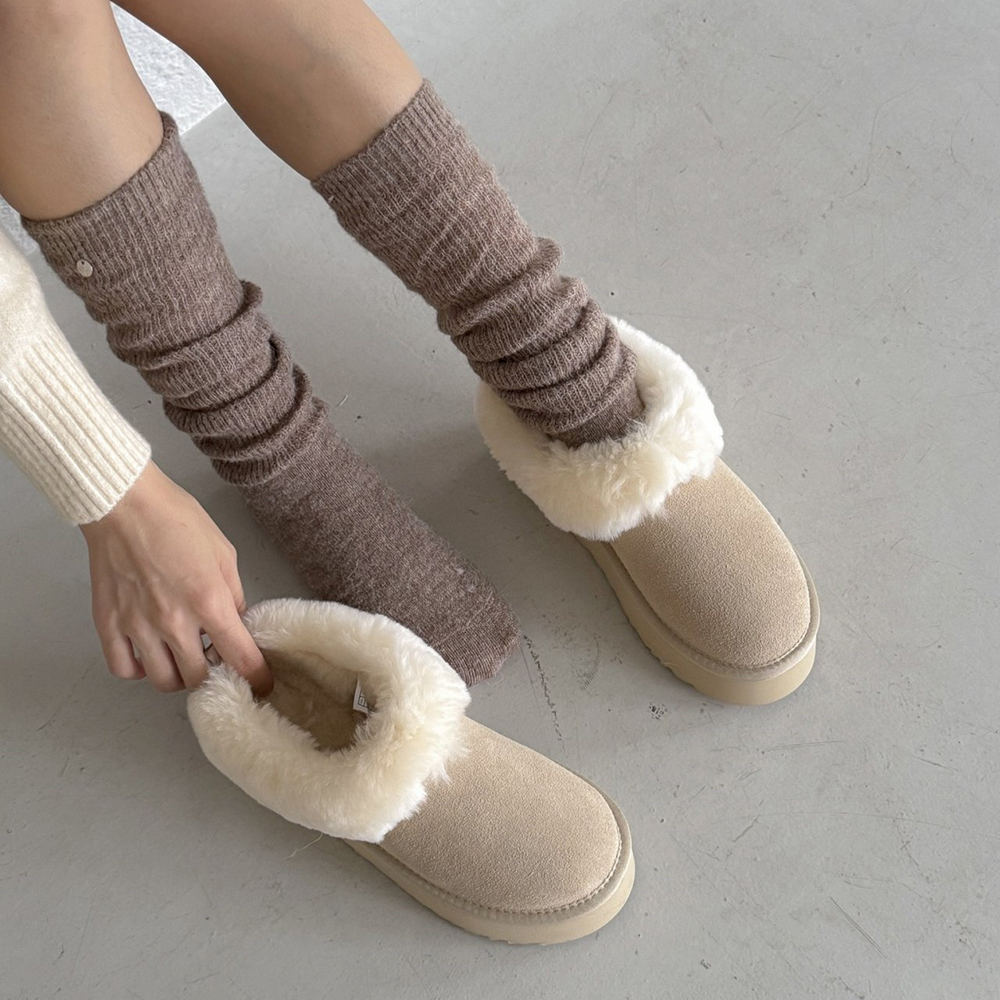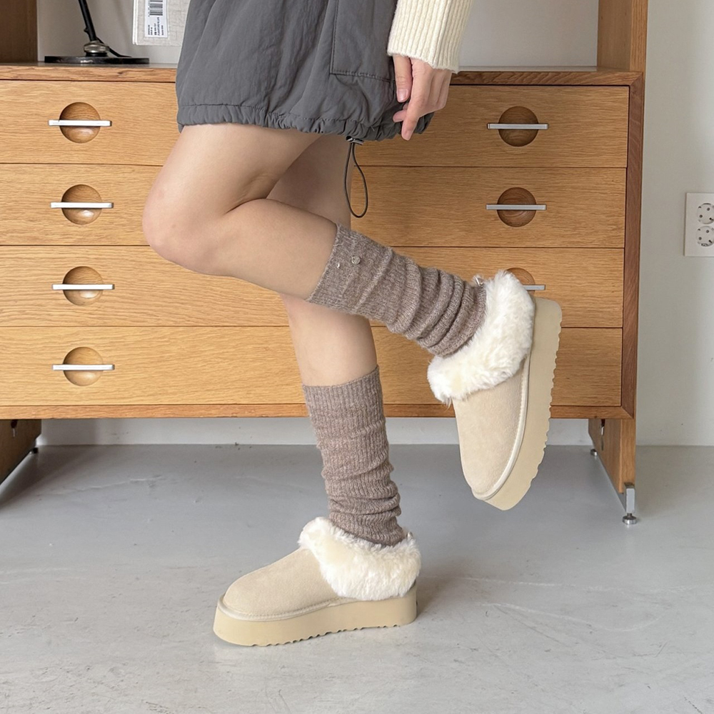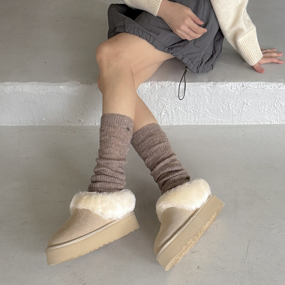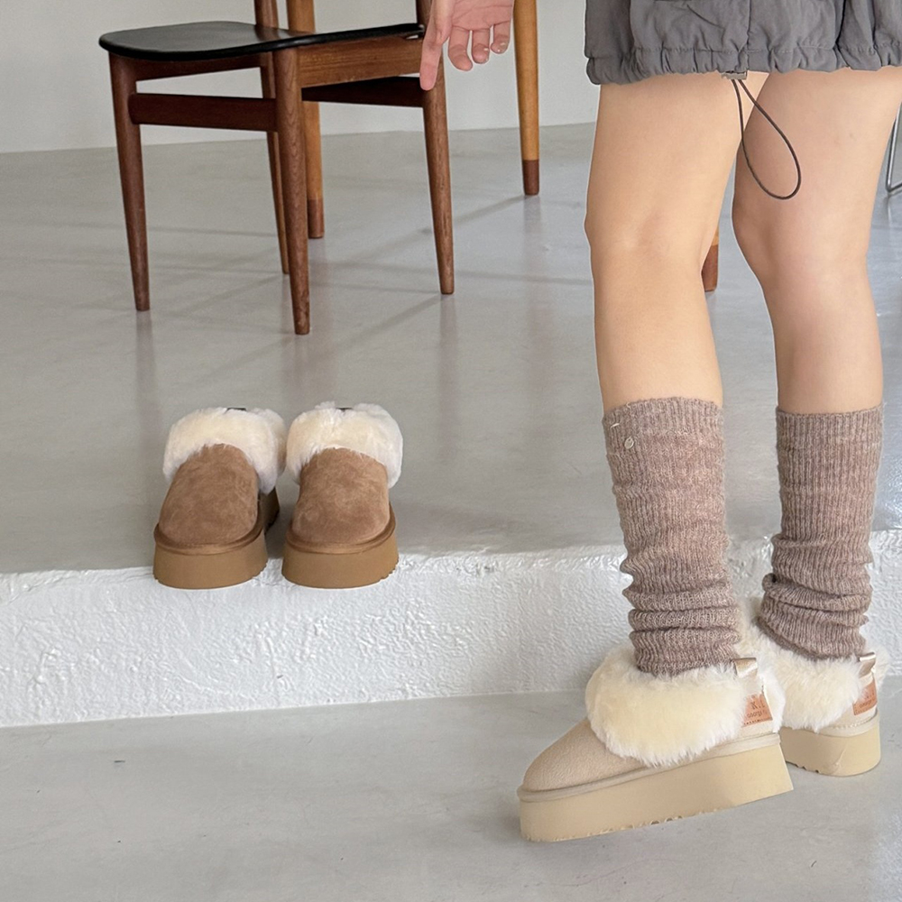 리얼가죽 리얼양털 겨울 방한 퍼 털 통굽 여자 로퍼 4cm