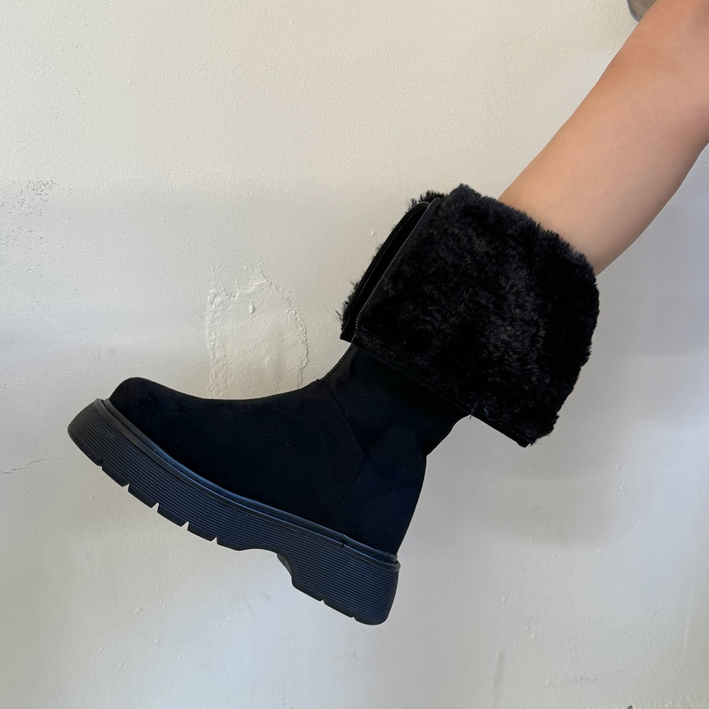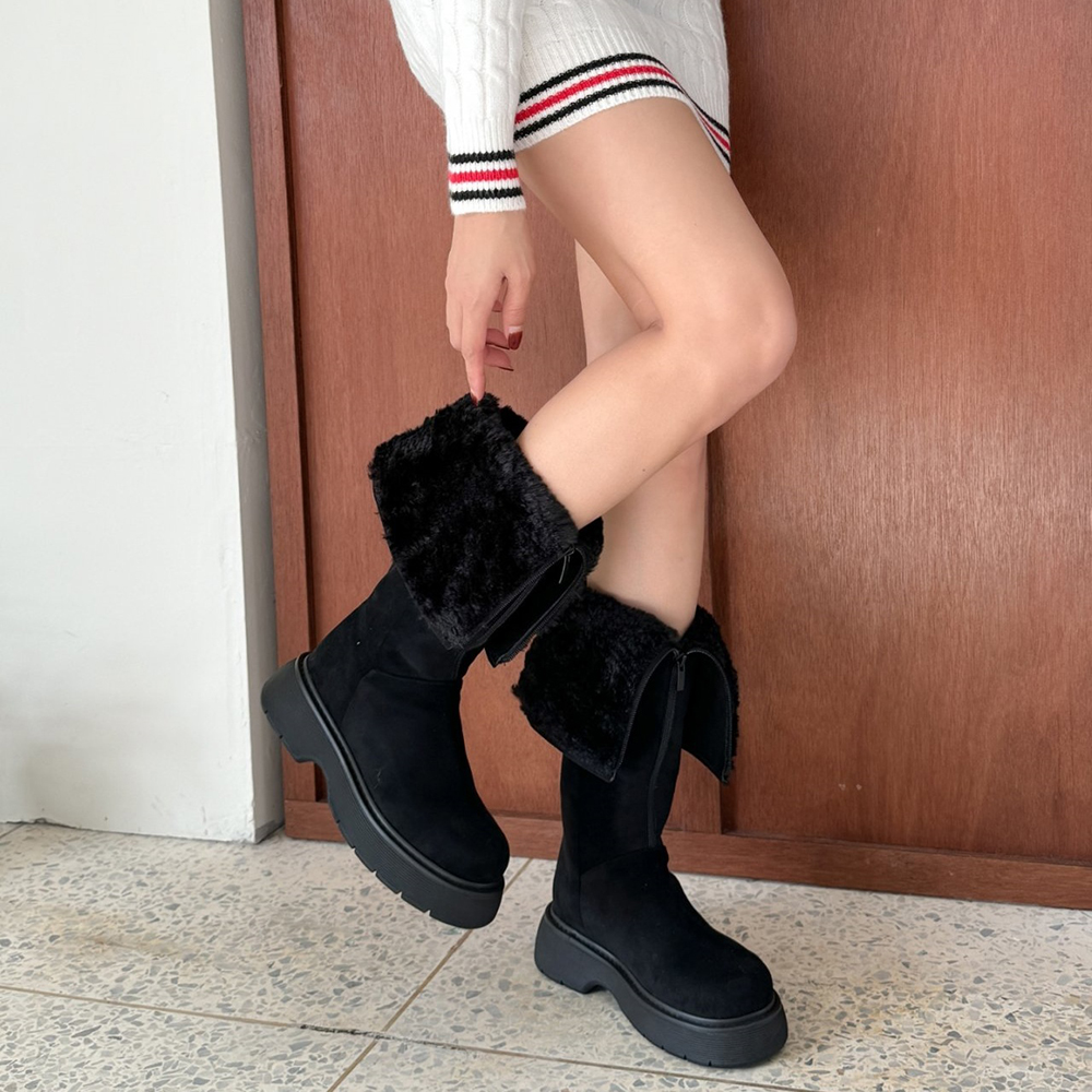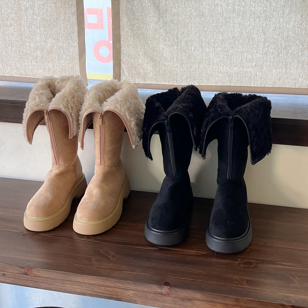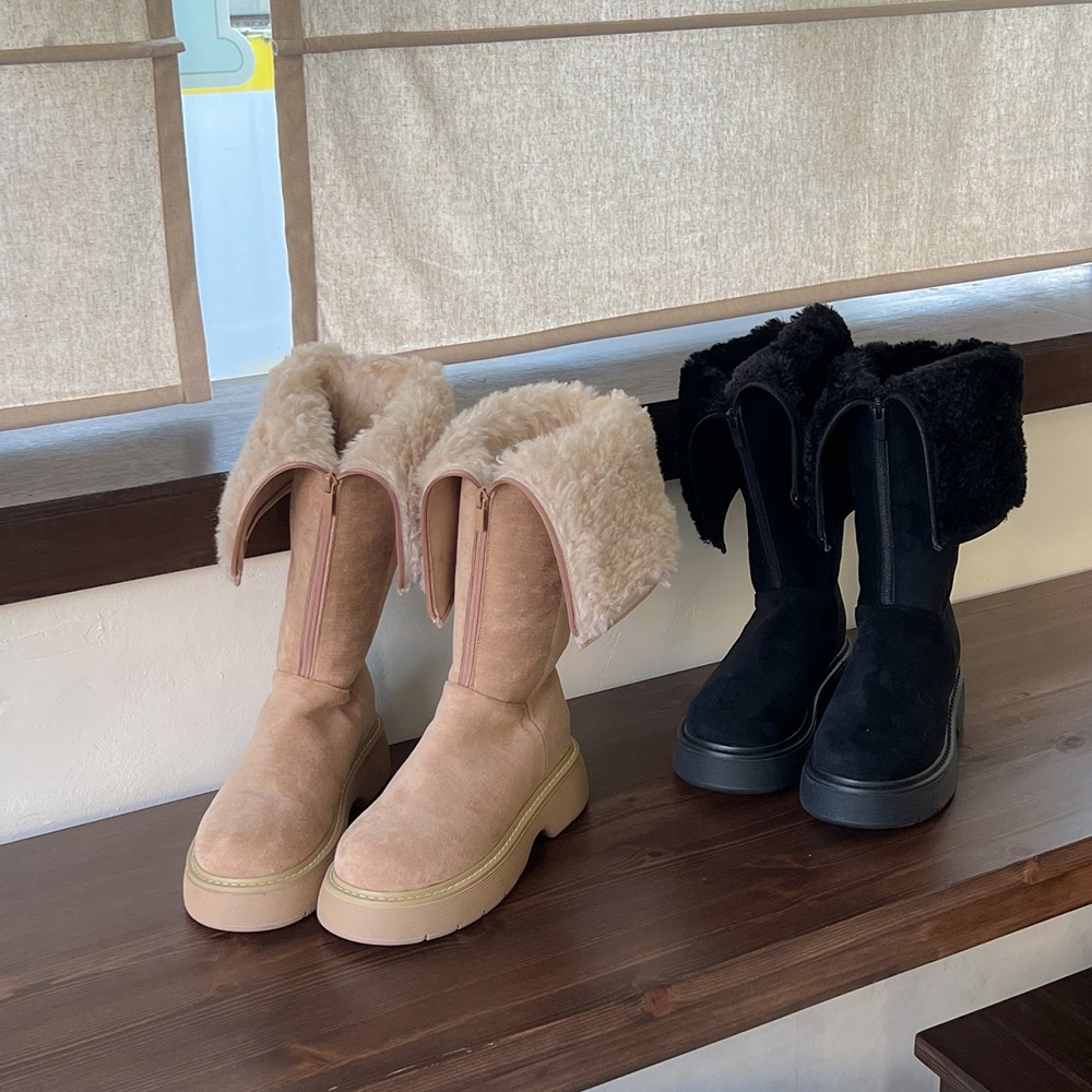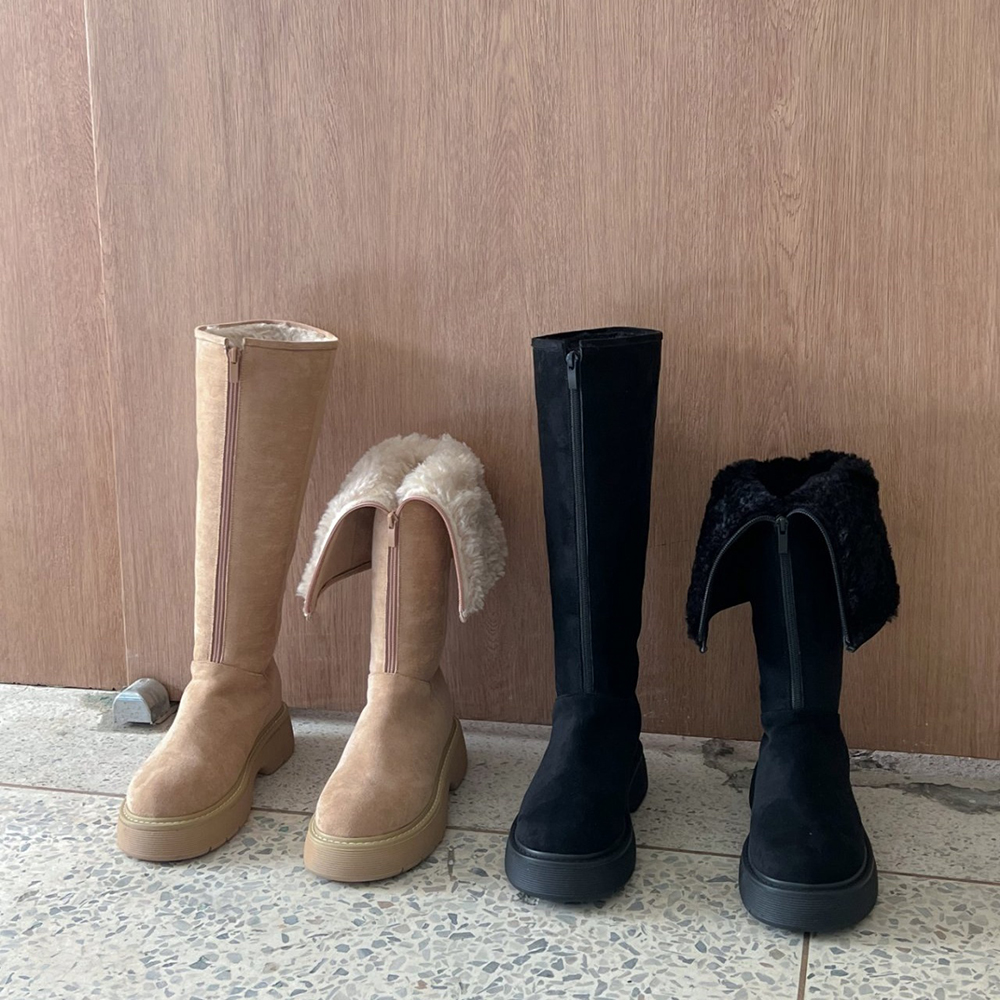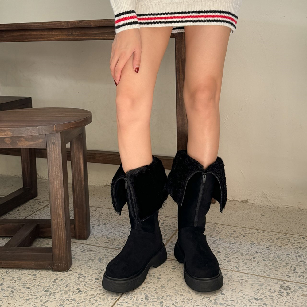 스웨이드 퍼안감 겨울 방한 퍼 털 지퍼여밈 미들힐 롱부츠 5cm