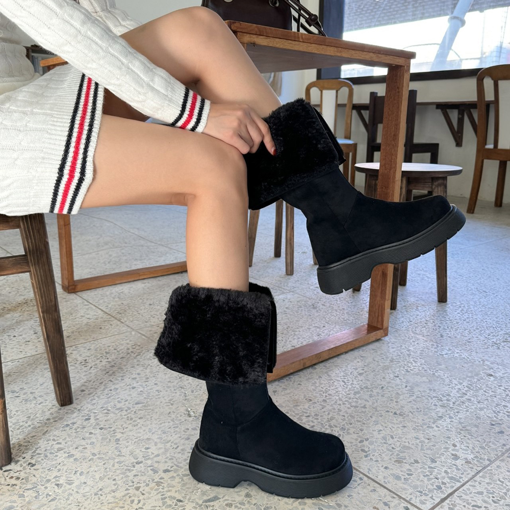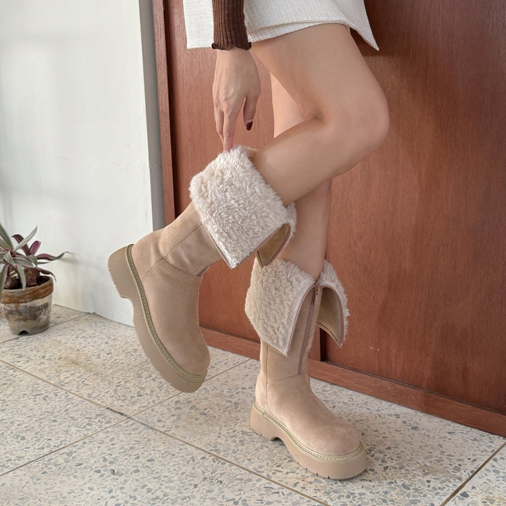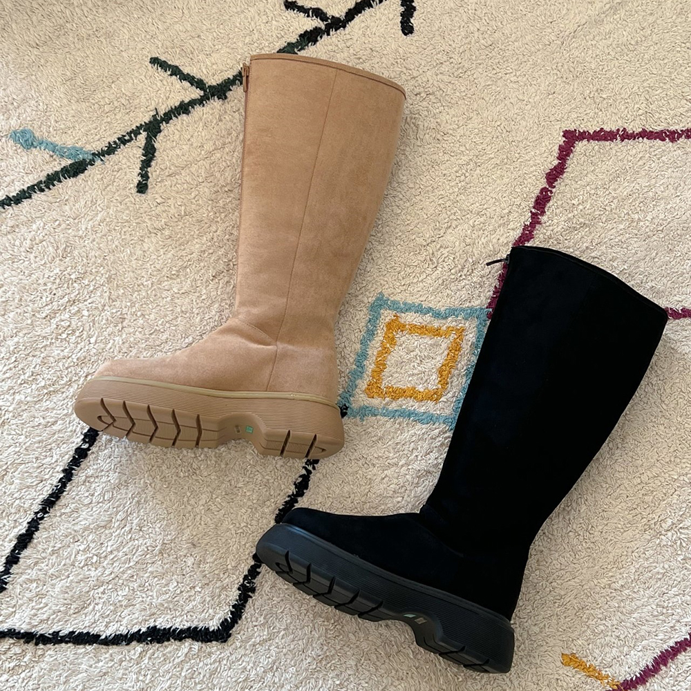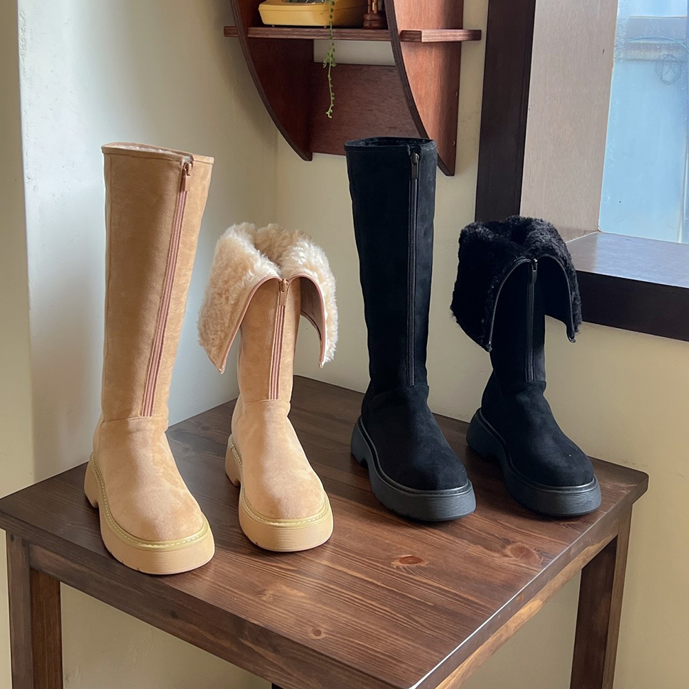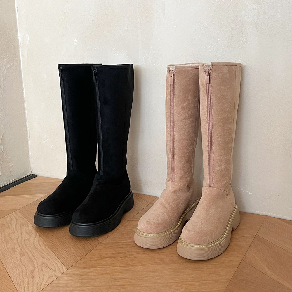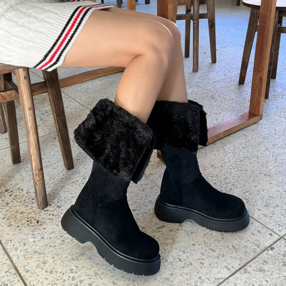 스웨이드 퍼안감 겨울 방한 퍼 털 지퍼여밈 미들힐 롱부츠 5cm