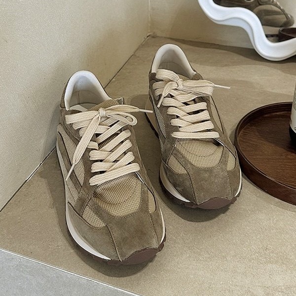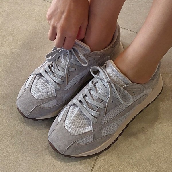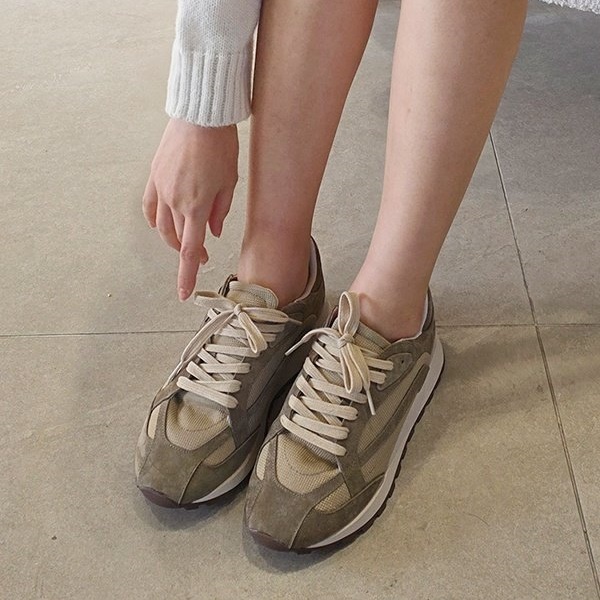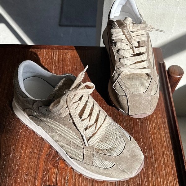 천연 소가죽 스웨이드 여성 발편한 쿠션 레이스업 스니커즈