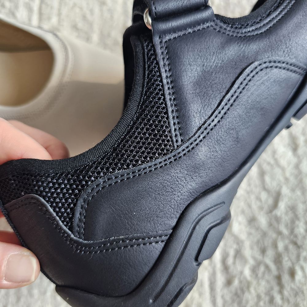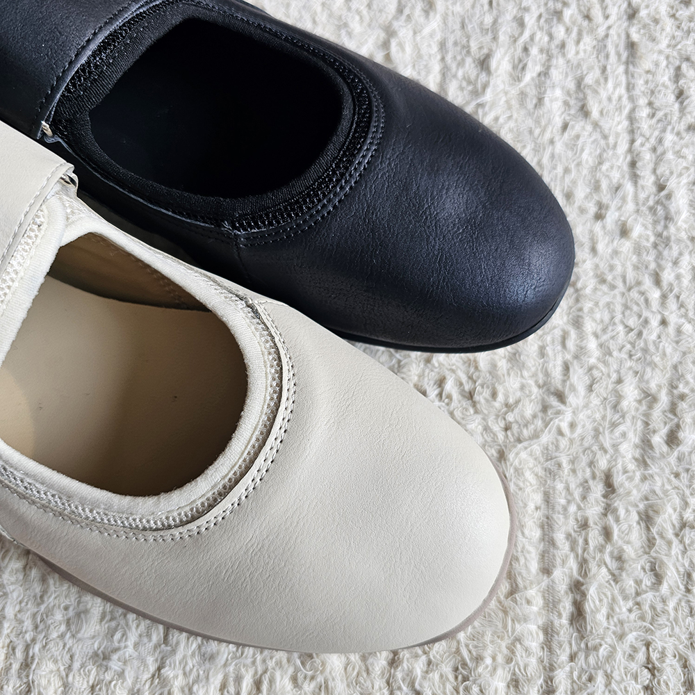 둥근 코 쉐입으로 하루 종일 신어도 발이 편안합니다.