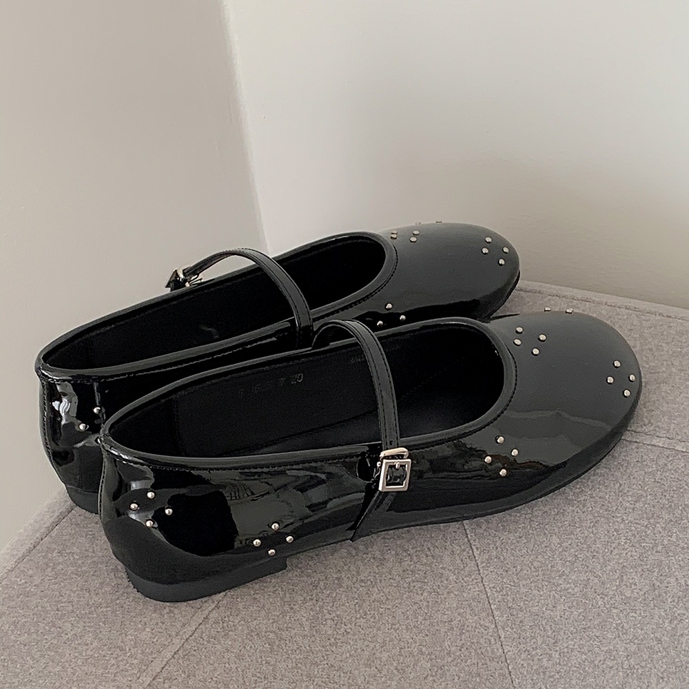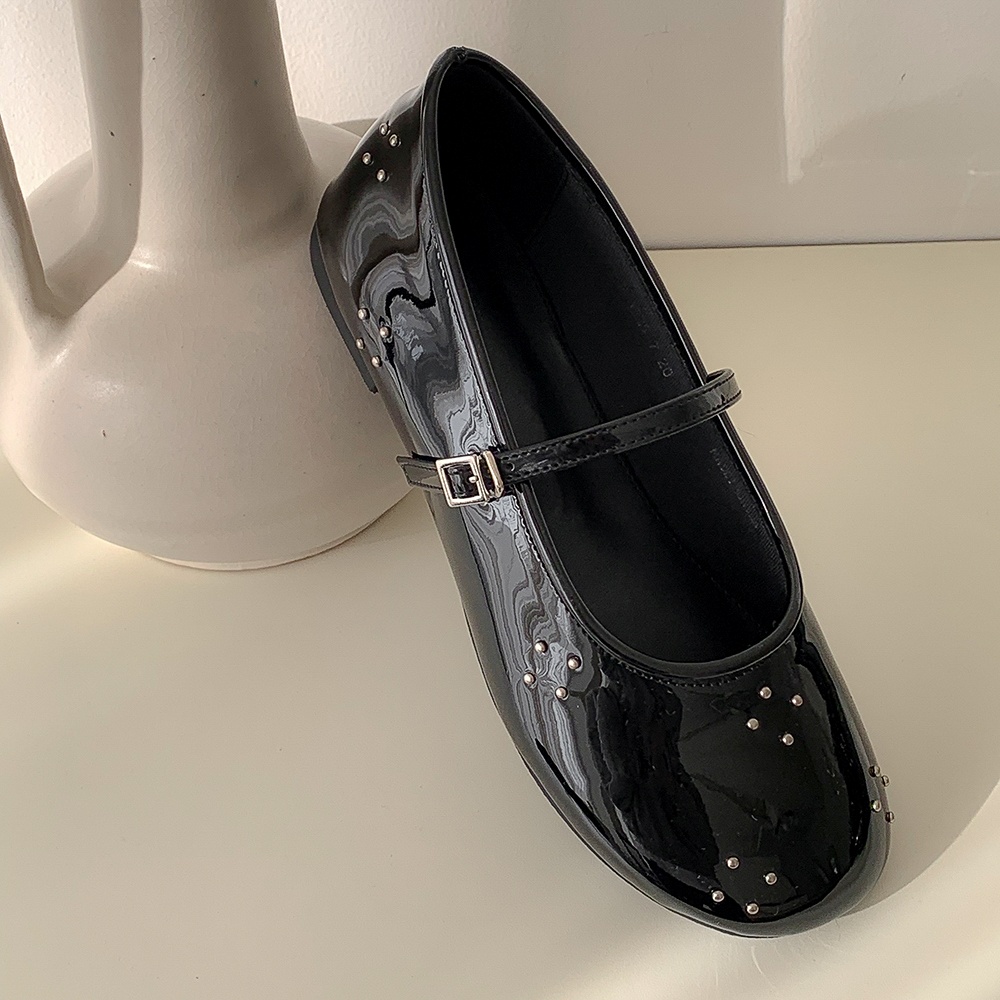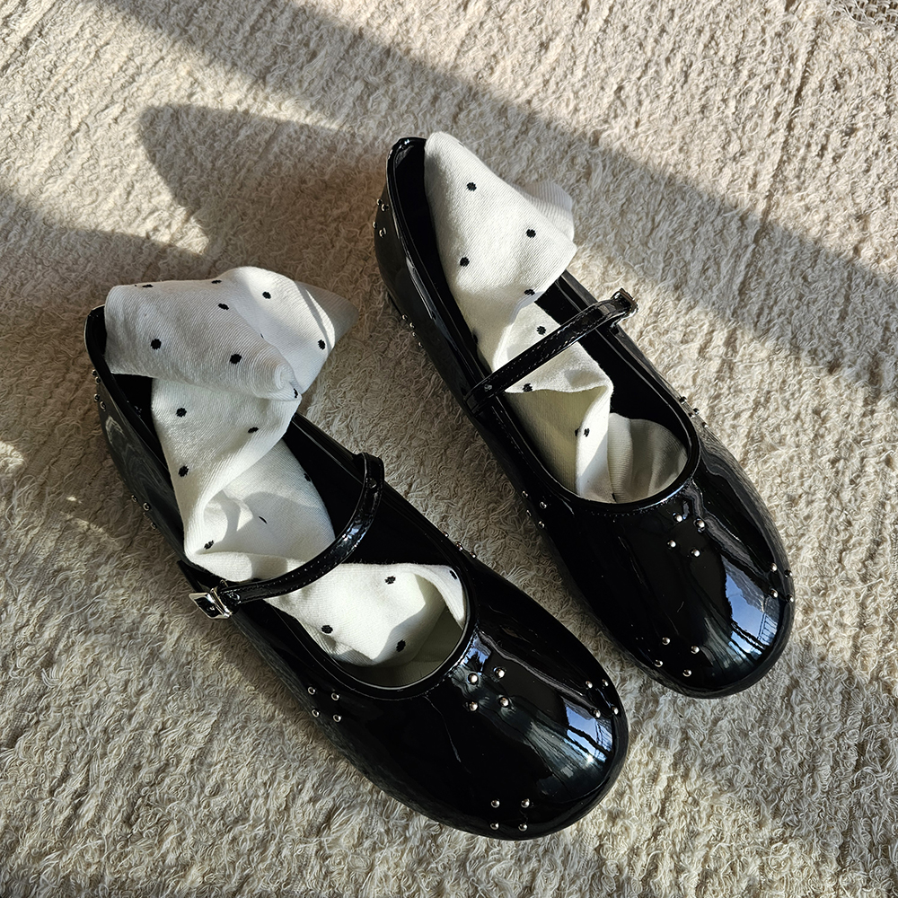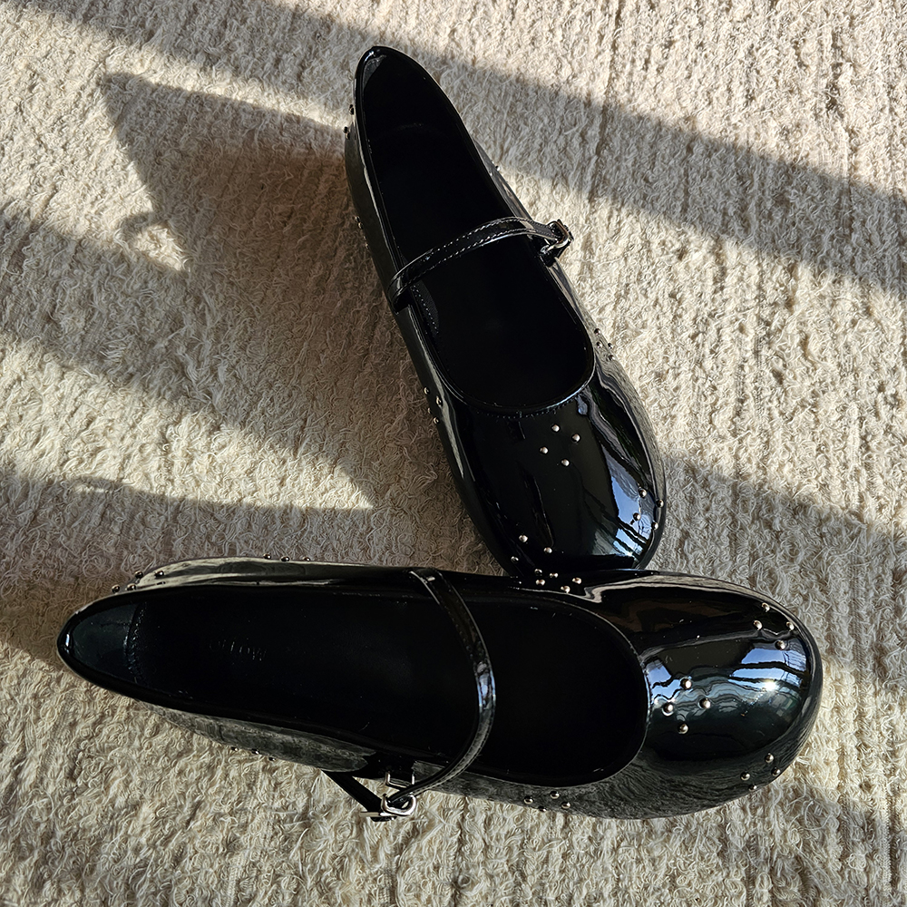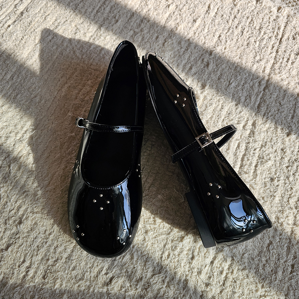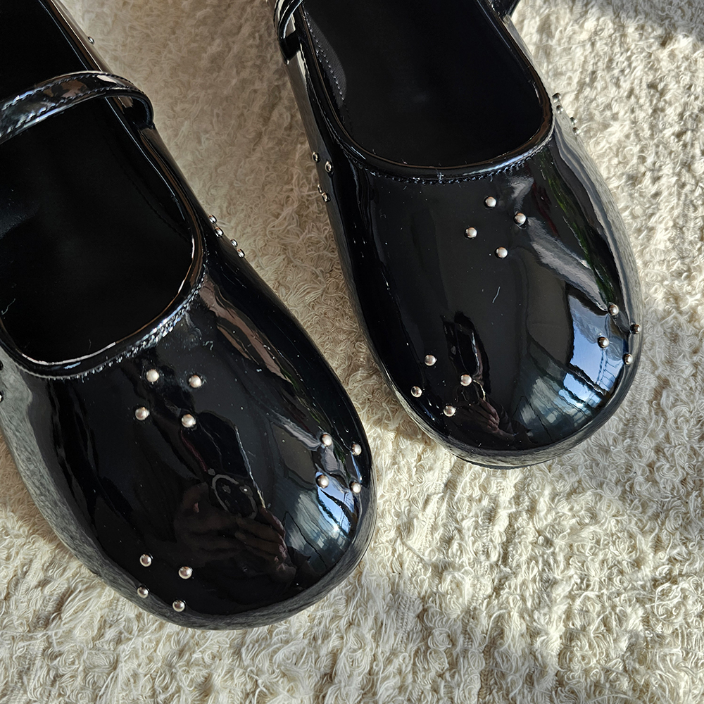 라운드토 에나멜 메리제인슈즈 징장식 샌들 데일리슈즈 플랫슈즈