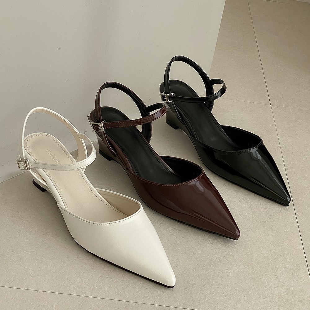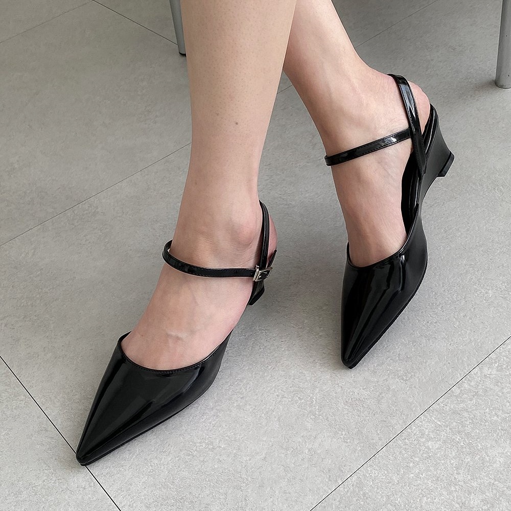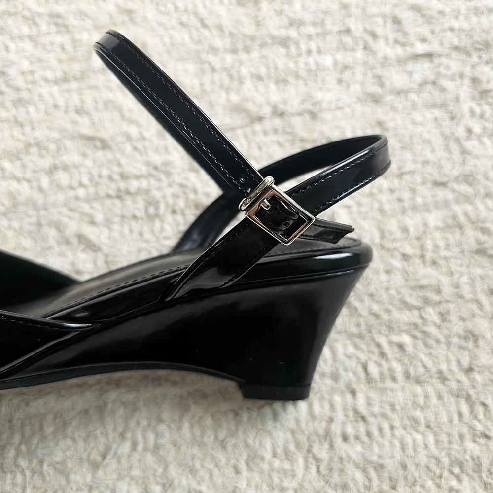 에나멜 스틸레토 미들굽 웨지샌들 5cm 오피스룩 면접용 슬링백힐