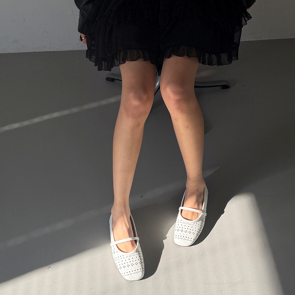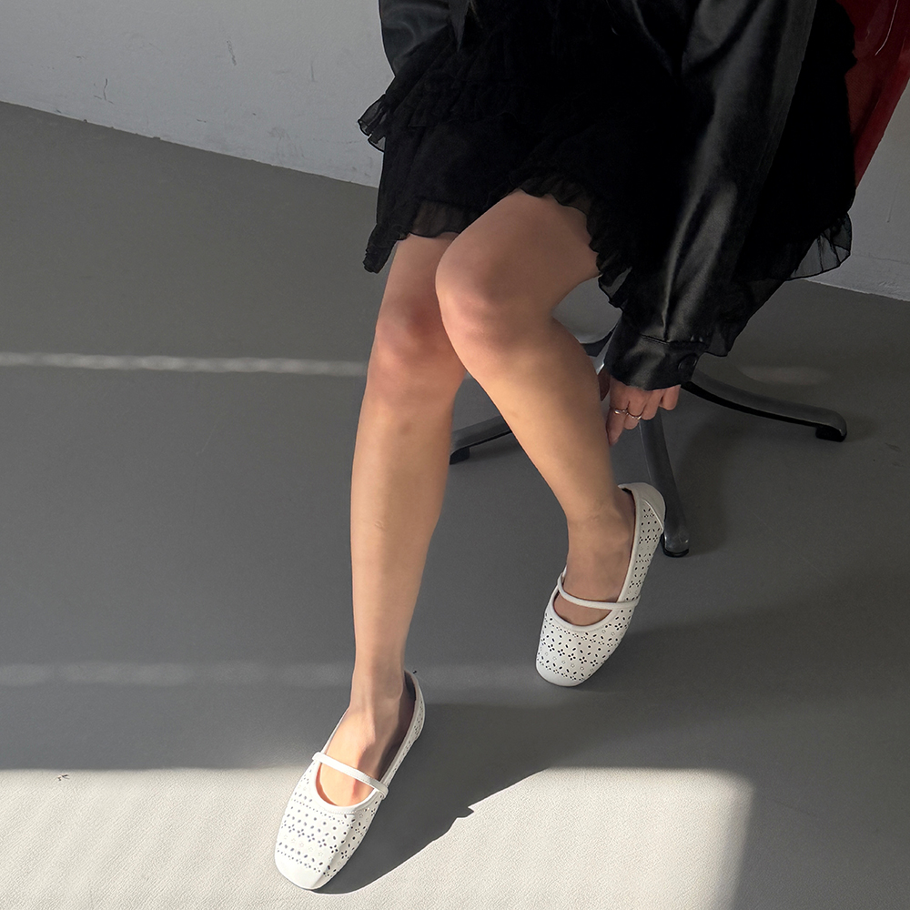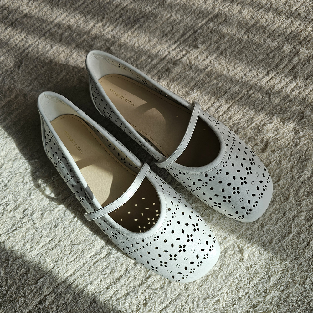 섬세한 플라워 펀칭 디테일이 돋보이는 페미닌한