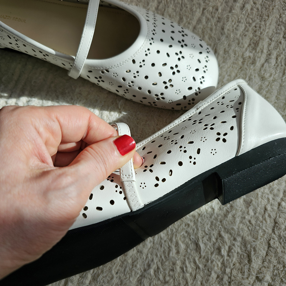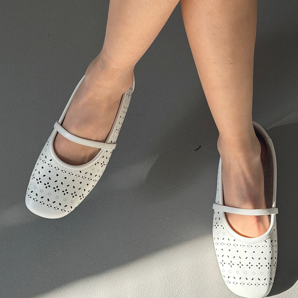 플라워 펀칭 꽃 모양의 정교한 펀칭 패턴이 발등 전체에