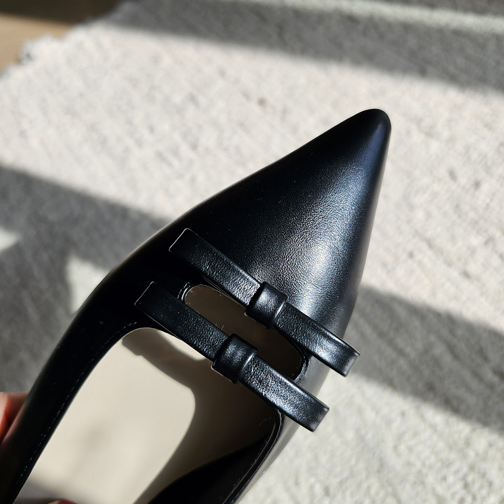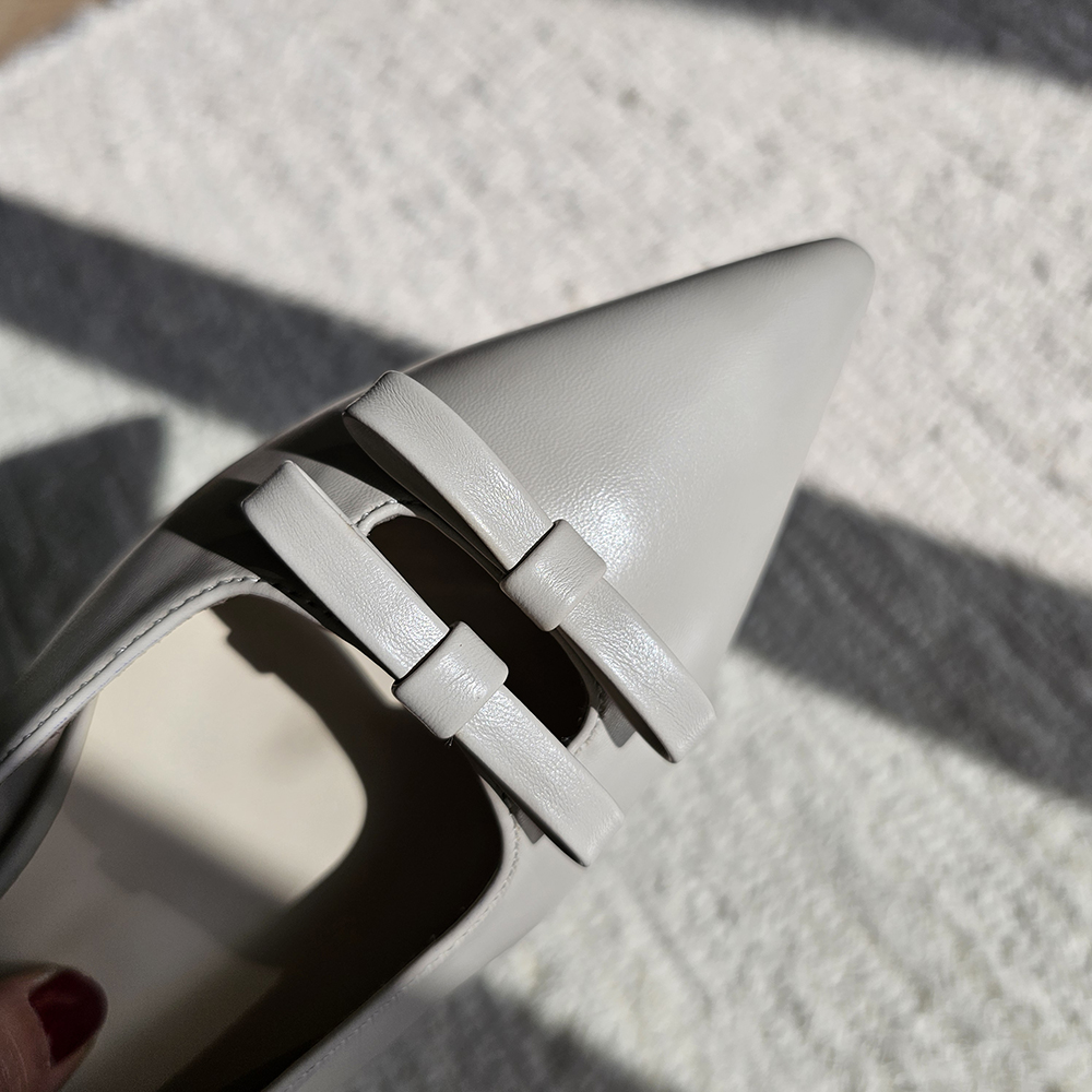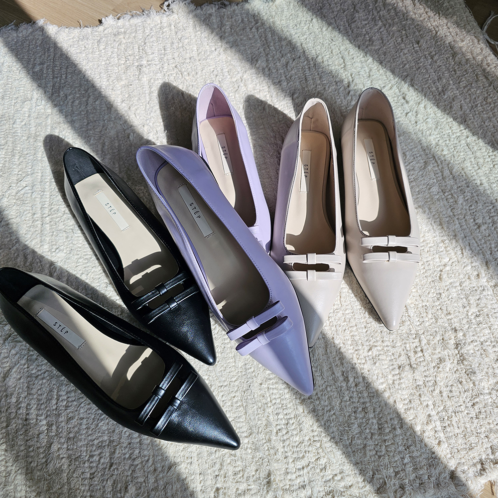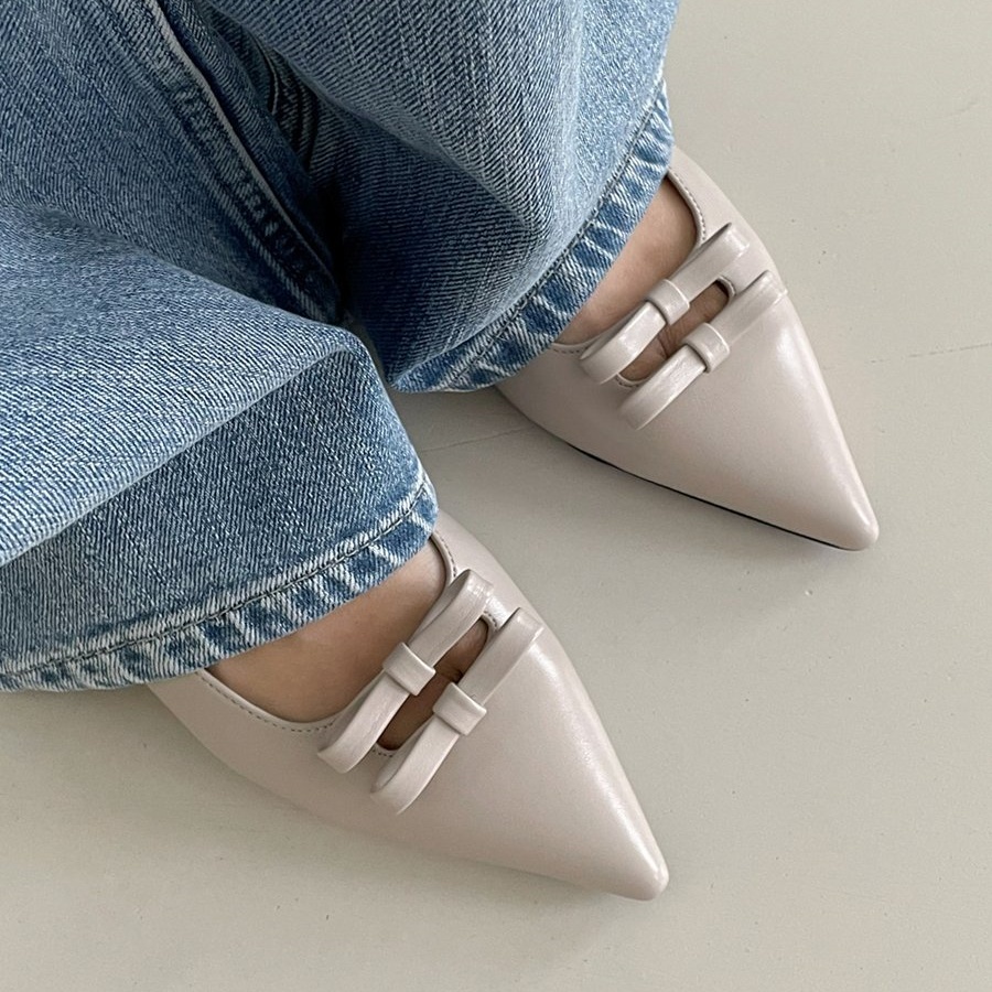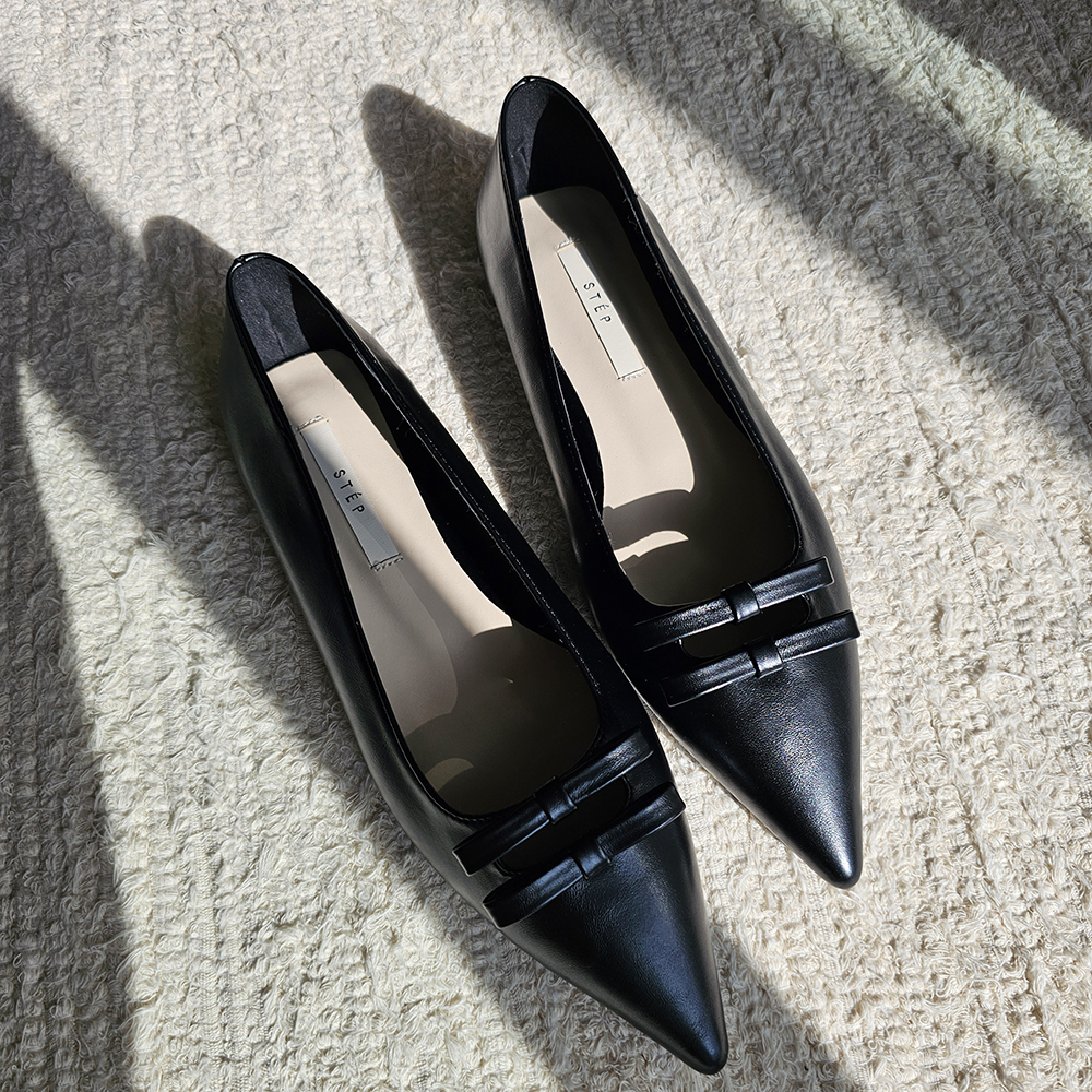 세련된 포인티드 토와 유니크한 더블 리본의 조화
