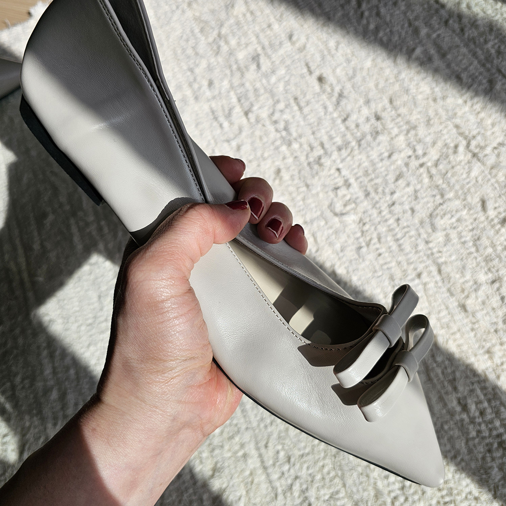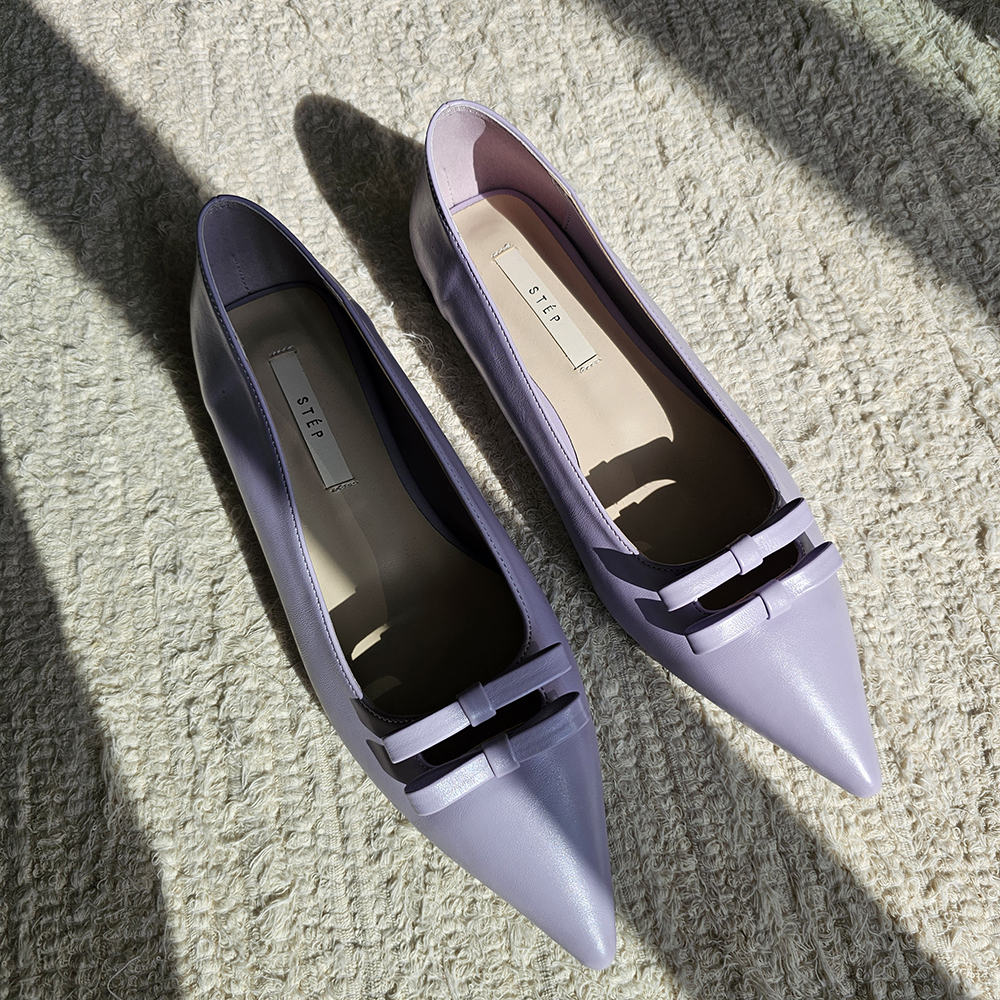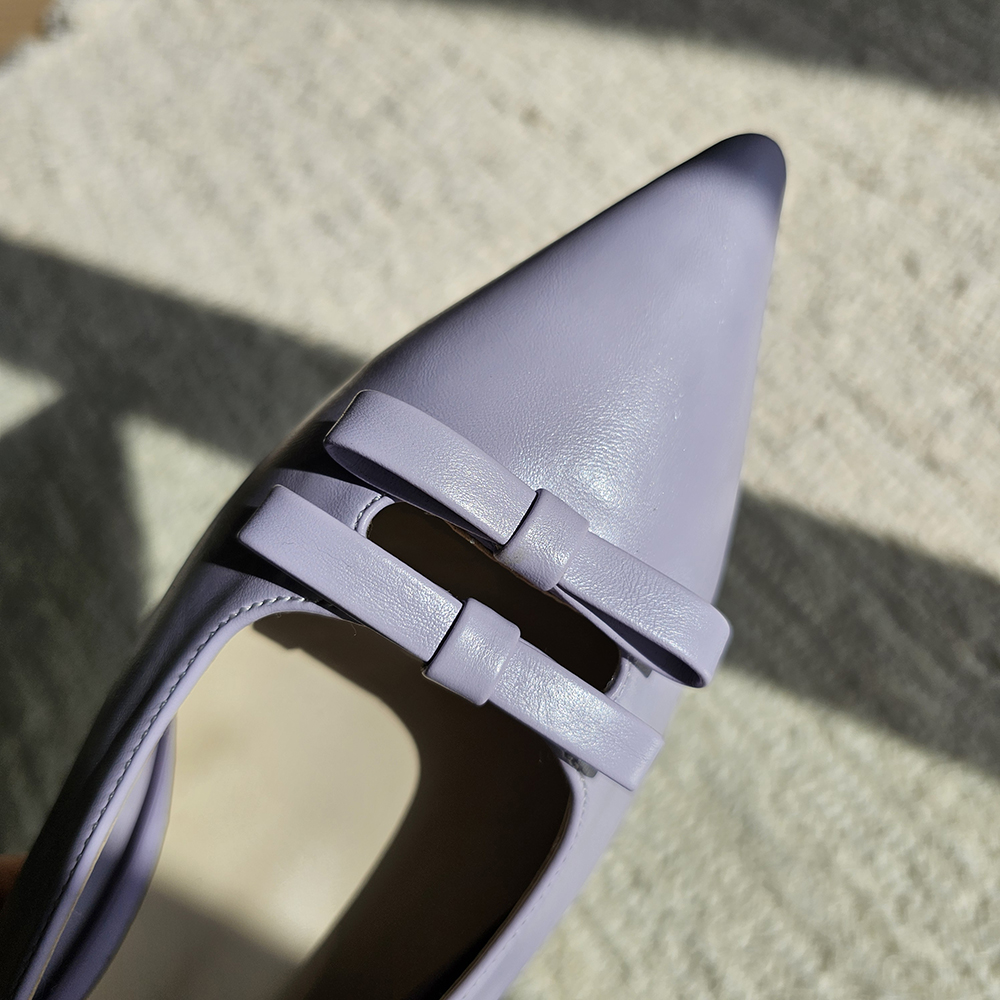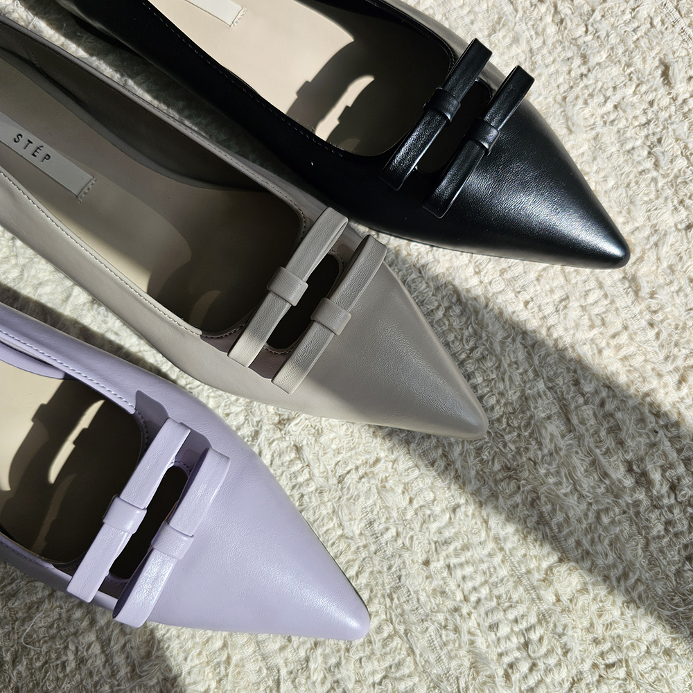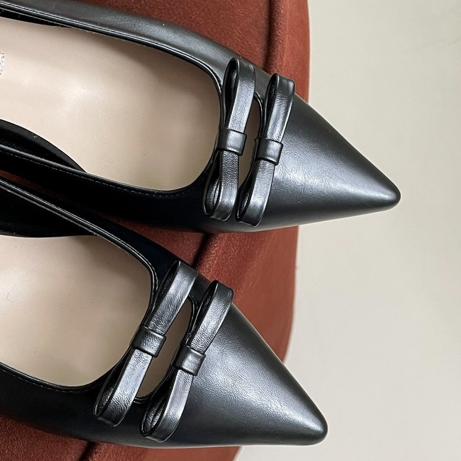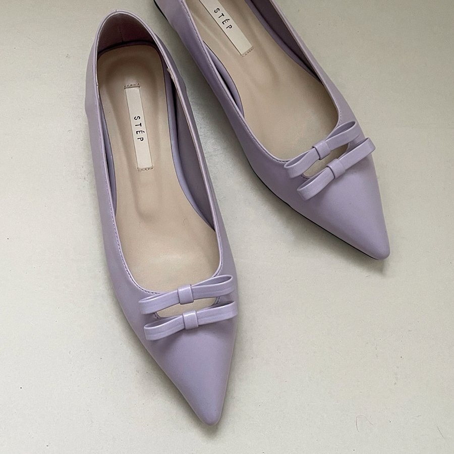 세련된 포인티드 토와 유니크한 더블 리본의 조화