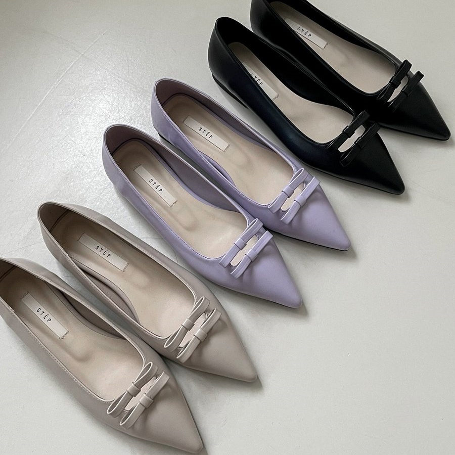 더블 리본 장식 입체적인 리본 포인트가 발을