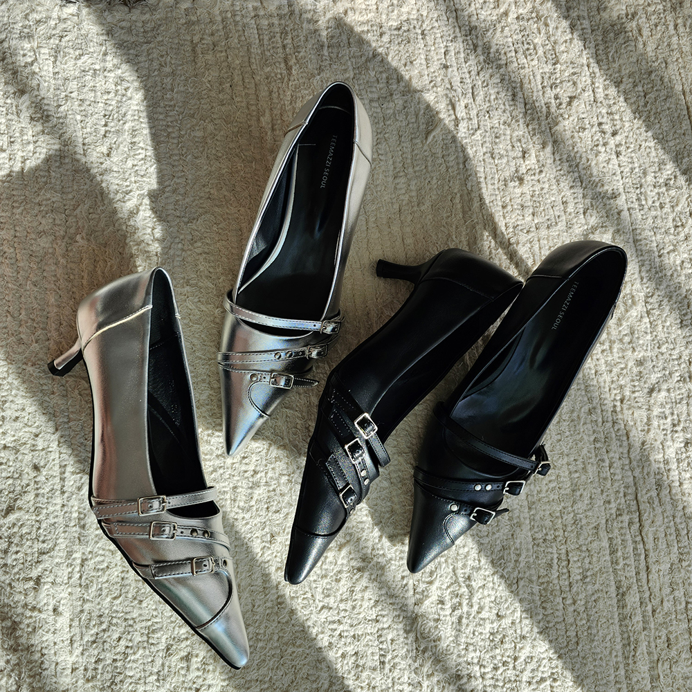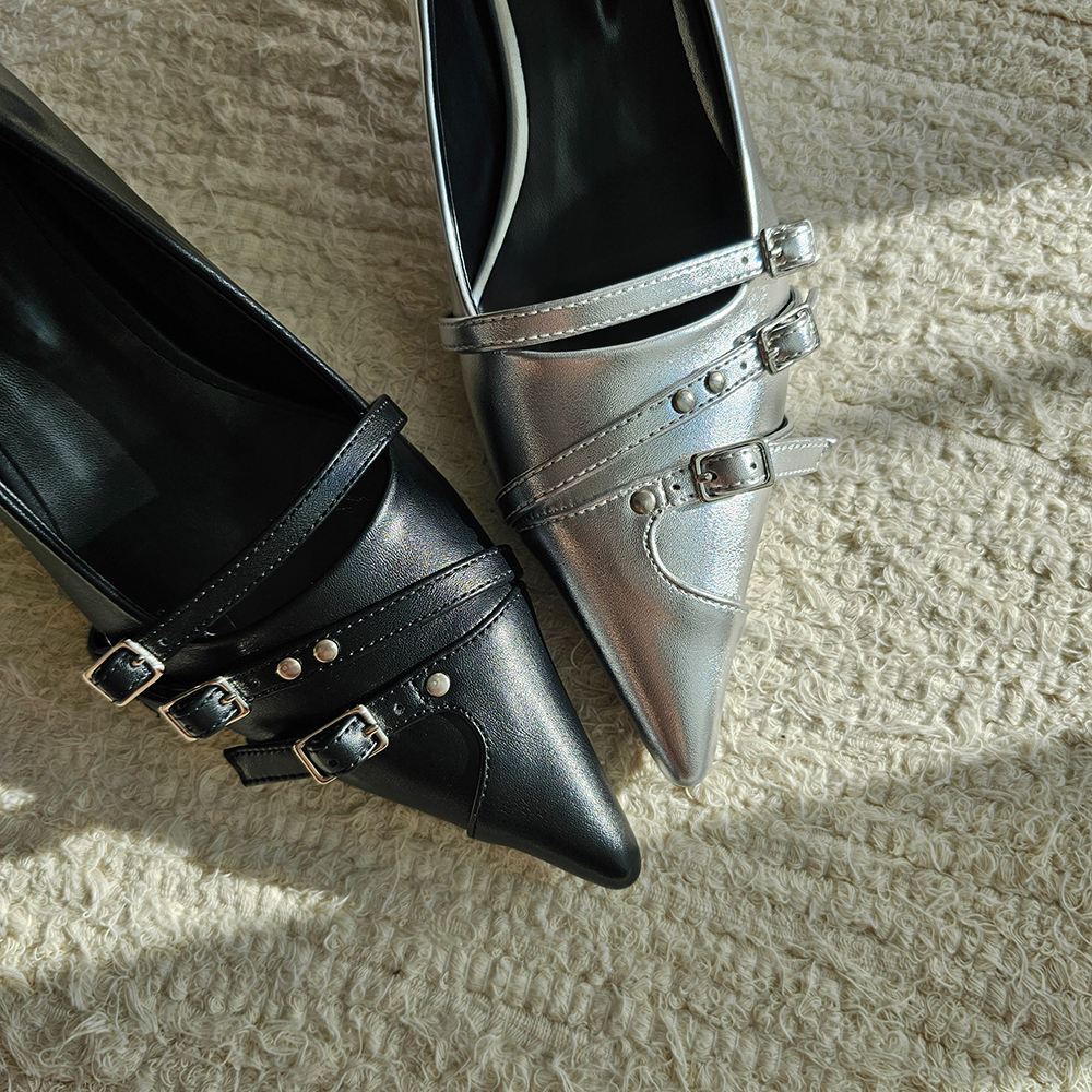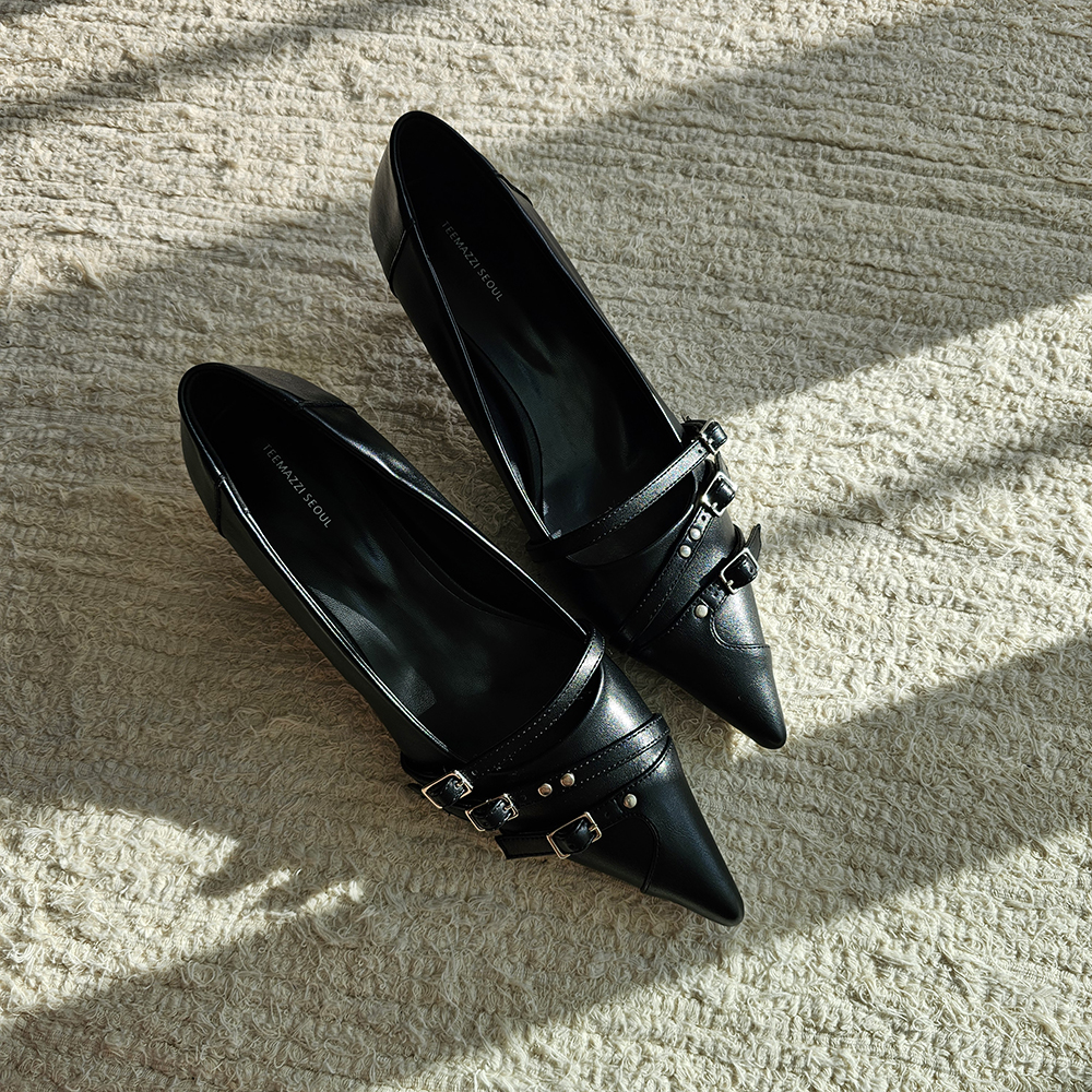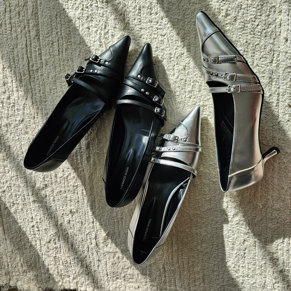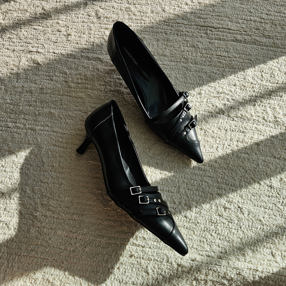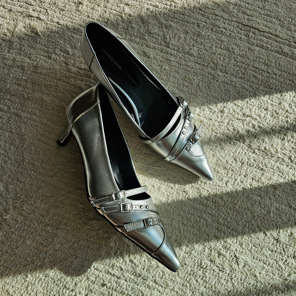 감각적인 트리플 버클 디테일. 안정적인 5cm 미들힐로