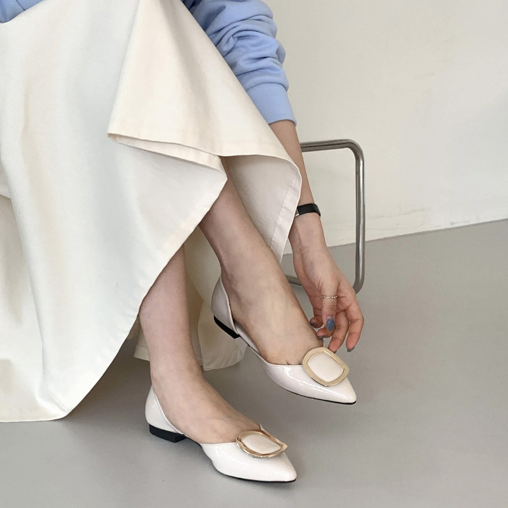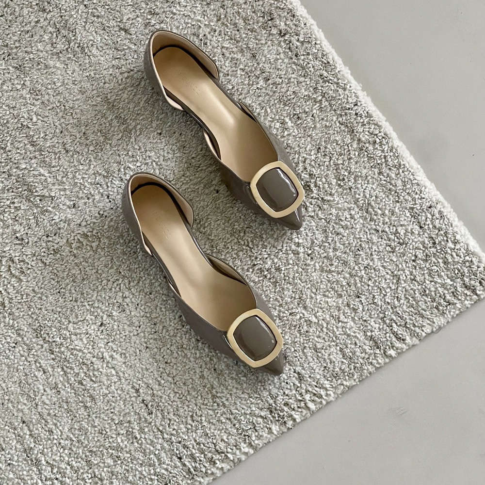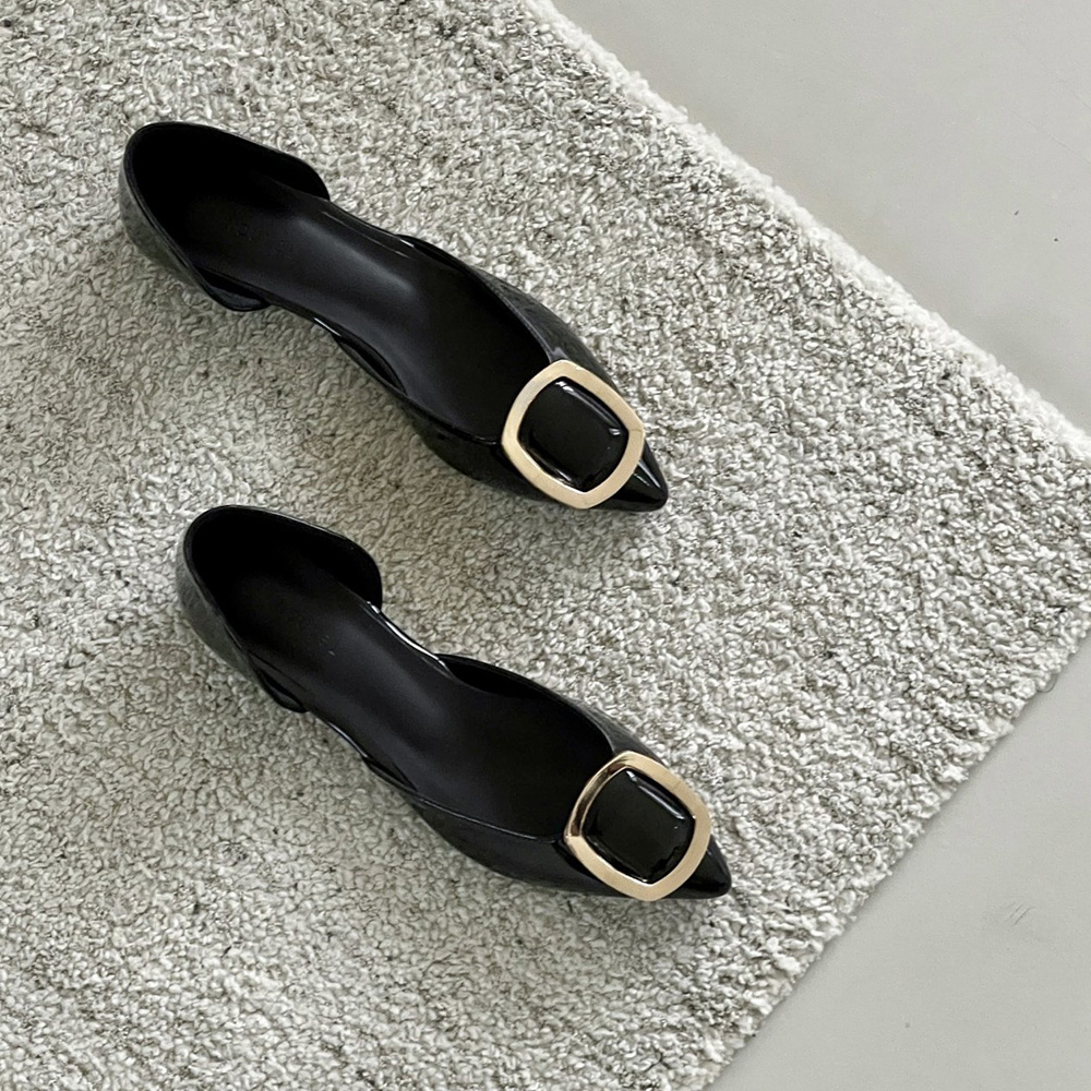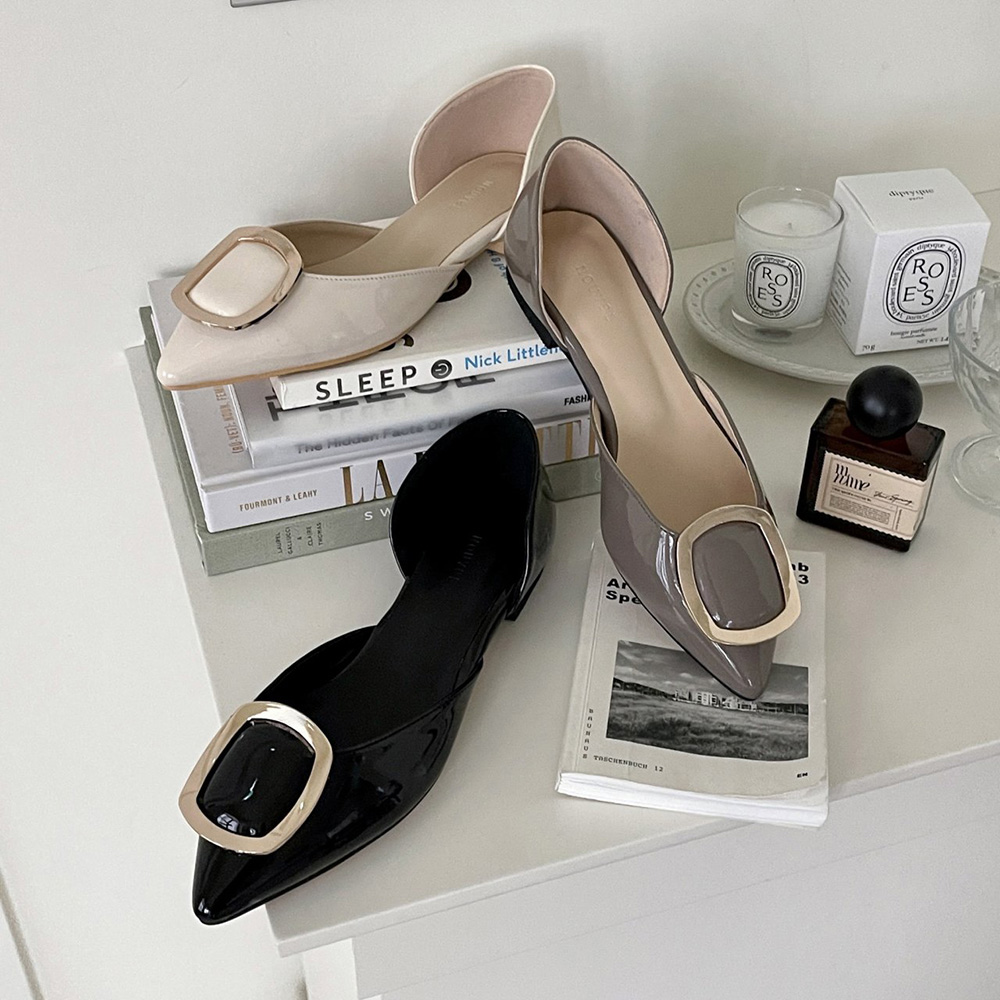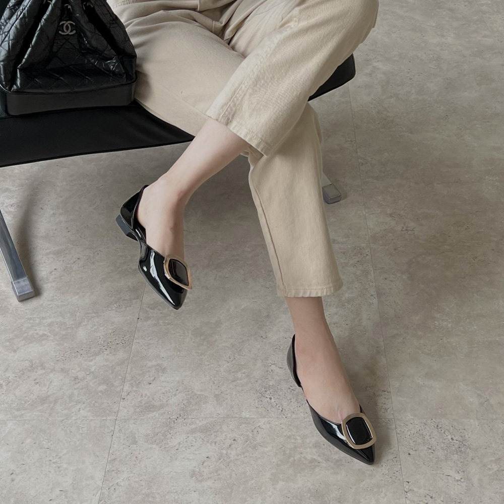 세련된 무드의 스틸레토 플랫 라인에 골드 사각 버클로