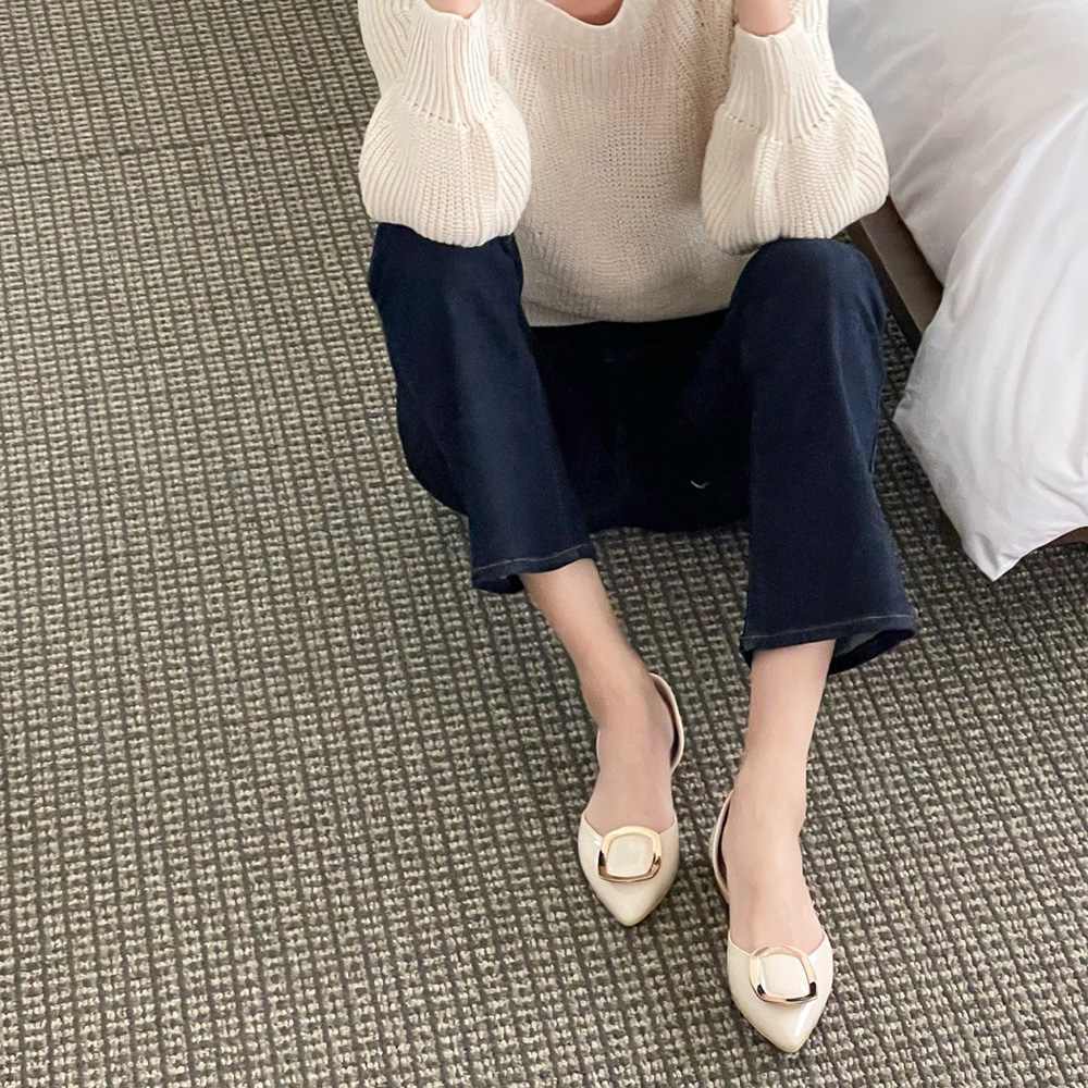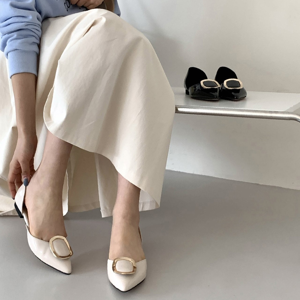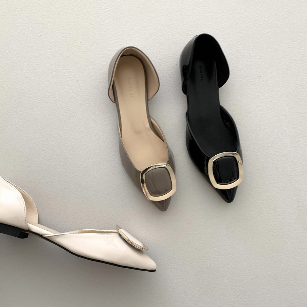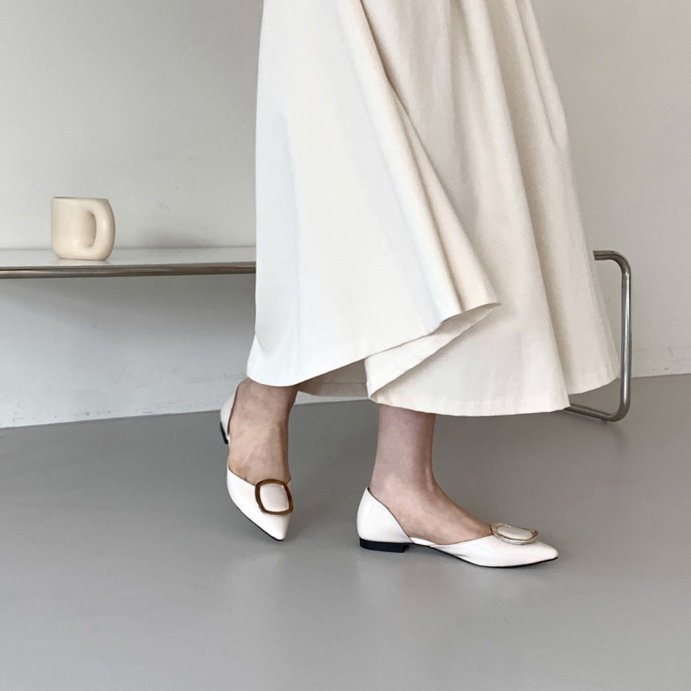 세련된 무드의 스틸레토 플랫 라인에 골드 사각 버클로