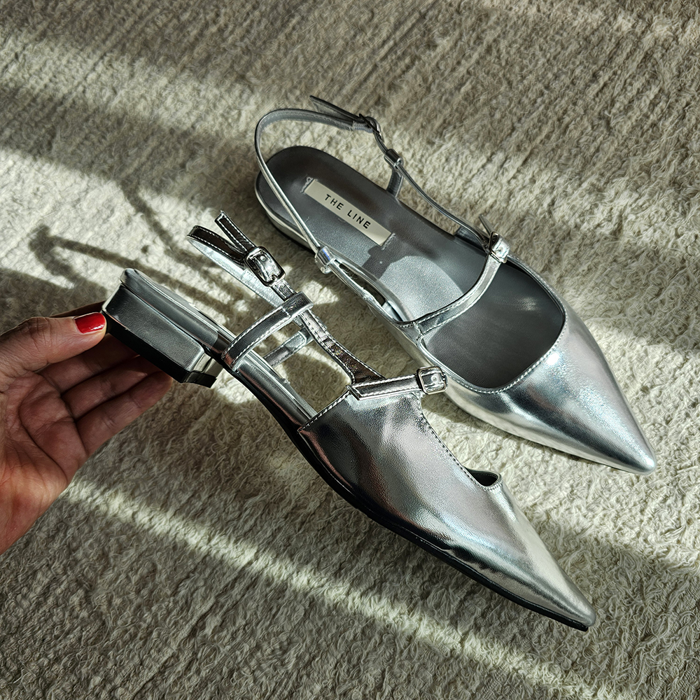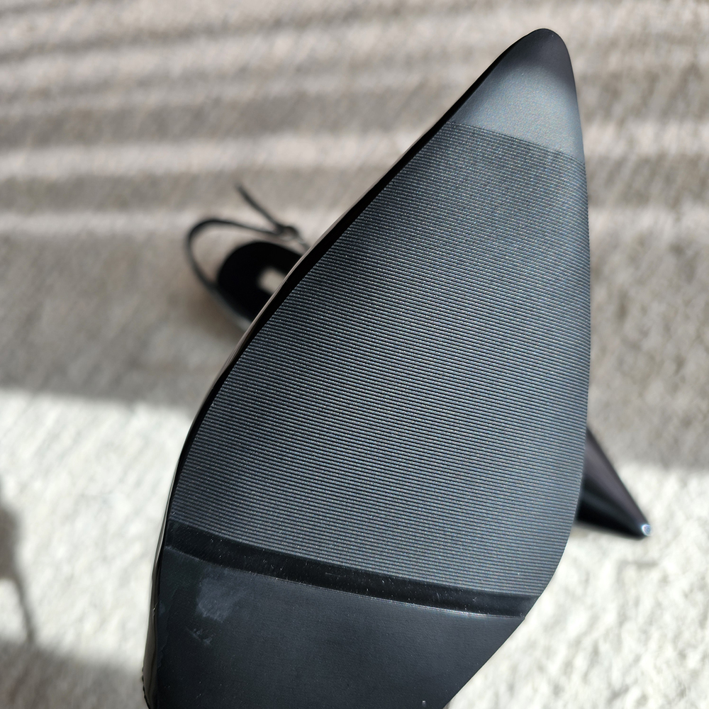 트렌디한 스틸레토 쉐입이 발끝을 슬림하게 연출하며