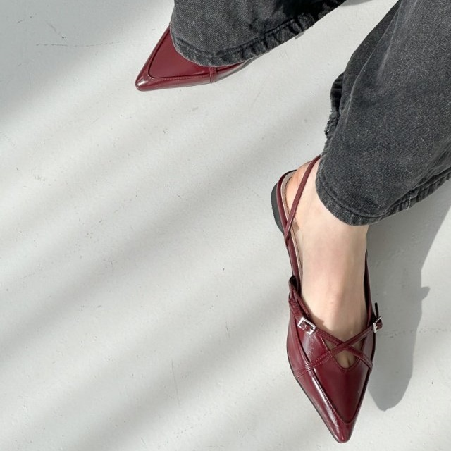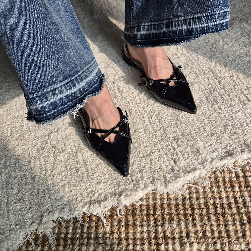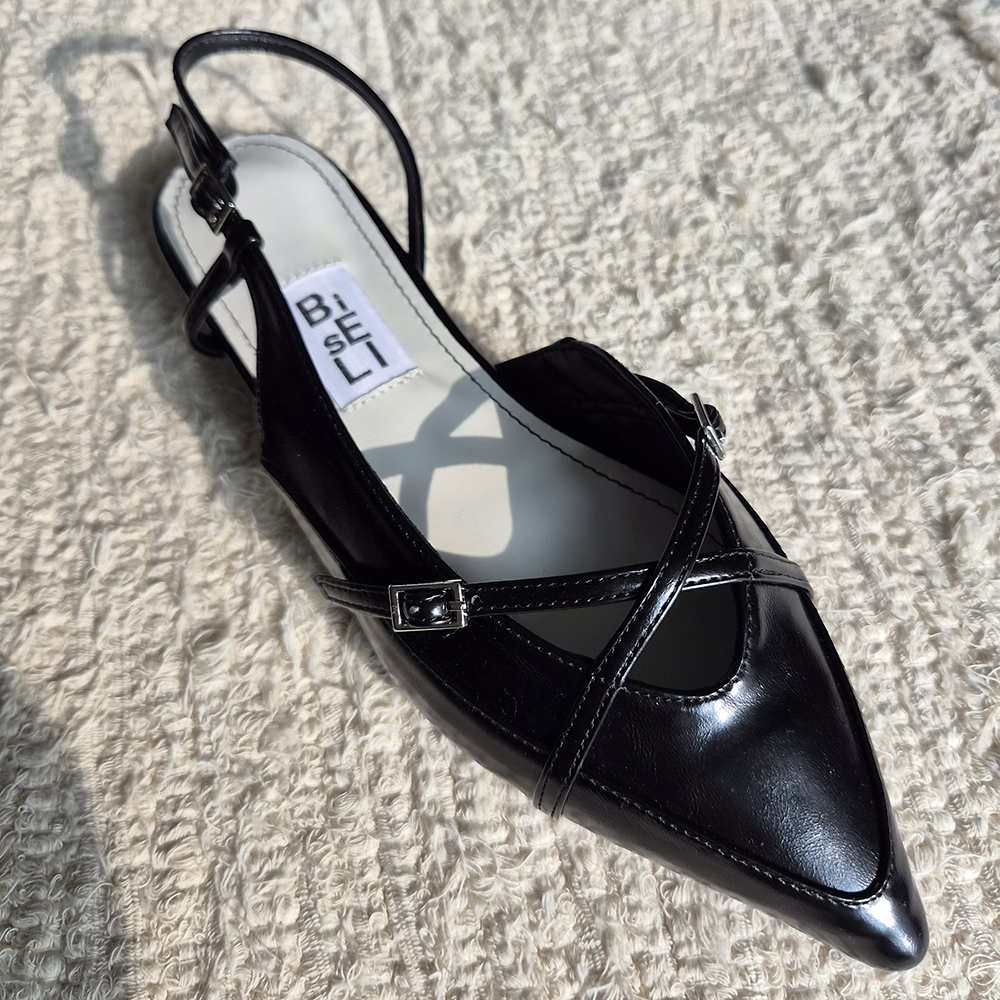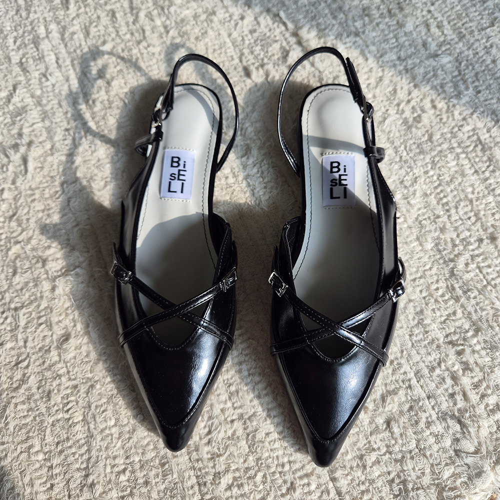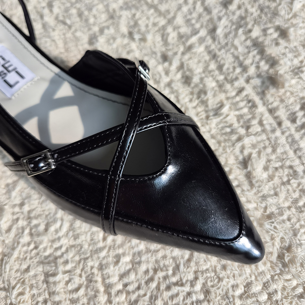 스틸레토 슬링백 플랫 발볼넓은 사람도 편한 1cm 낮은굽 스트랩
