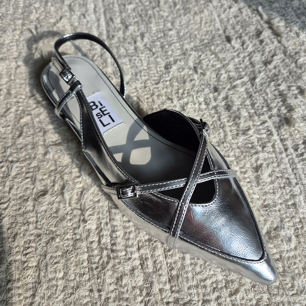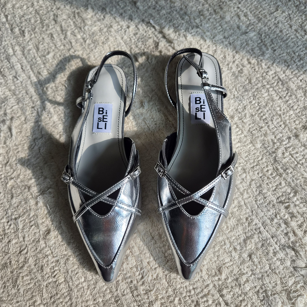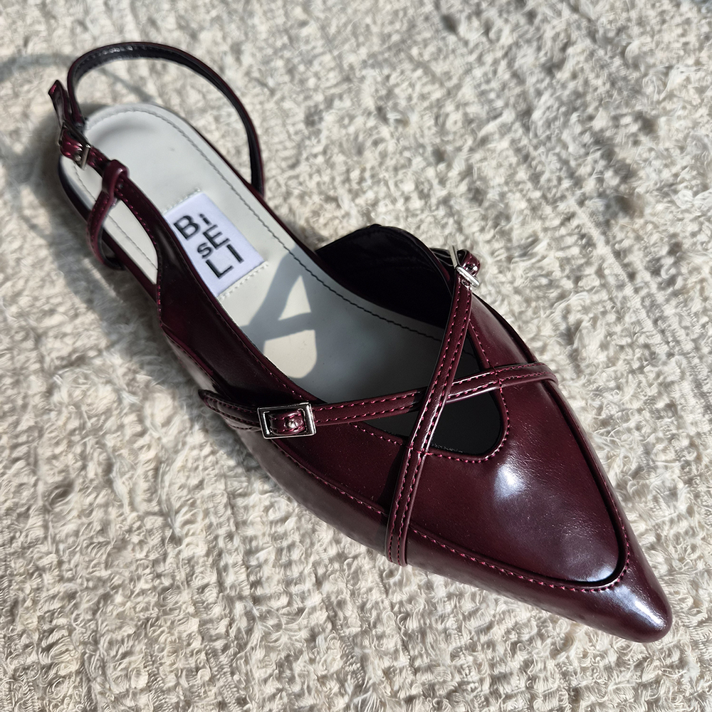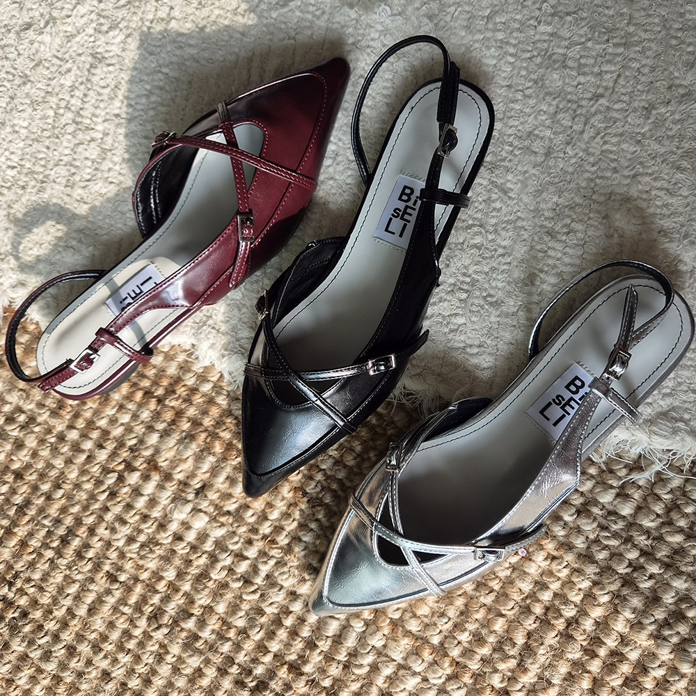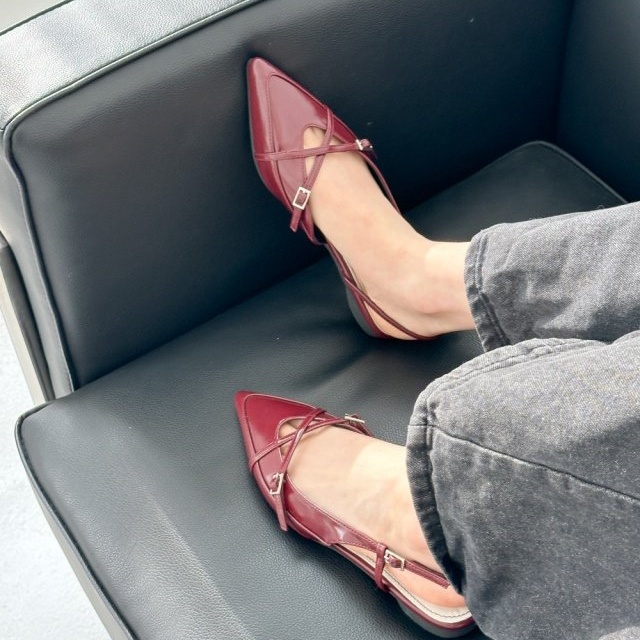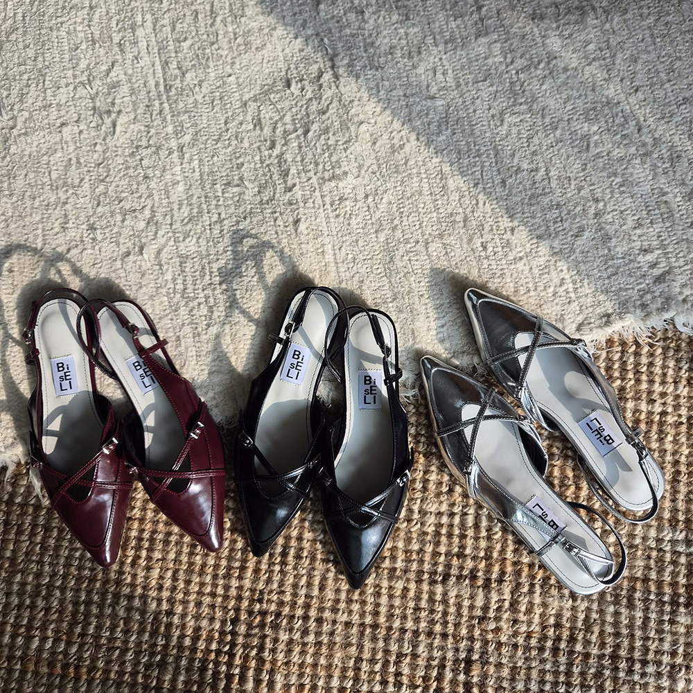 스틸레토 슬링백 플랫 발볼넓은 사람도 편한 1cm 낮은굽 스트랩