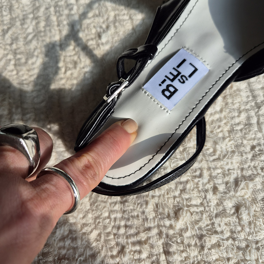완성한 슬링백 플랫입니다. 스틸레토는 불편하다는