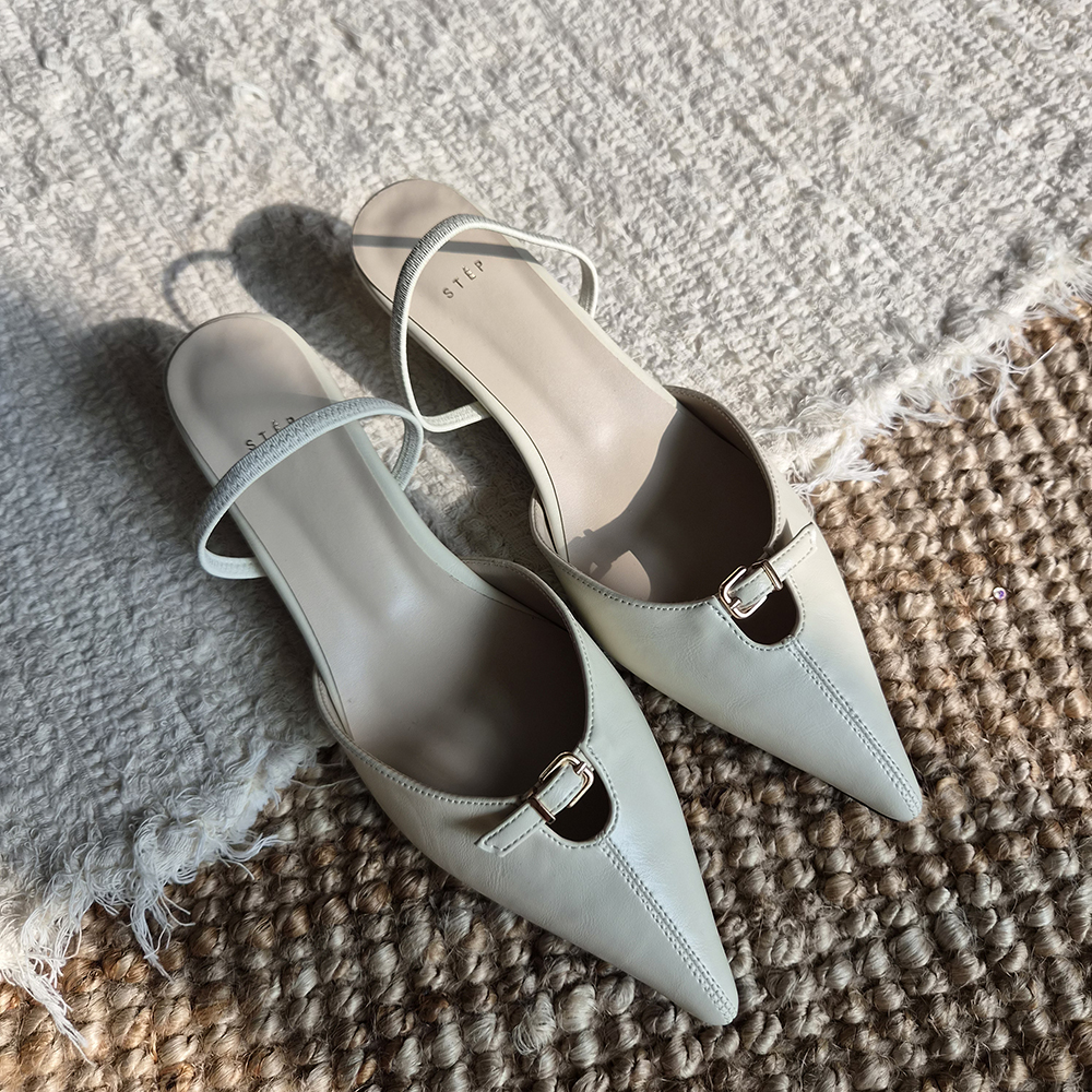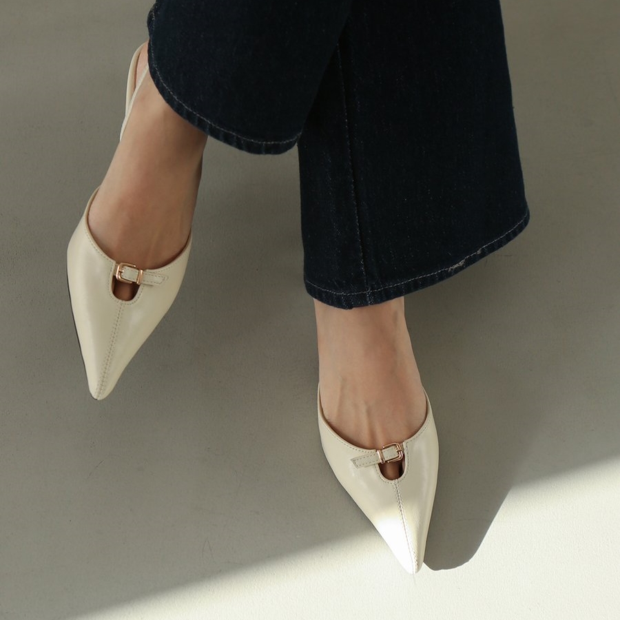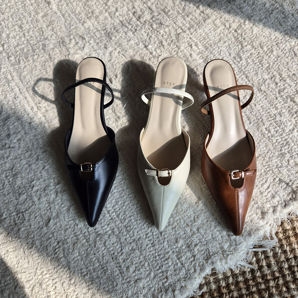 앞코와 발등을 잇는 벨트 스트랩 디테일이 고급스러운 포인트를