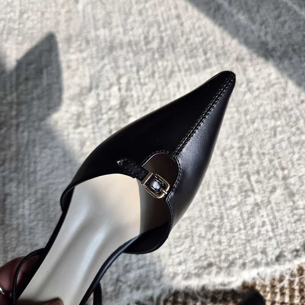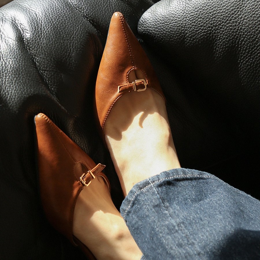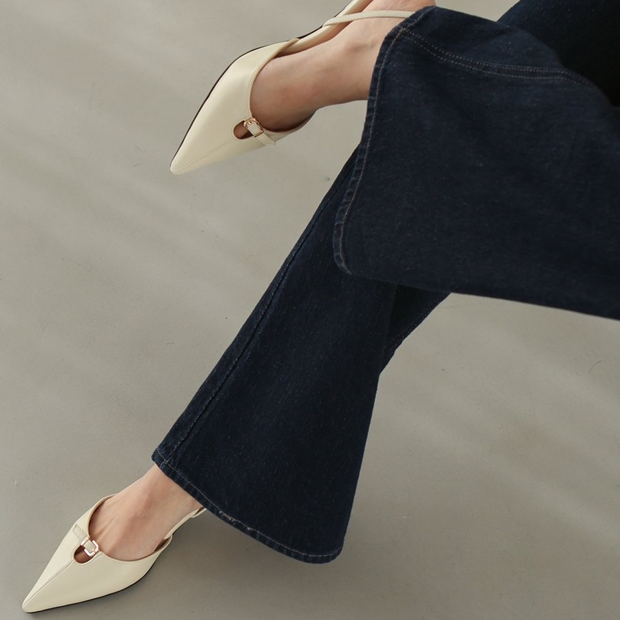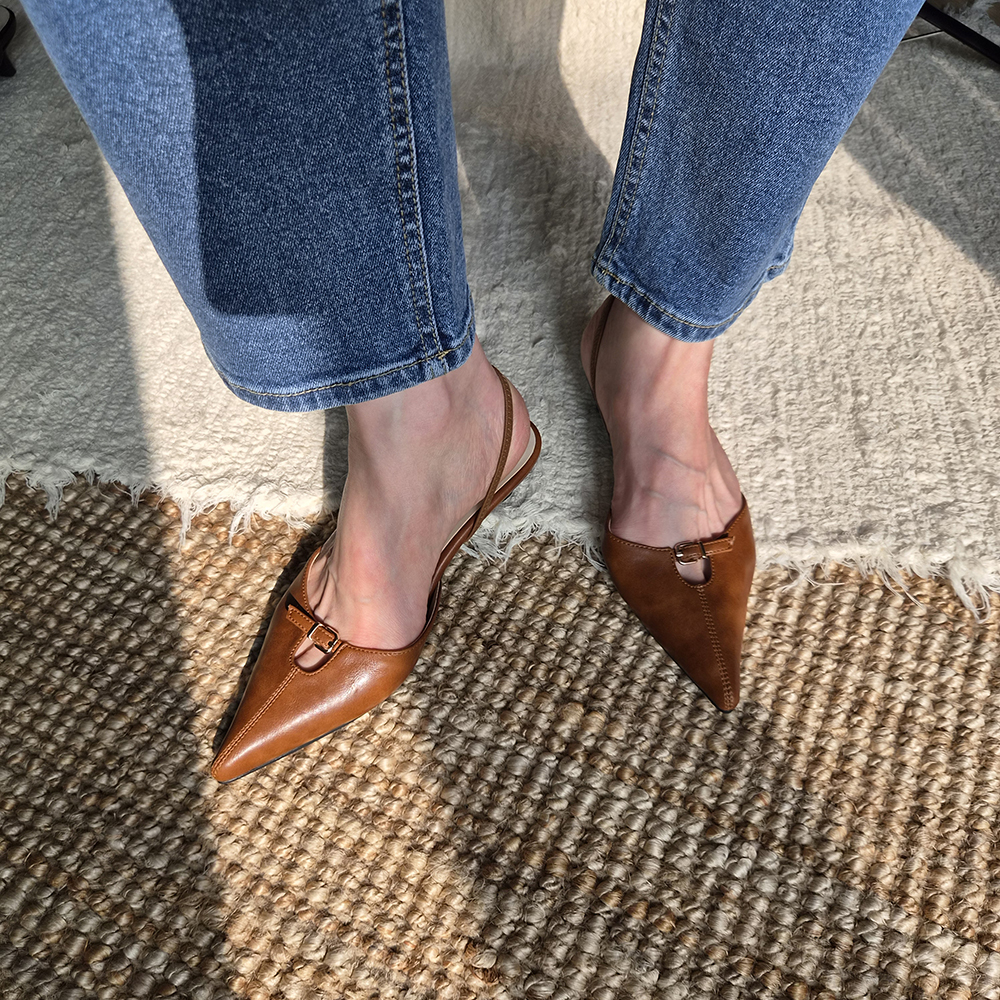 앞코와 발등을 잇는 벨트 스트랩 디테일이 고급스러운 포인트를
