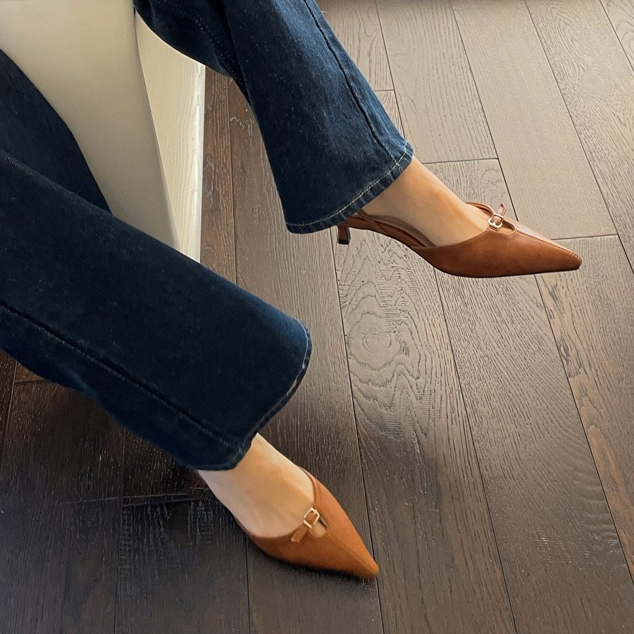 미들굽 슬링백 5cm 스틸레토힐 밴딩 스트랩 발편한 벨트 구두
