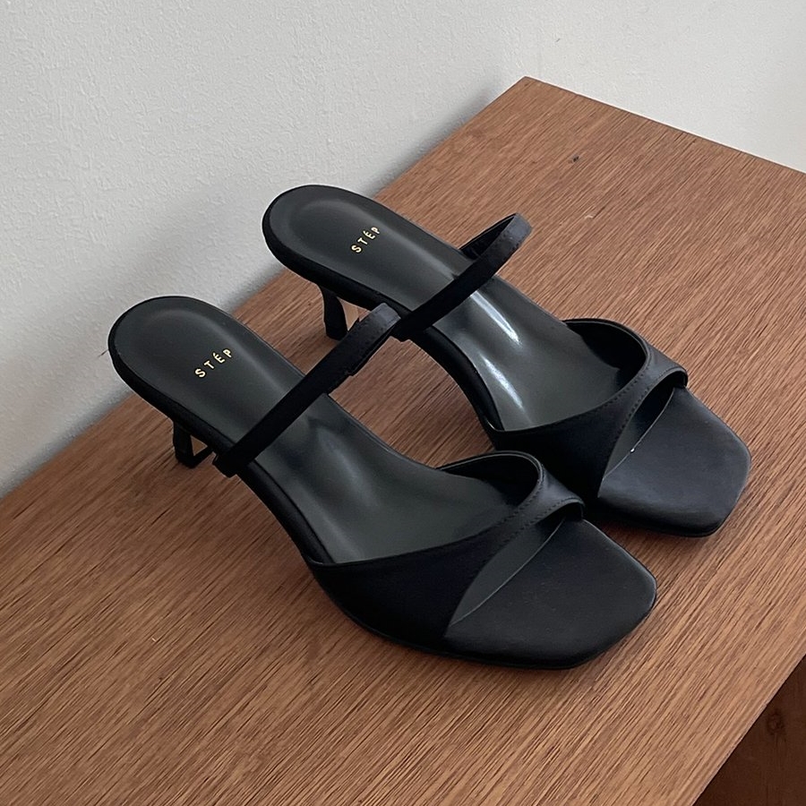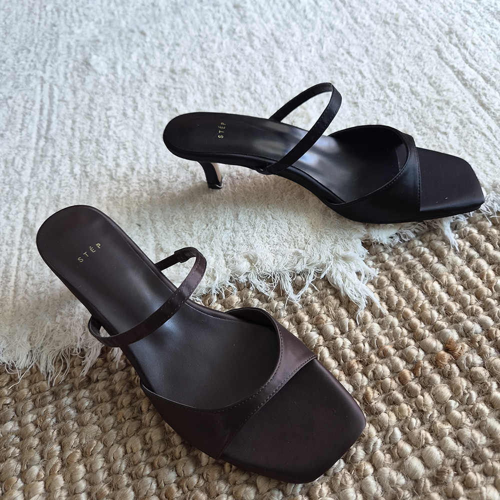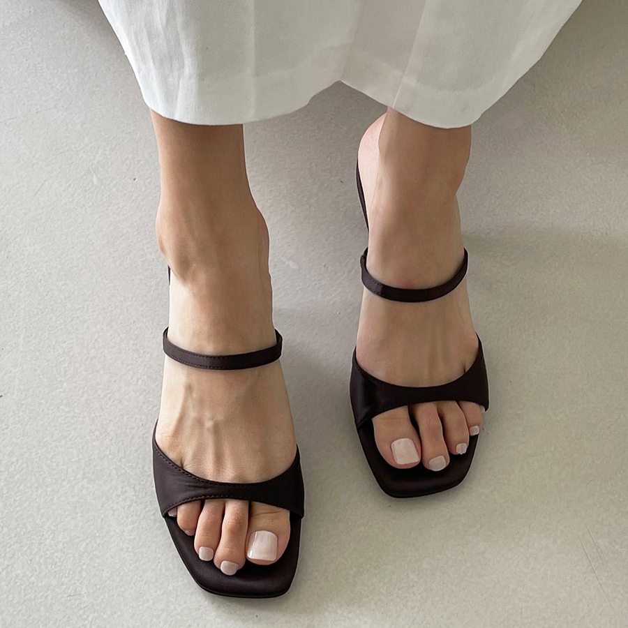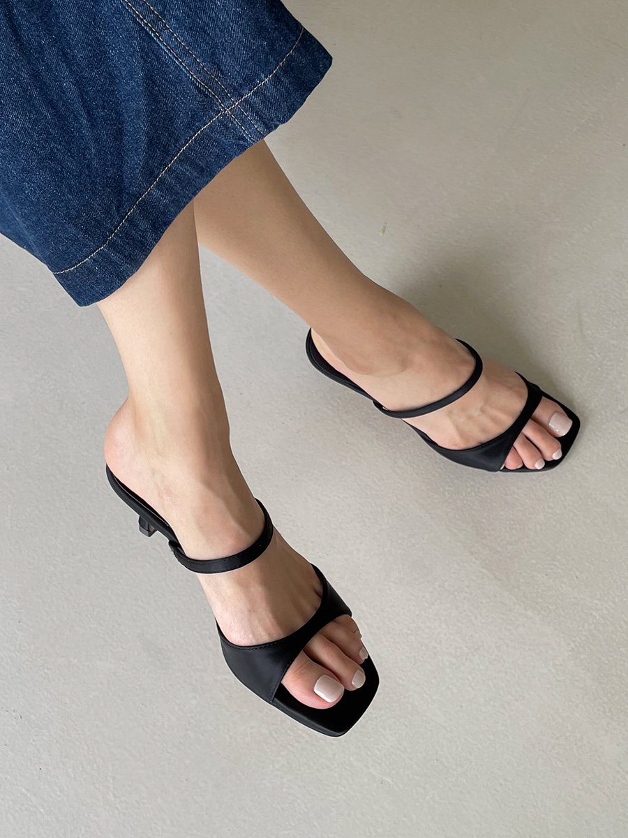 슬리퍼힐 5cm 새틴 스트랩 뮬 샌들 미들굽 발편한 여름 슬리퍼