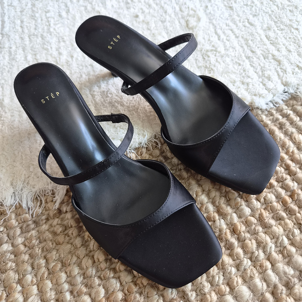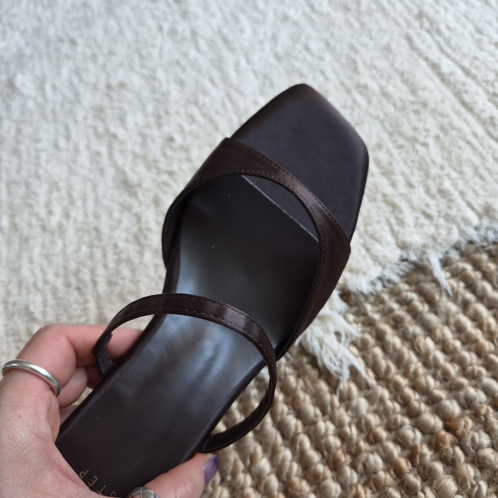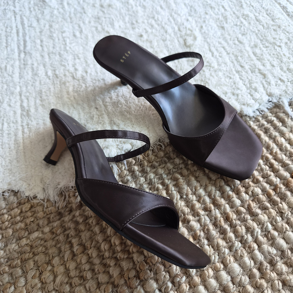 슬리퍼힐 5cm 새틴 스트랩 뮬 샌들 미들굽 발편한 여름 슬리퍼
