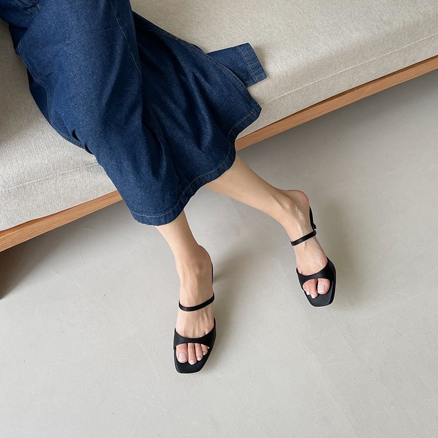 슬리퍼처럼 간편하게 착용할 수 있는 뮬 스타일이지만