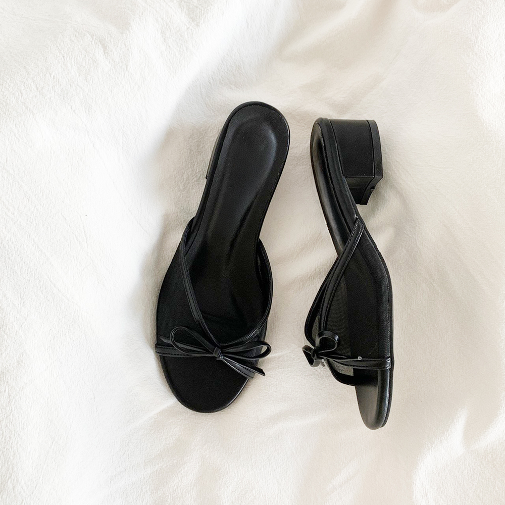 리본 슬리퍼힐 3cm 미들굽 시스루 망사 발편한 쿠션 여름 샌들