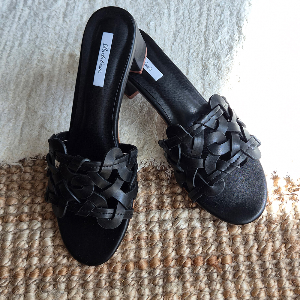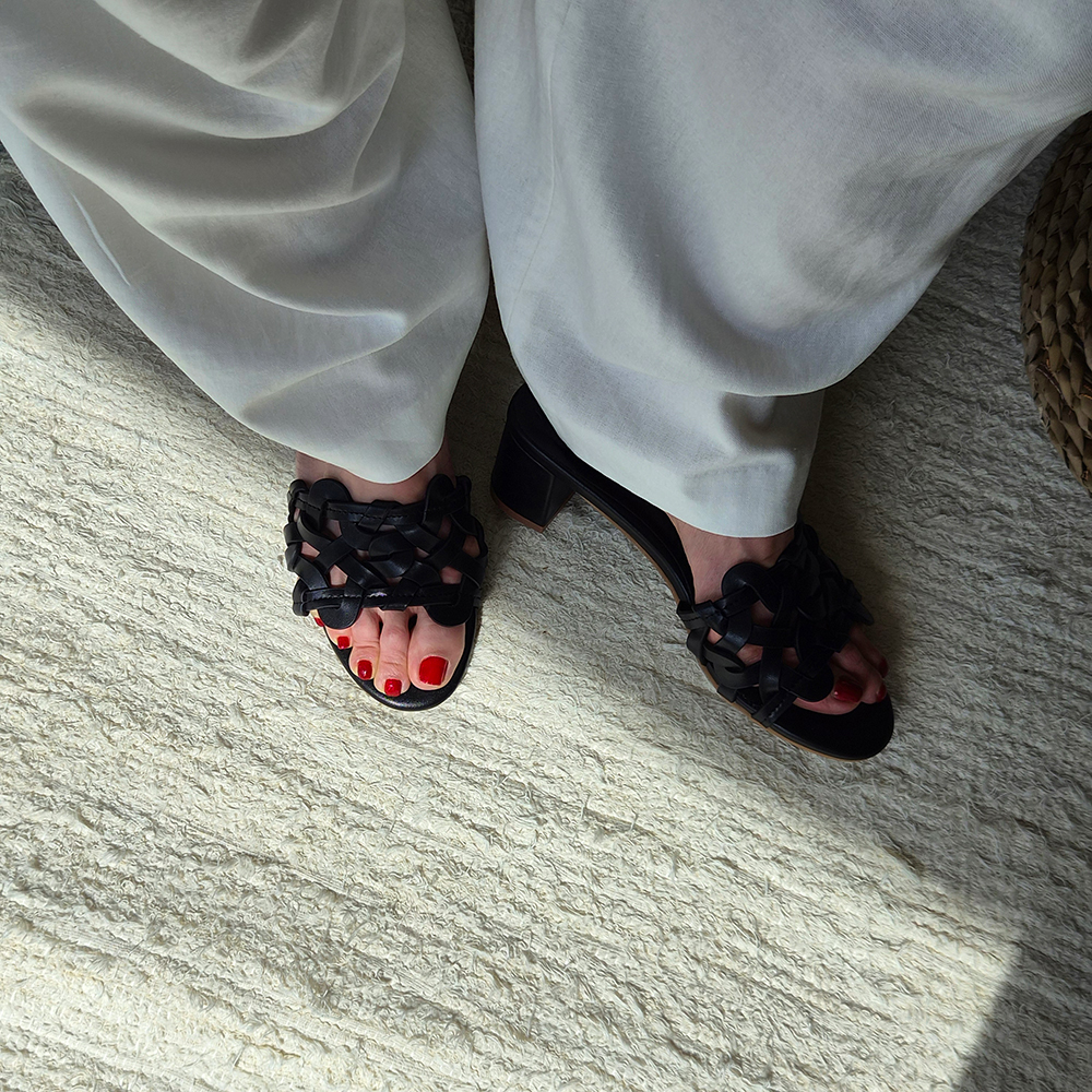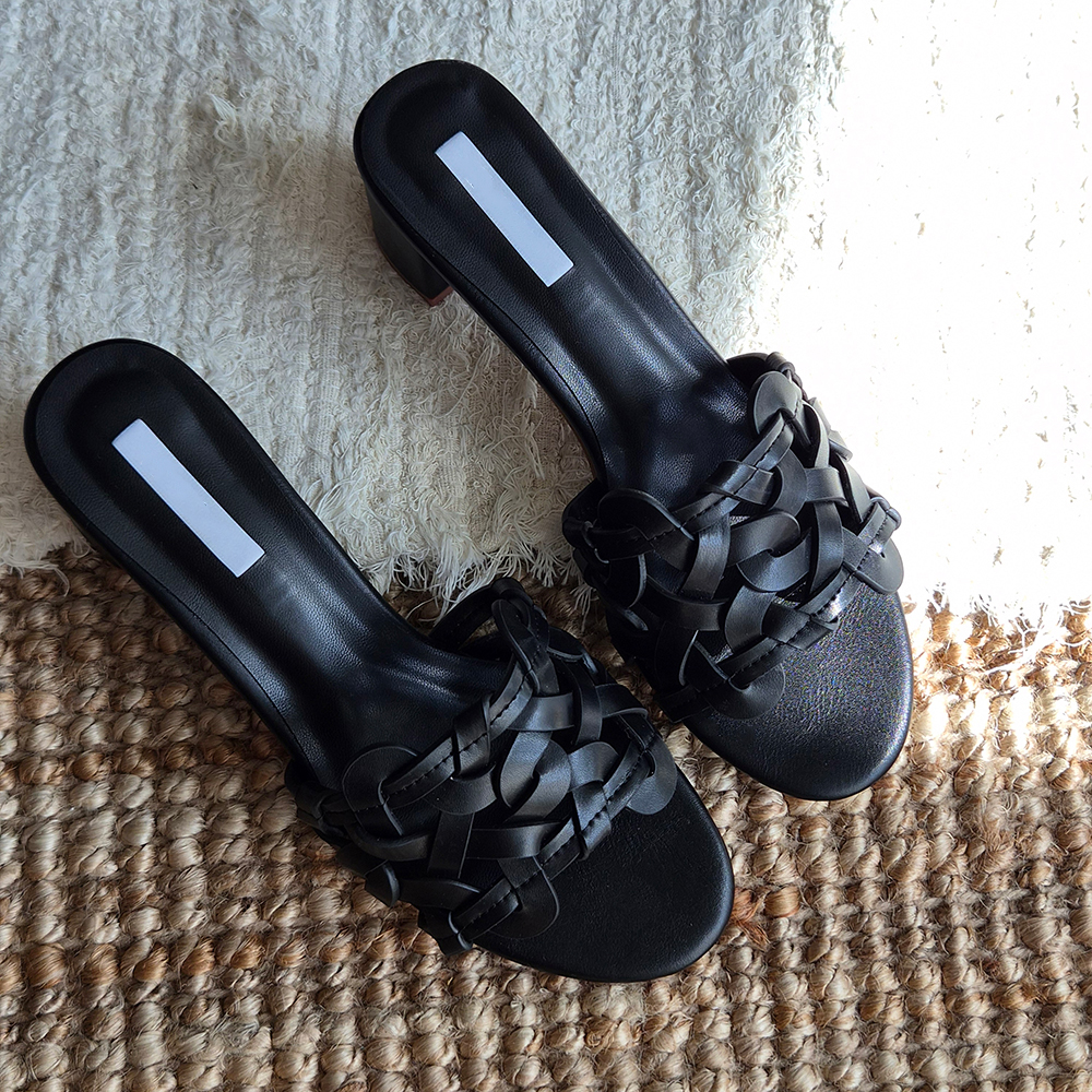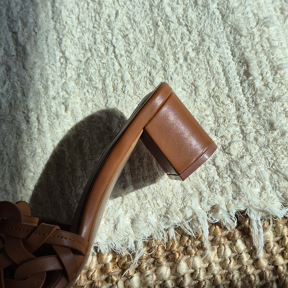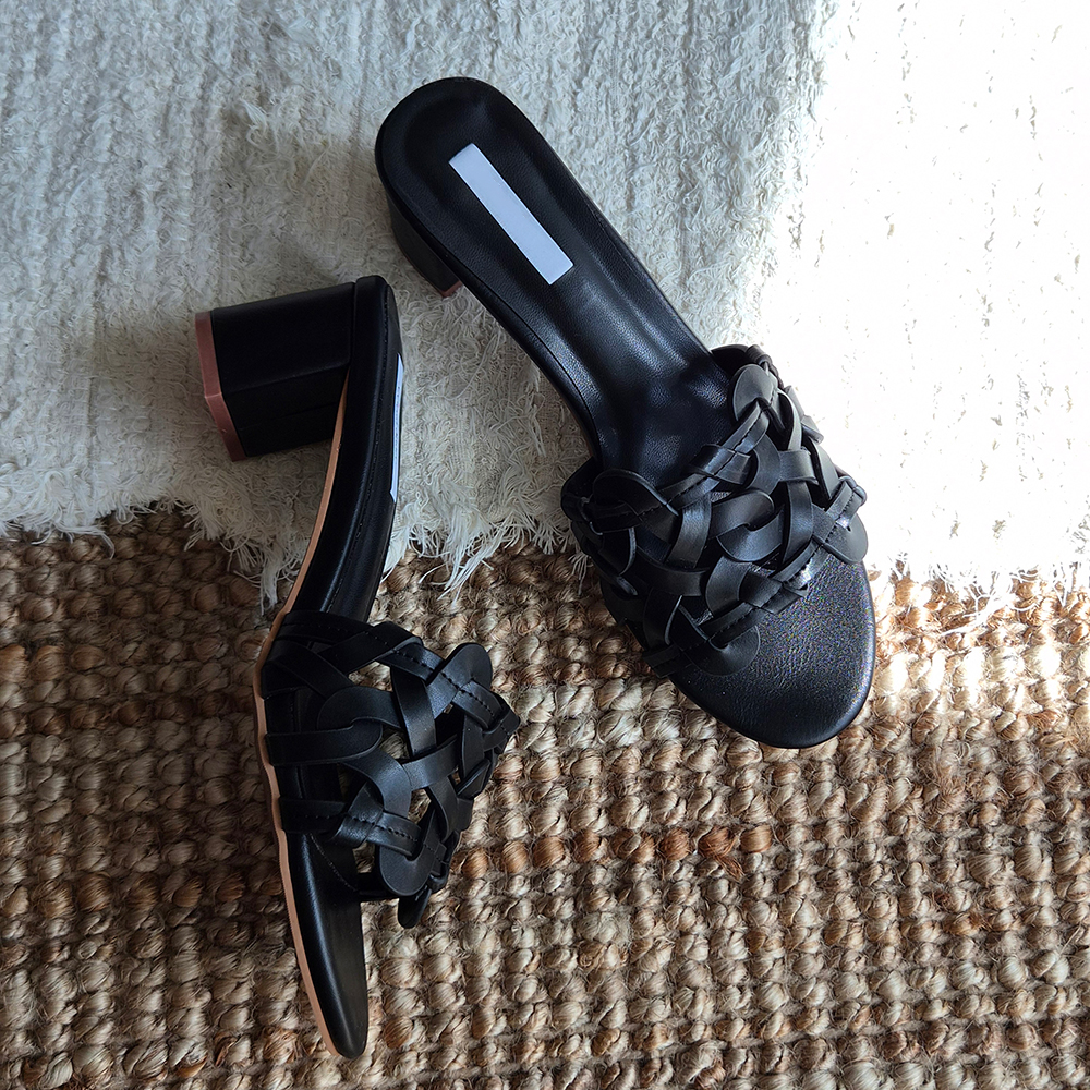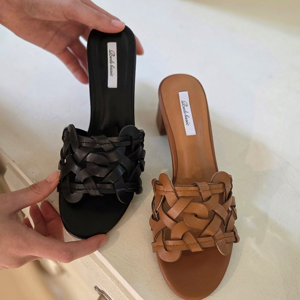 천연가죽 슬리퍼힐 5cm 미들굽 위빙 뮬 샌들 발편한 샌들