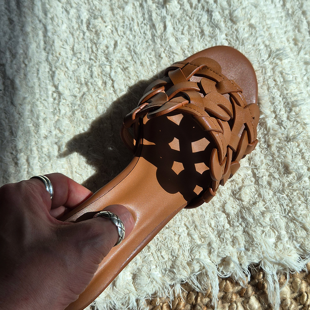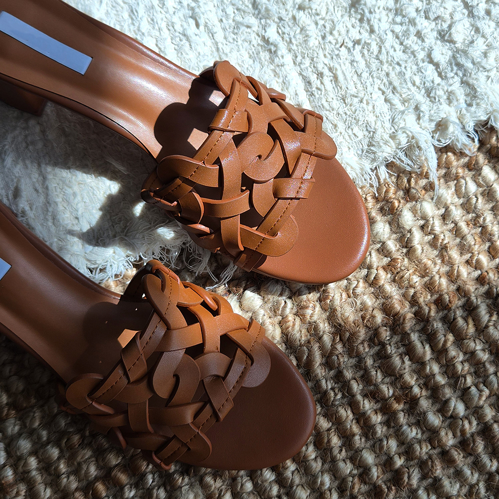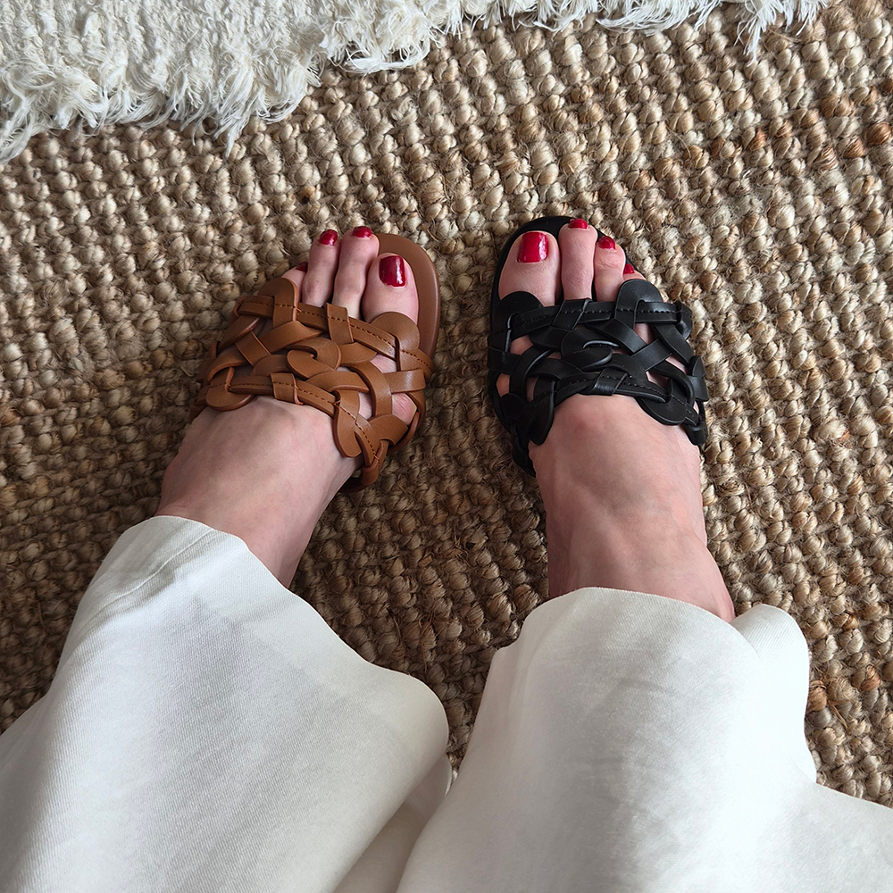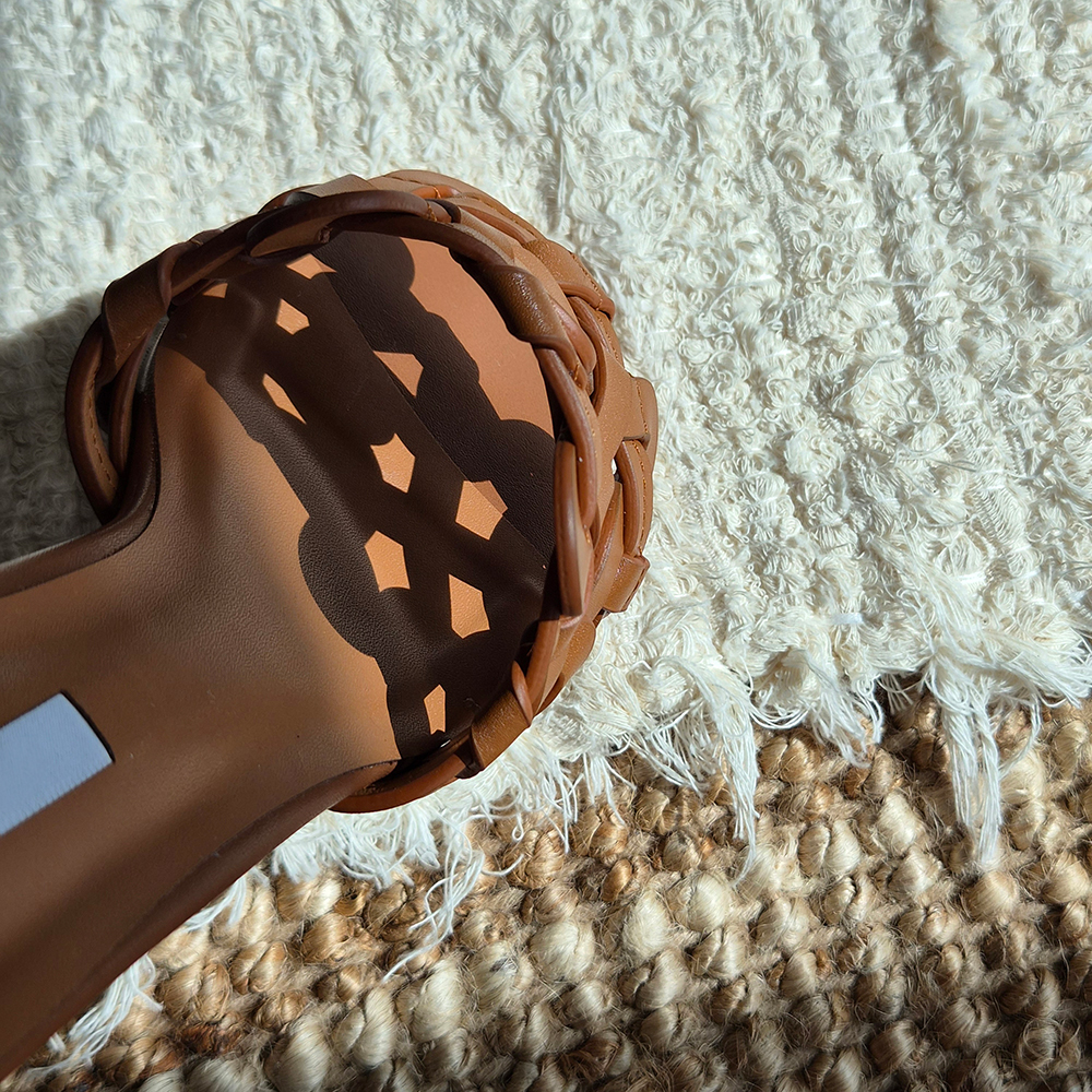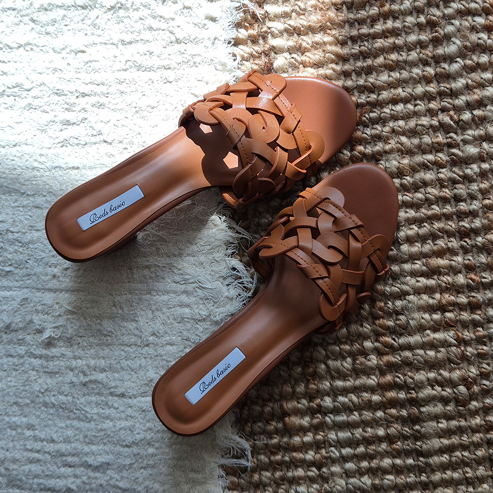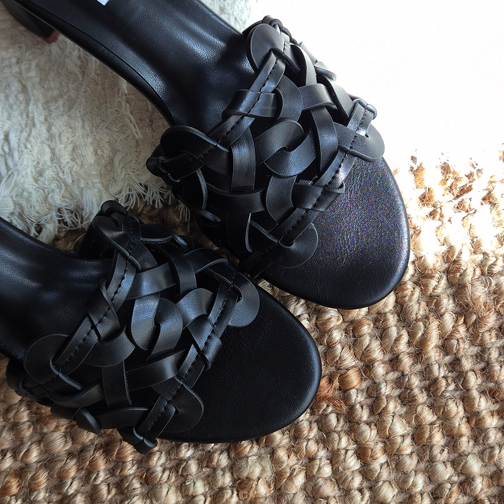 천연가죽 슬리퍼힐 5cm 미들굽 위빙 뮬 샌들 발편한 샌들